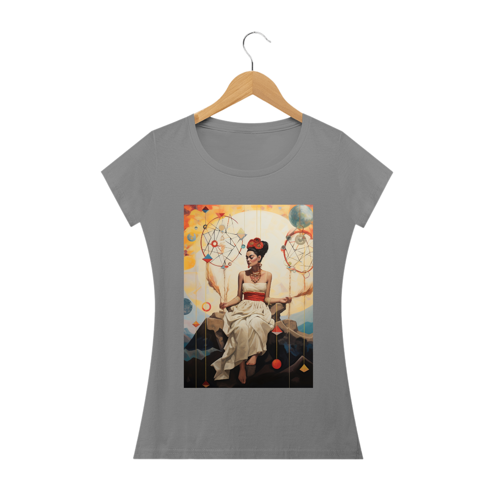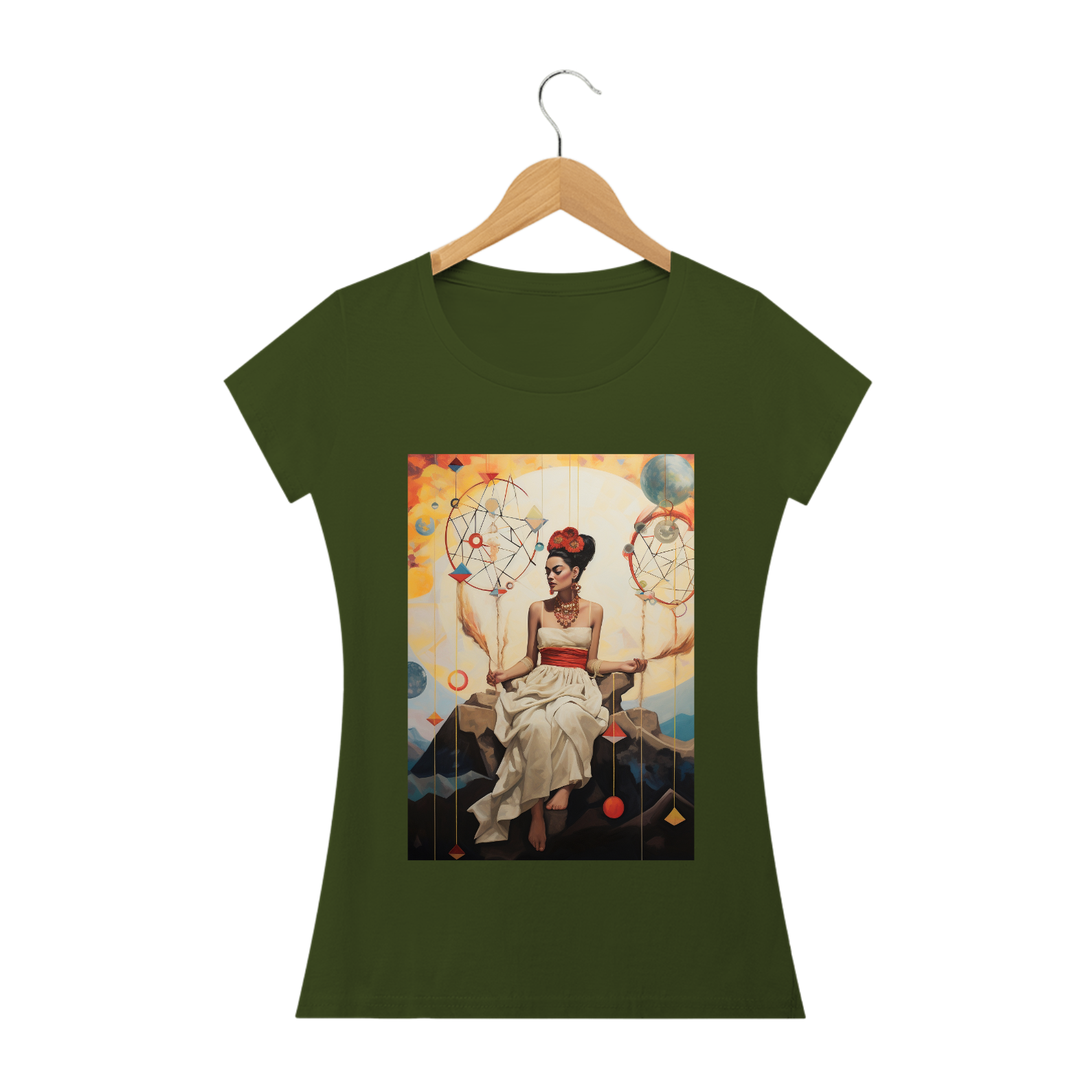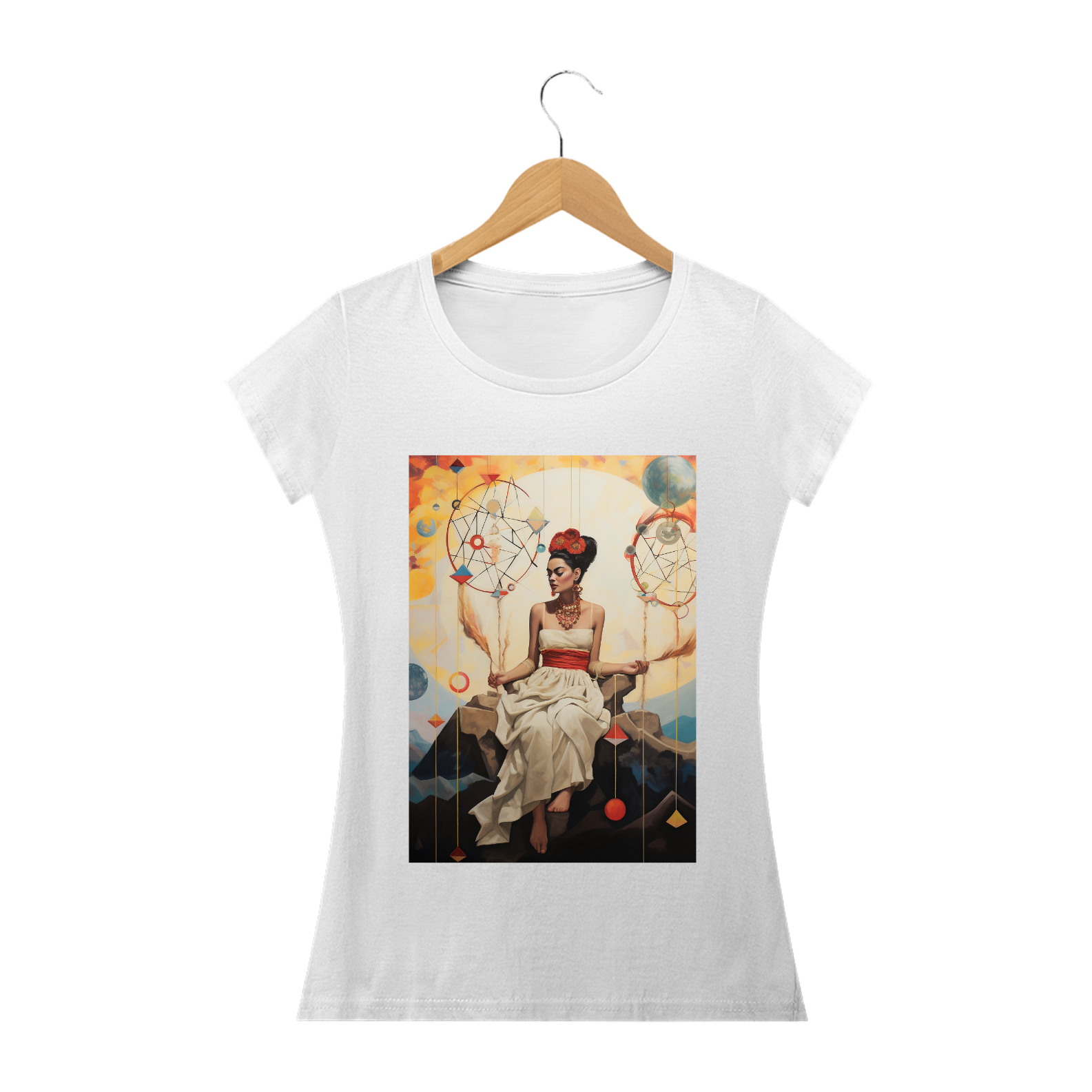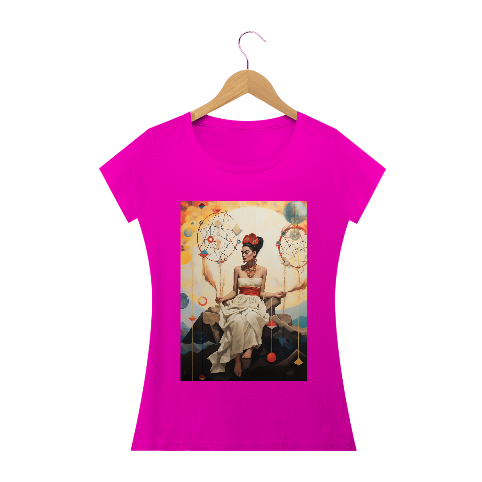 A "Camiseta Frida Sonhos" é uma obra de arte vestível que homenageia a icônica artista Frida Kahlo e sua habilidade única de transformar sonhos em realidade através de sua arte vibrante e expressiva. Esta camiseta é uma reflexão da imaginação, da criatividade e da força interior que nos impulsiona a perseguir nossos sonhos mais profundos.