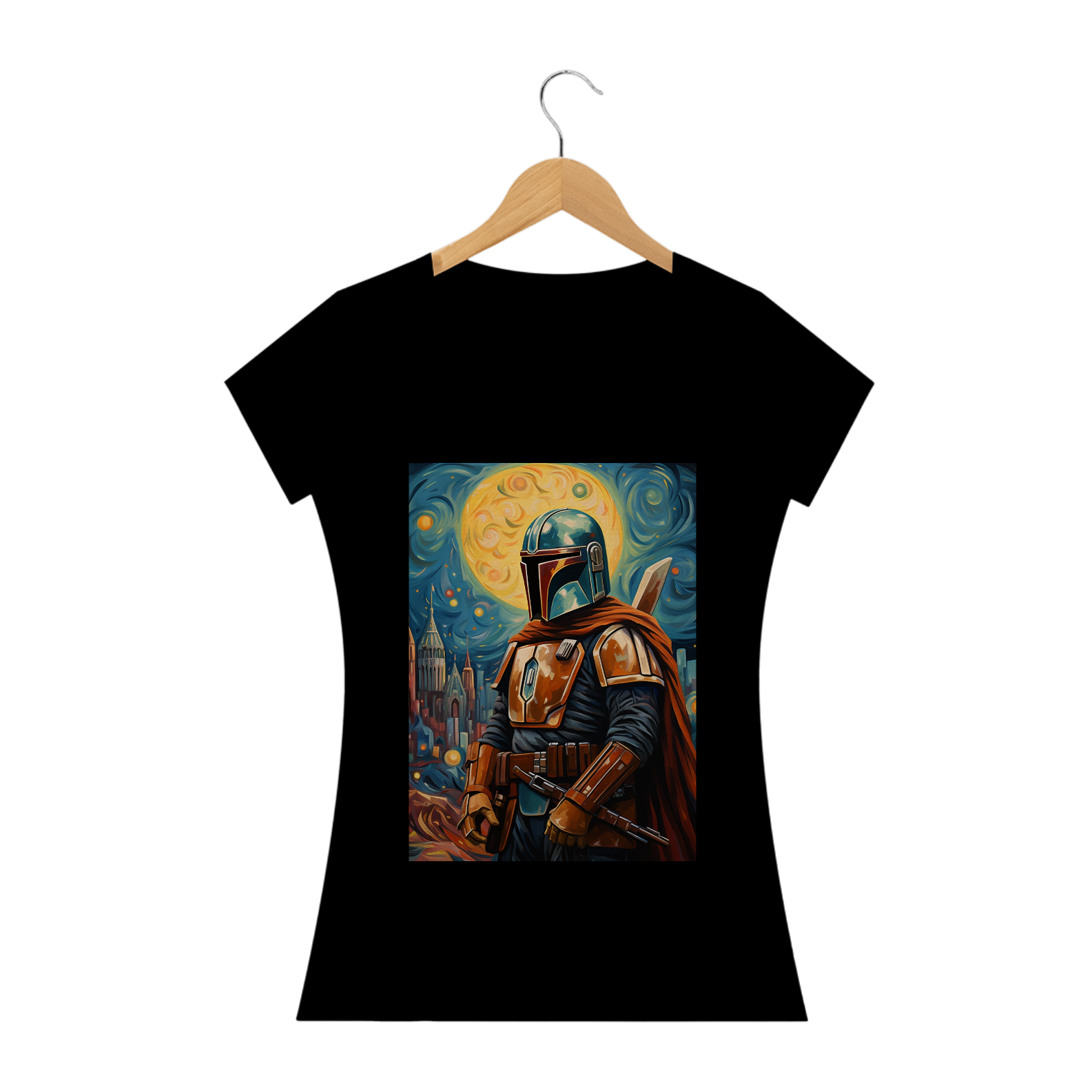 Entre no universo estelar da "Galáxia do Mandaloriano" com esta camiseta única. Inspirada na série épica, a peça destaca o icônico capacete de Mandalorian, imerso em um fundo que evoca a vastidão do espaço e a arte distintiva de uma galáxia longínqua. Os traços de Van Gogh dão vida às estrelas, criando uma fusão de ficção científica e arte clássica. Esta camiseta não é apenas uma peça de roupa; é uma declaração de estilo que celebra a jornada do Mandaloriano em uma expressão visual única. Vista-se com a "Galáxia do Mandaloriano" e mostre ao mundo sua conexão com a força da moda.