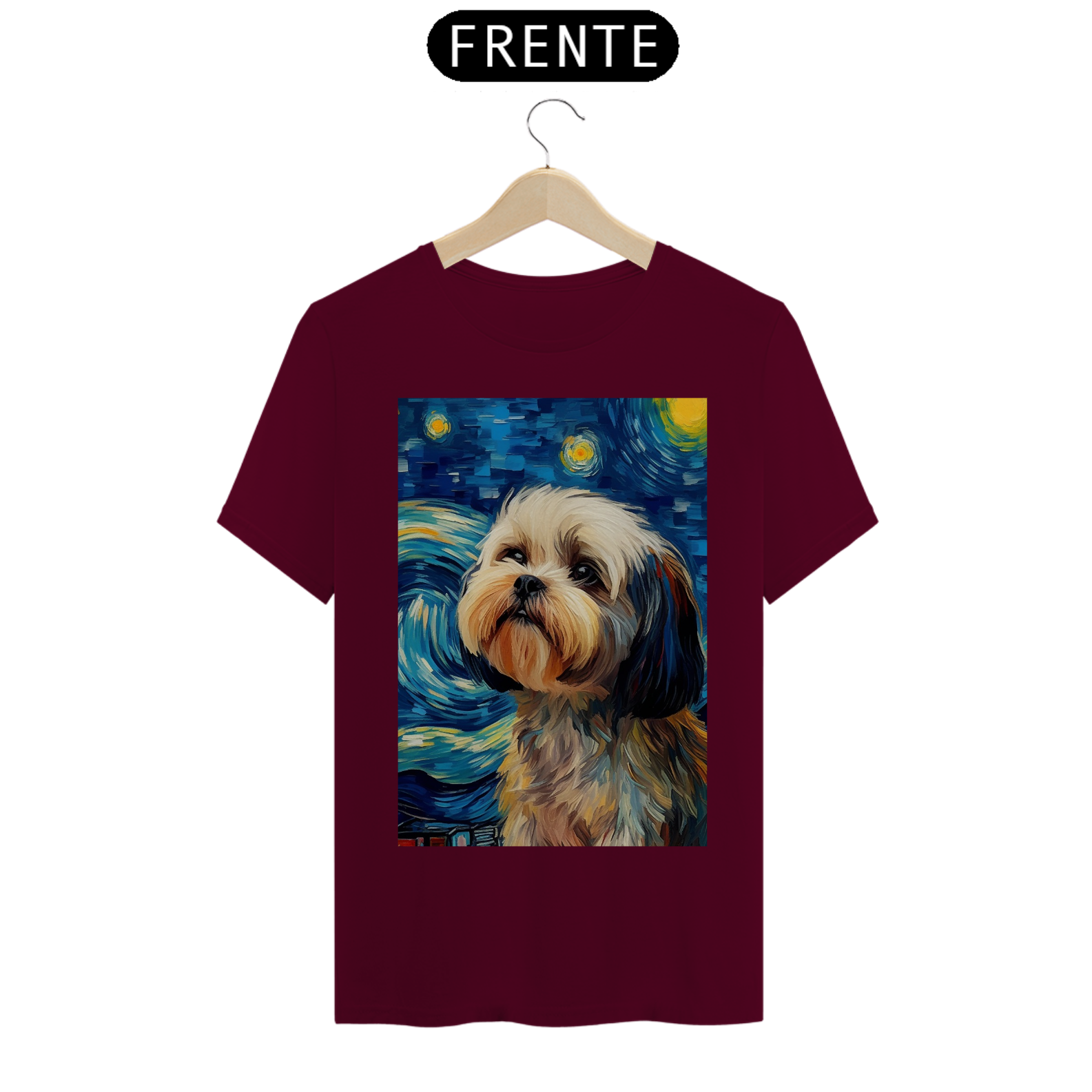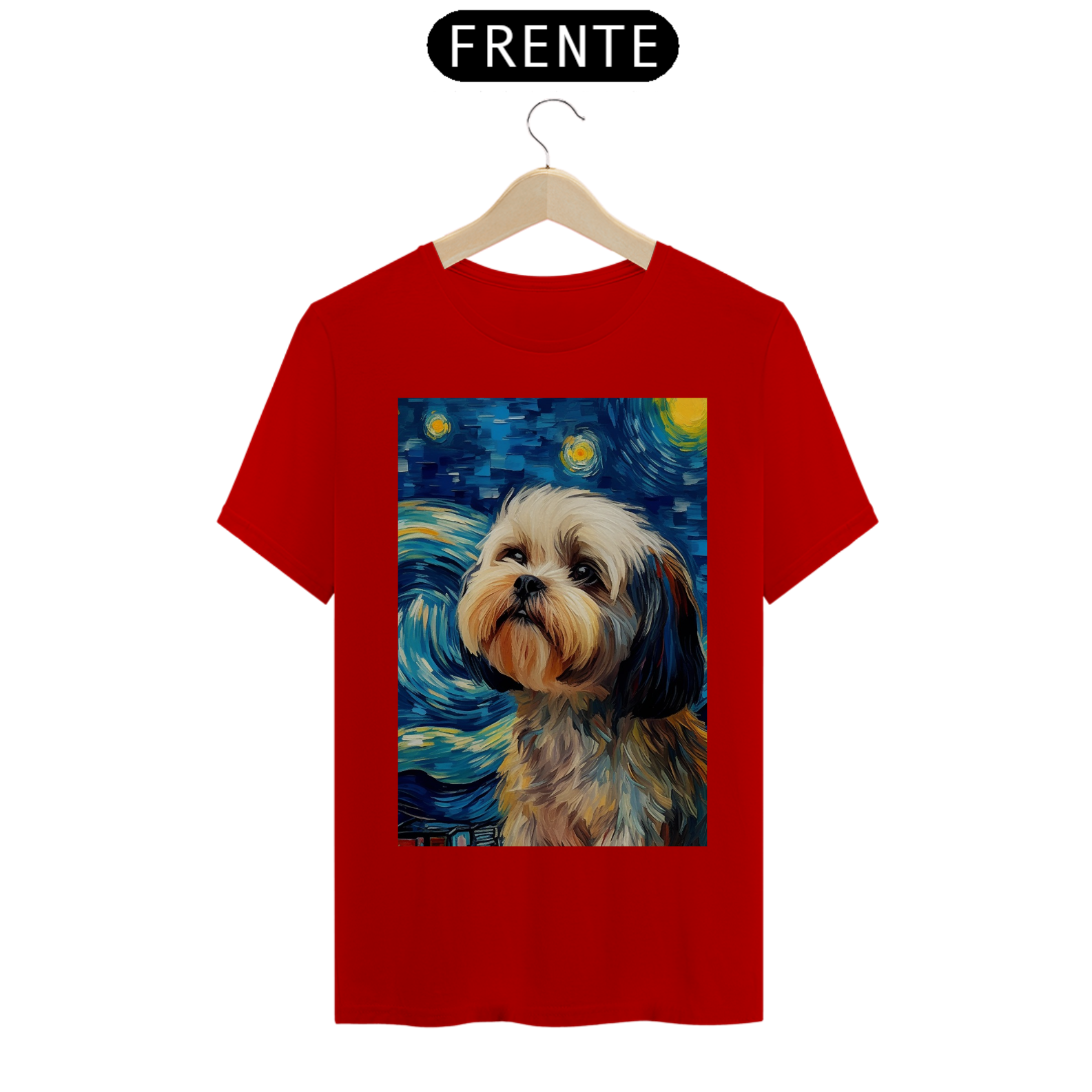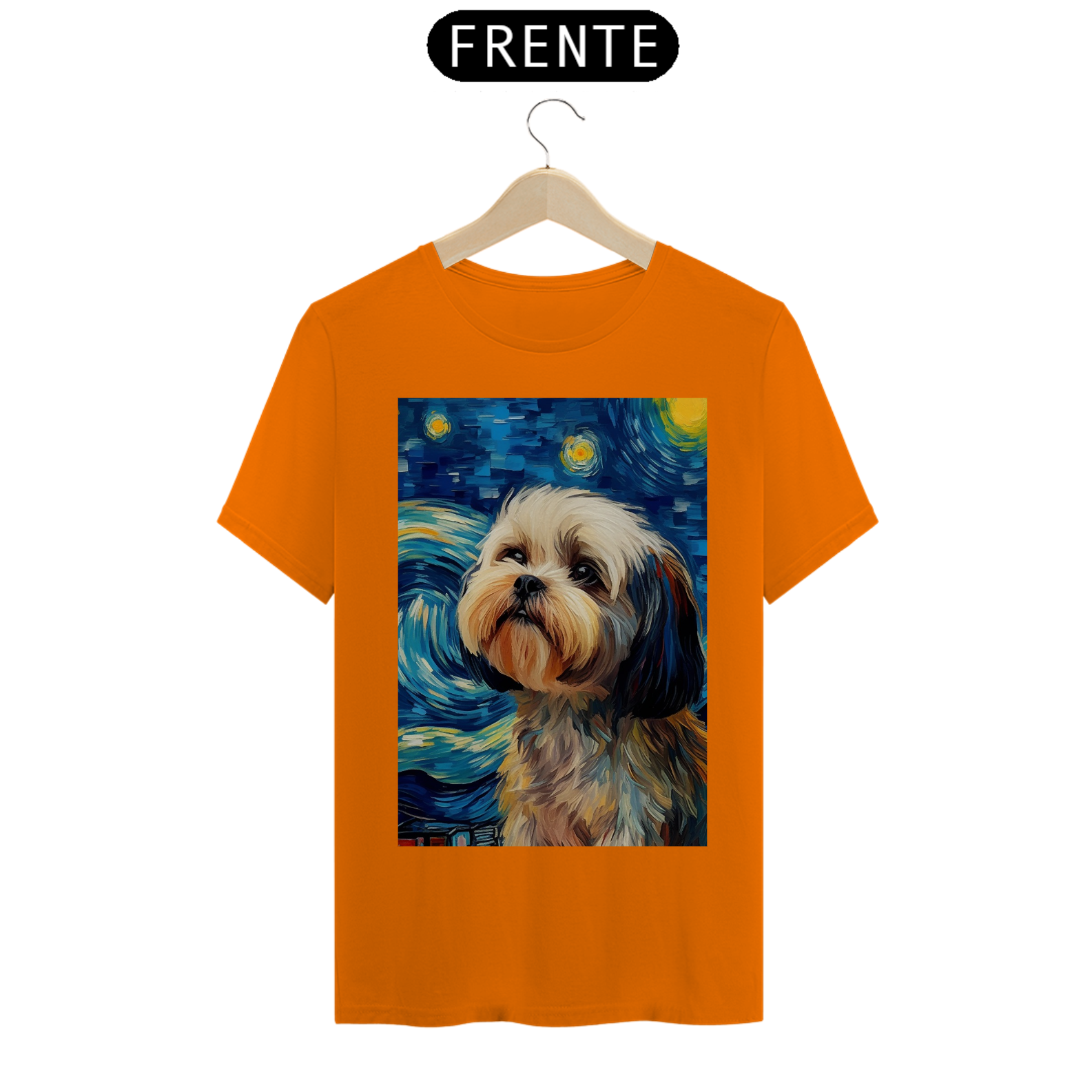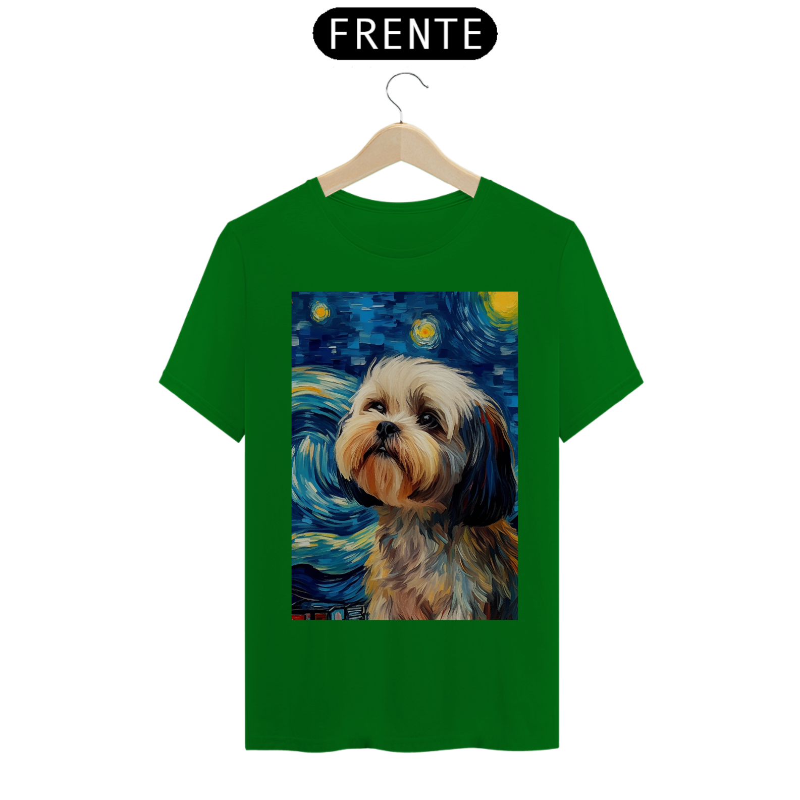 Encante-se com a doçura e a serenidade do "Shih Tzu na Noite Estrelada" com esta camiseta encantadora. Inspirada na beleza majestosa da raça Shih Tzu e na célebre obra "Noite Estrelada" de Van Gogh, esta peça de vestuário combina a graciosidade do animal com a expressividade artística. Sob um céu estrelado e redemoinhos de cor, um Shih Tzu adorável é imortalizado, criando uma visão celestial e encantadora. Vista esta camiseta para levar consigo a beleza da amizade canina e a magia artística de Van Gogh em uma fusão única de estilo e inspiração. "Shih Tzu na Noite Estrelada" é mais do que uma peça de roupa; é uma homenagem à doçura dos animais de estimação e à atemporalidade da arte.