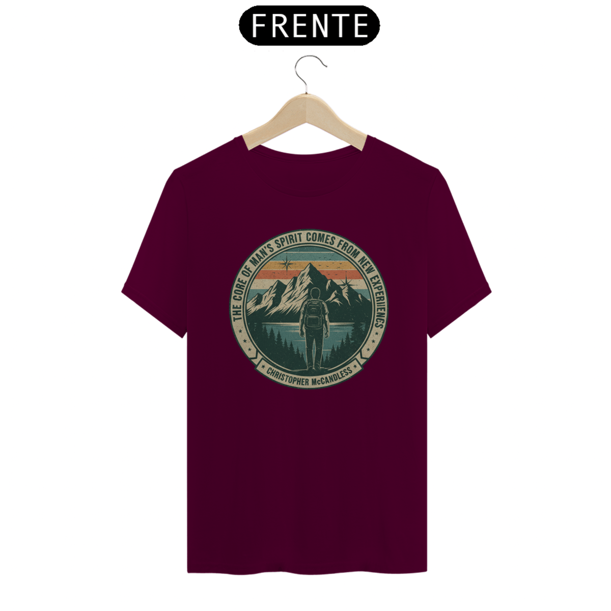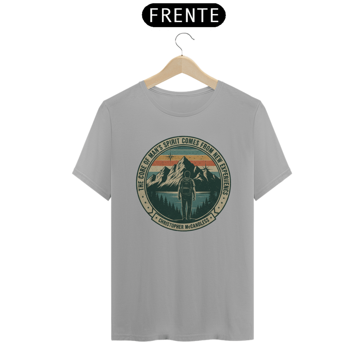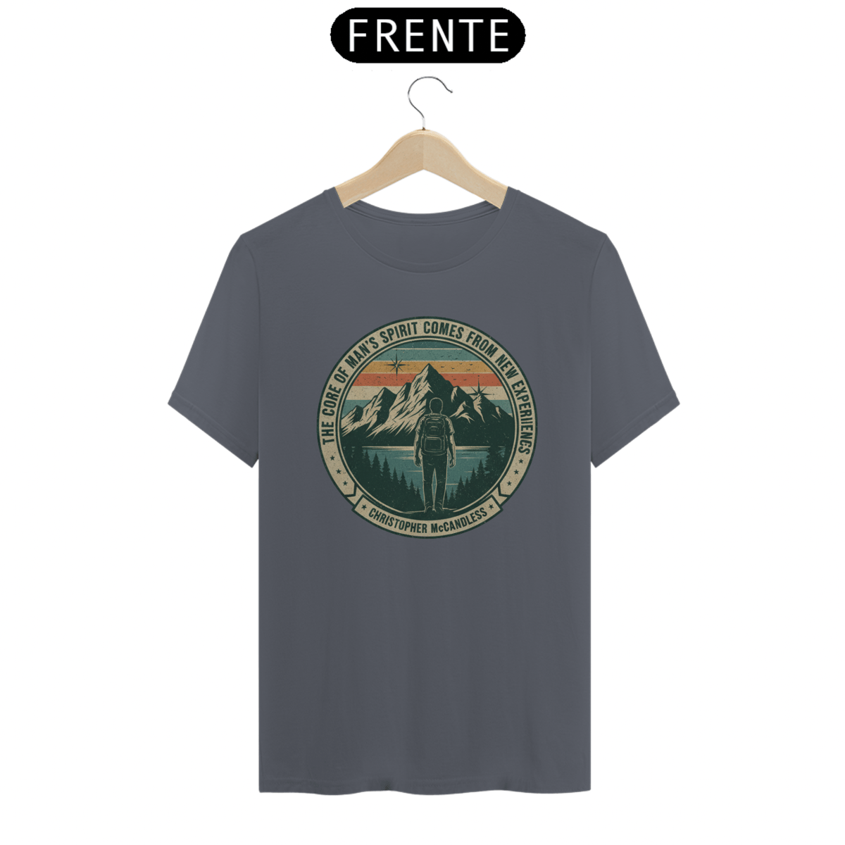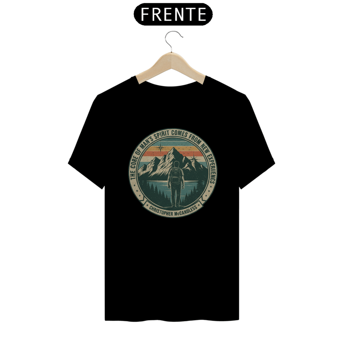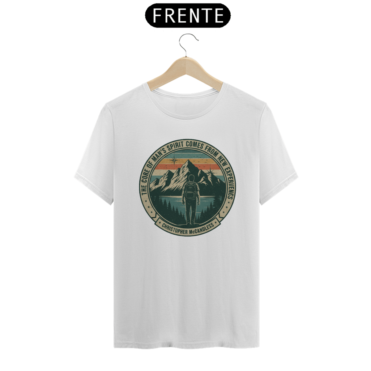 Vista a inspiração de Christopher McCandless com esta camiseta que celebra a busca por um sentido maior na vida através da aventura e da natureza.
