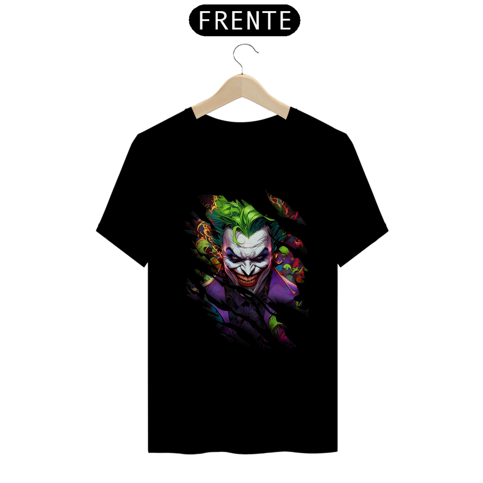 Esta T-shirt é uma escolha simples e estilosa para aqueles que desejam demonstrar sua afinidade com o icônico personagem "The Joker" de uma forma discreta e impactante.