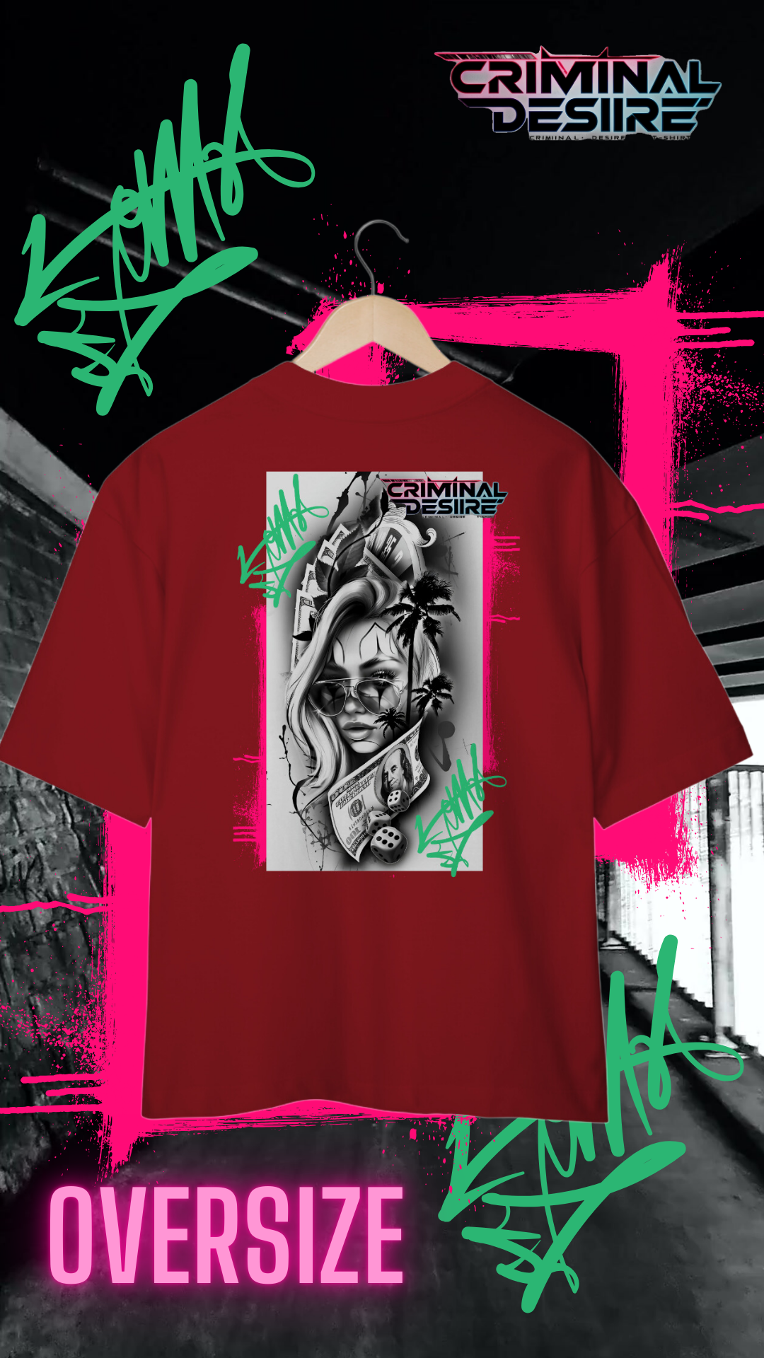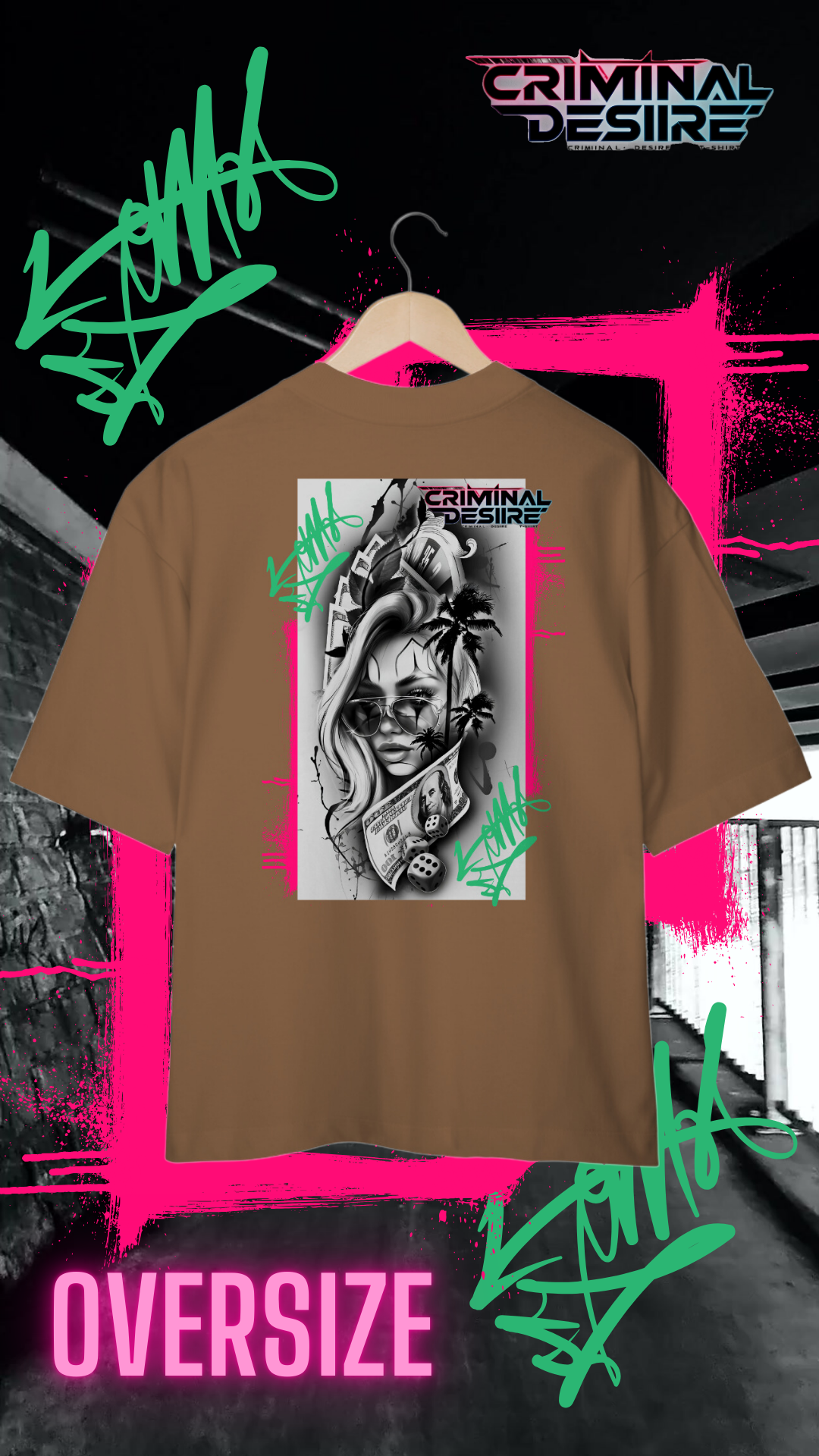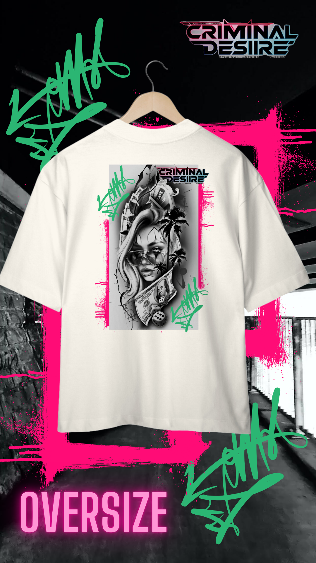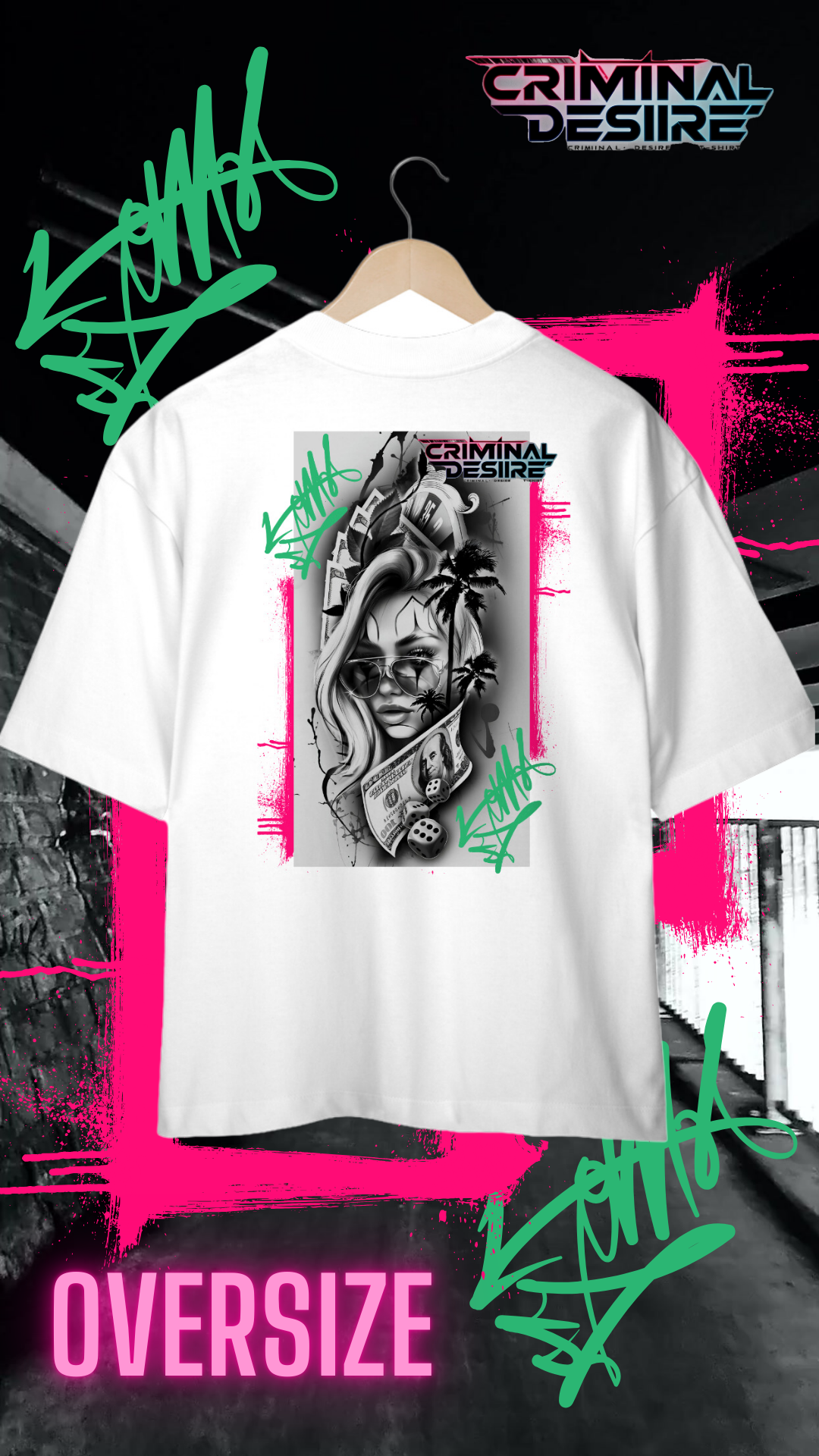 Entre no mundo underground com a camiseta Oversize "Girls & Money", onde a rebeldia encontra o estilo. Inspirada na estética das tatuagens de gangster, esta camiseta combina elementos clássicos com uma vibe moderna e provocativa. A estampa detalhada captura a essência da vida nas ruas,  notas de dólar e símbolos de poder. Em um fundo sombreado,  destacando a dualidade de força e de um gata que curte a adrenalina, o perigo e o luxo que uma gangster pode oferecer. Feita para aqueles que abraçam o espírito livre e não têm medo de se destacar, esta camiseta é perfeita para quem vive fora das convenções e abraça seu próprio código.