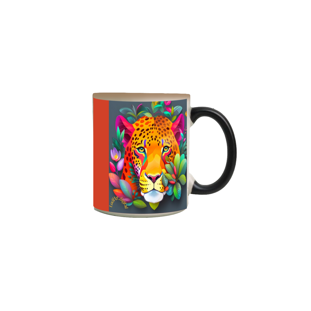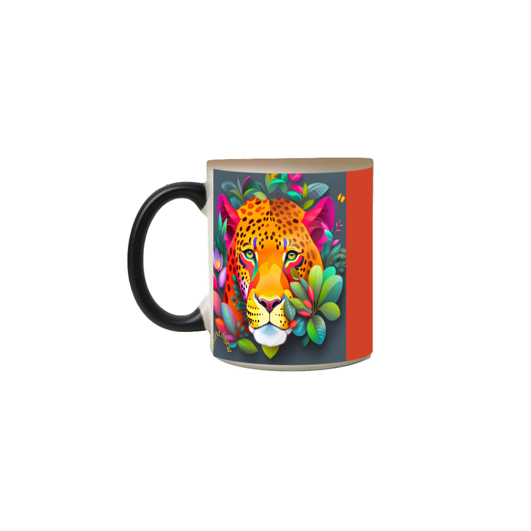 A Caneca Mágica oferece uma experiência única ao desfrutar de suas bebidas favoritas, apresentando-se como uma companhia perfeita para seus momentos de trabalho ou estudo. Feita de cerâmica resistente, esta caneca com capacidade de 310ml exibe um design simples e elegante, escondendo uma arte inspiradora que se revela com o calor. Além de ser um item versátil, podendo ser utilizada no micro-ondas, lava-louças, geladeira e freezer sem danos, ela traz praticidade ao dia a dia. A mensagem inspiradora exibida ao revelar a arte estimula e motiva, enquanto a obra "Face do Jaguar" destaca-se como uma homenagem à fauna brasileira e à conexão entre os reinos animal e vegetal, transcendendo o visual para celebrar a natureza e a perpetuidade do jaguar na alma da floresta. p.s. Arte . cor laranja + Arte - lado 2 cor  "laranja".