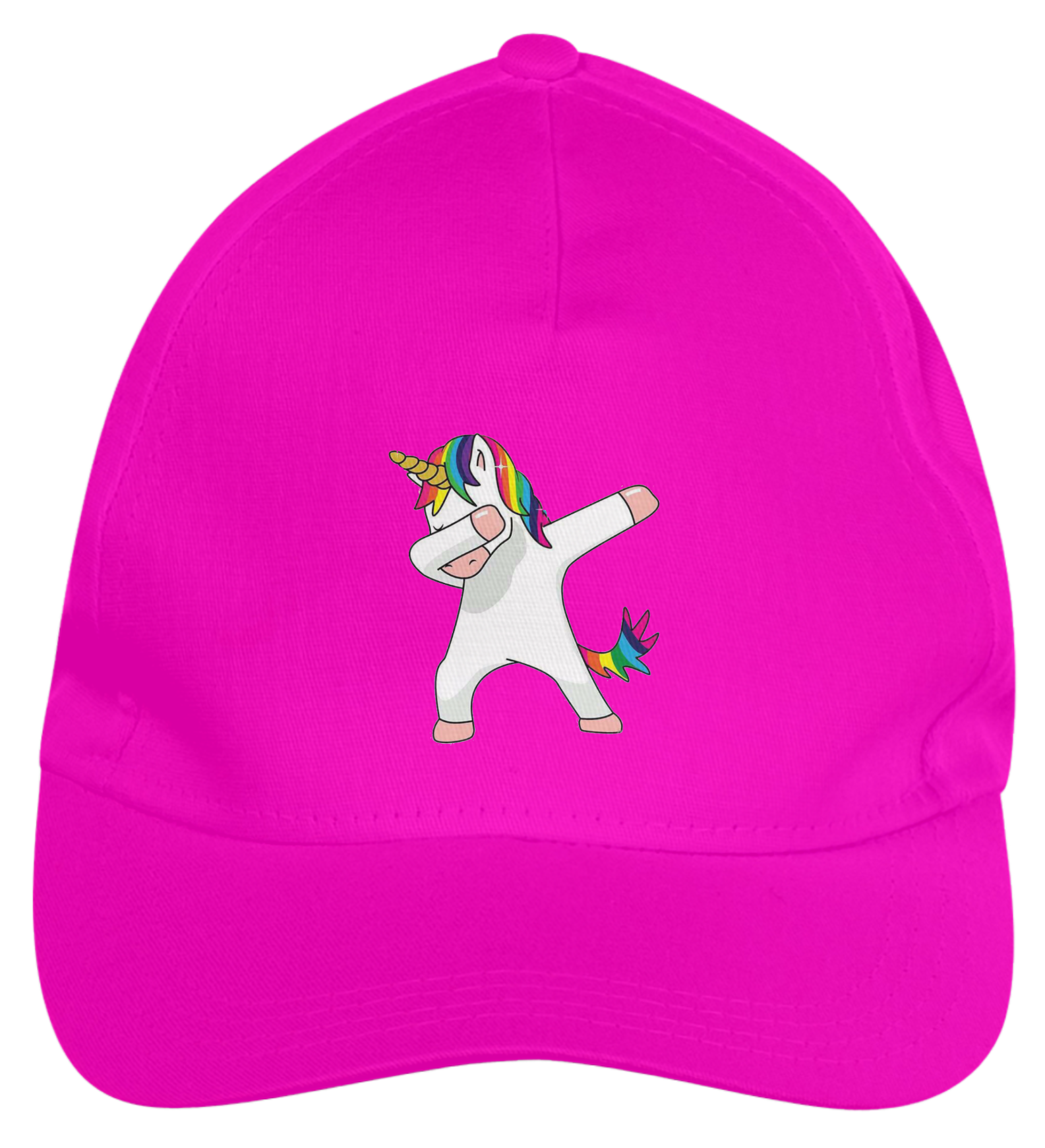 Entre no mundo mágico da moda com nosso boné estampado de Unicórnio Arco-Íris! Boné americano com transfer frontal em alta qualidade, aba curva e fecho em tira totalmente regulável com pinos. O modelo veste tamanho "único".