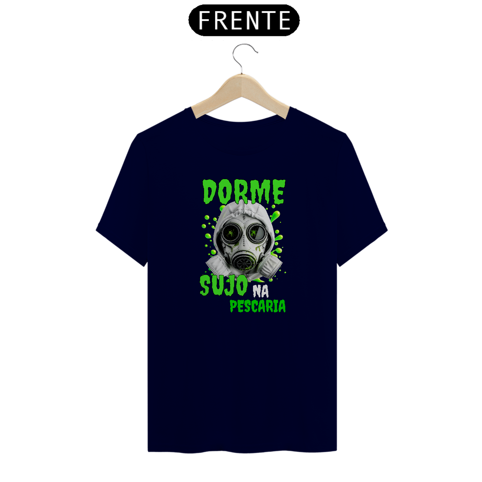 • Design Impactante: Estampa única com a frase "Dorme Sujo na Pescaria" e uma ilustração de máscara de gás, perfeita para quem encara a pescaria com seriedade e bom humor.