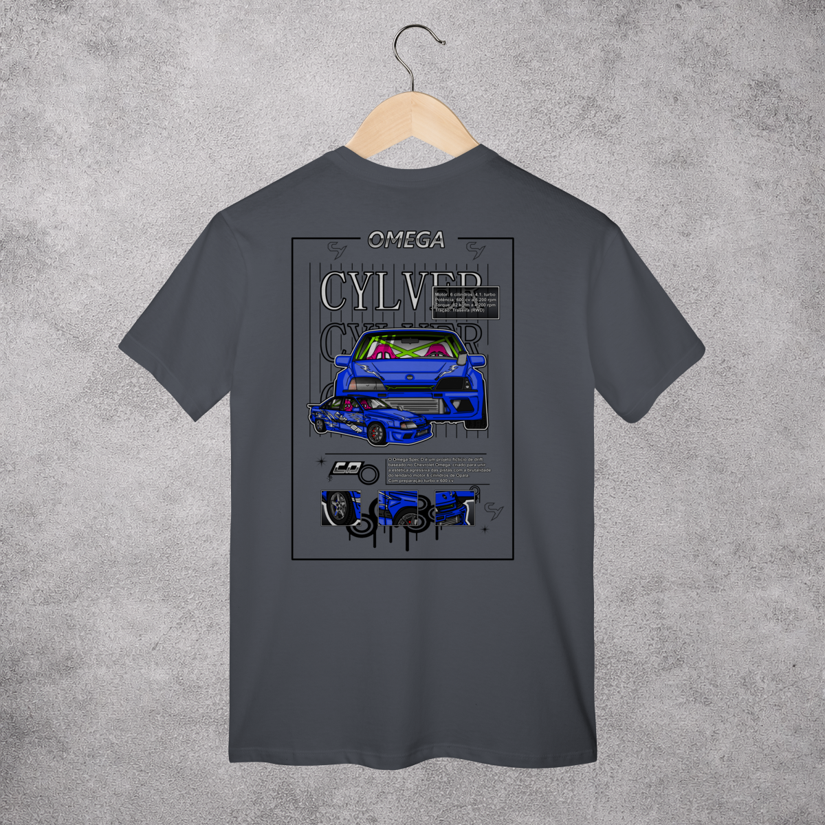 Omega Spec D é um projeto fictício de drift baseado no Chevrolet Omega, criado para unir a estética agressiva das pistas com a brutalidade do lendário motor 6 cilindros de Opala. Com preparação turbo e 600 cv, ele foi pensado para entregar torque forte em baixa e média rotação, garantindo fumaça constante, controle nas transições e muita presença visual nas pistas.
