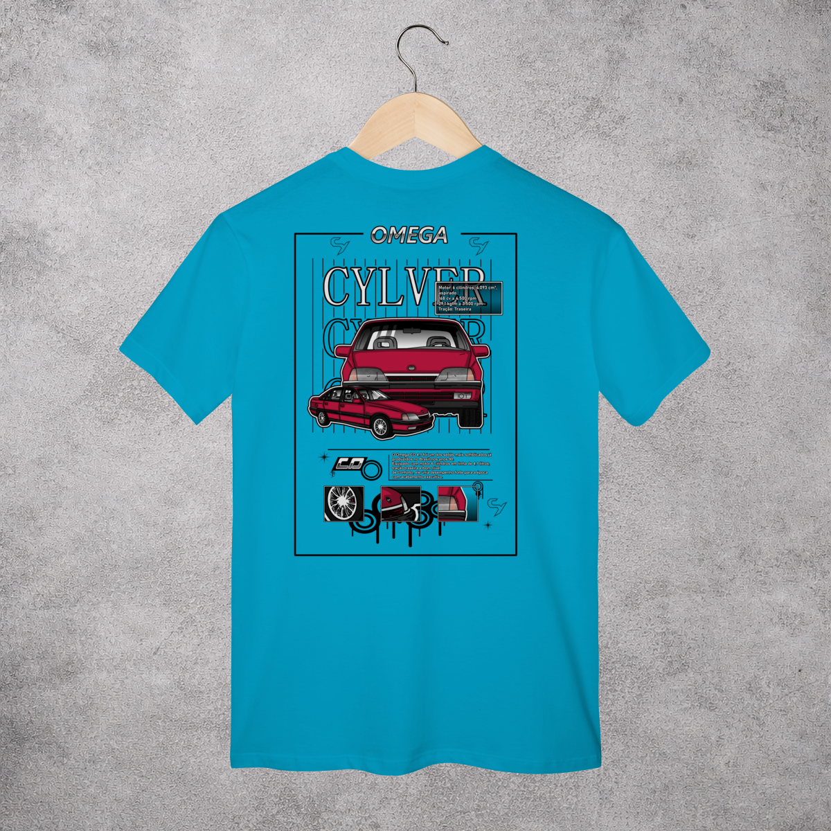 Tecido confortável em algodão, estampa digital de alta qualidade e modelagem regular. Ideal para o dia a dia, rolês e encontros automotivos.