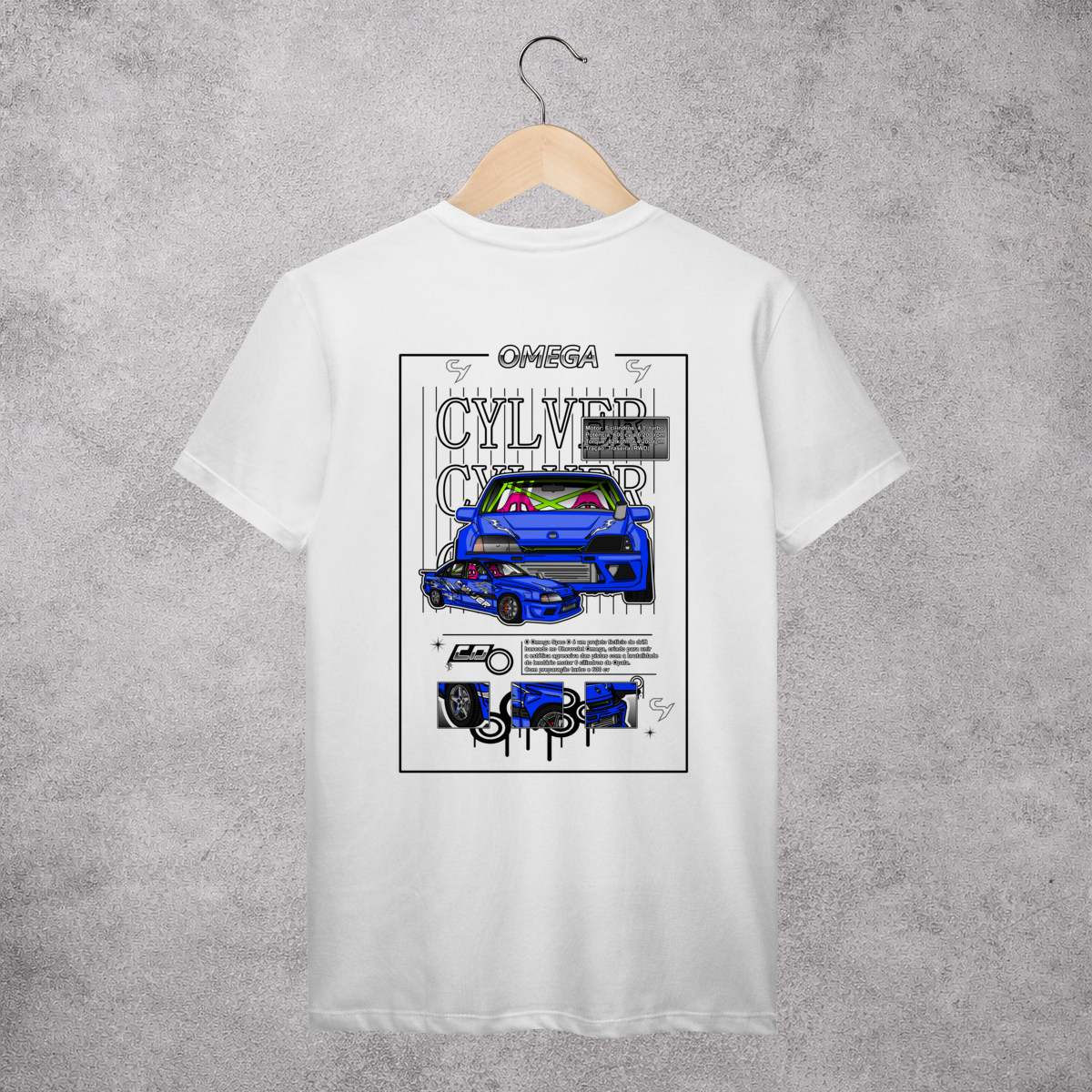 O Omega Spec D é um projeto fictício de drift baseado no Chevrolet Omega, criado para unir a estética agressiva das pistas com a brutalidade do lendário motor 6 cilindros de Opala. Com preparação turbo e 600 cv, ele foi pensado para entregar torque forte em baixa e média rotação, garantindo fumaça constante, controle nas transições e muita presença visual nas pistas.