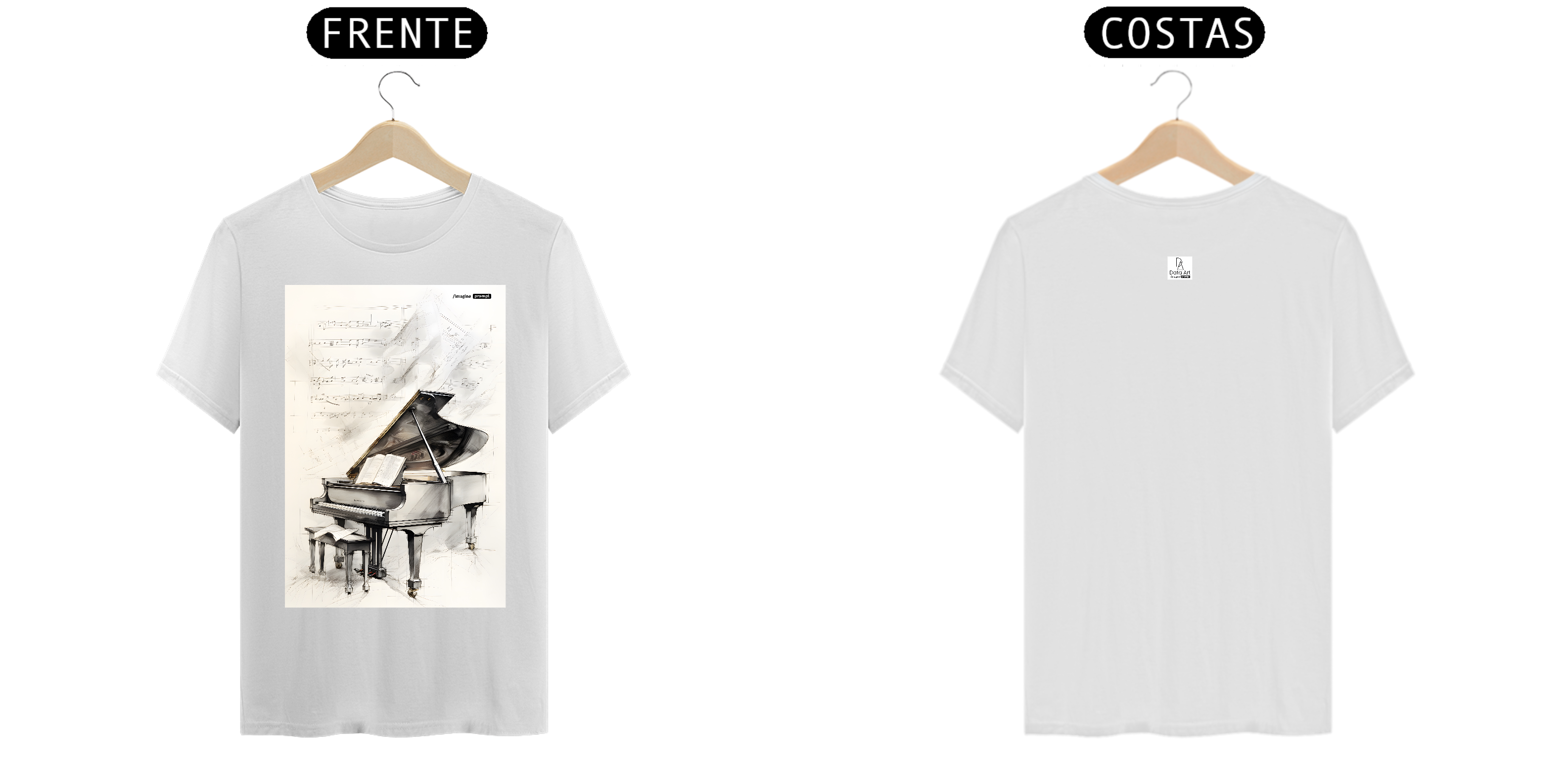 Camiseta "Arte sobre Música" exclusiva com arte IA. Apenas 1 unidade disponível! Ao comprar, você receberá 2 ebooks: "40 Imagens de Arte sobre Música + Prompts do MidJourney" e outro te ensinando tudo sobre "Criação de Imagens com IA", além de 40 papéis de parede para celular.