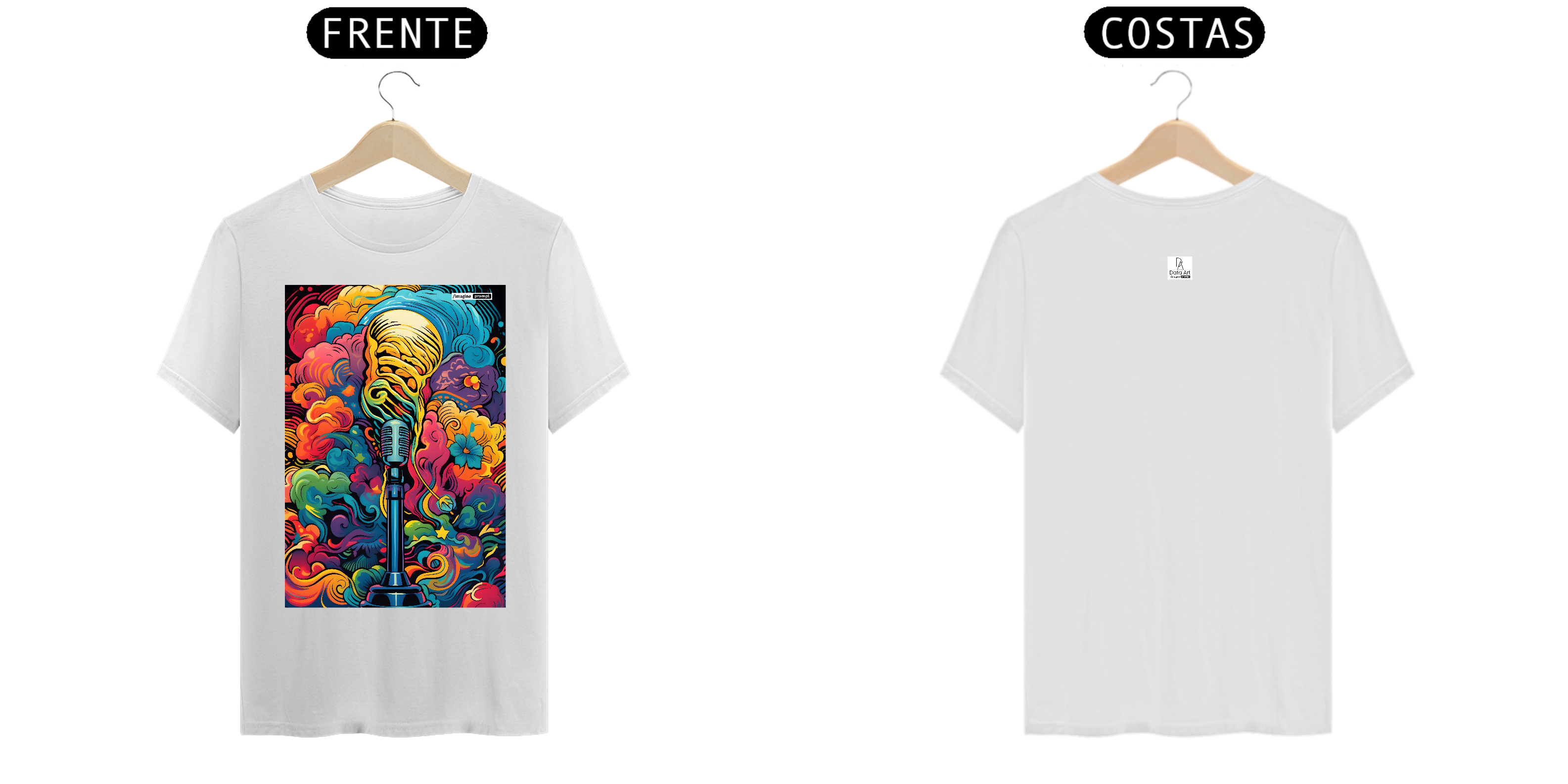 Camiseta "Arte sobre Música" exclusiva com arte IA. Apenas 1 unidade disponível! Ao comprar, você receberá 2 ebooks: "40 Imagens de Arte sobre Música + Prompts do MidJourney" e outro te ensinando tudo sobre "Criação de Imagens com IA", além de 40 papéis de parede para celular.