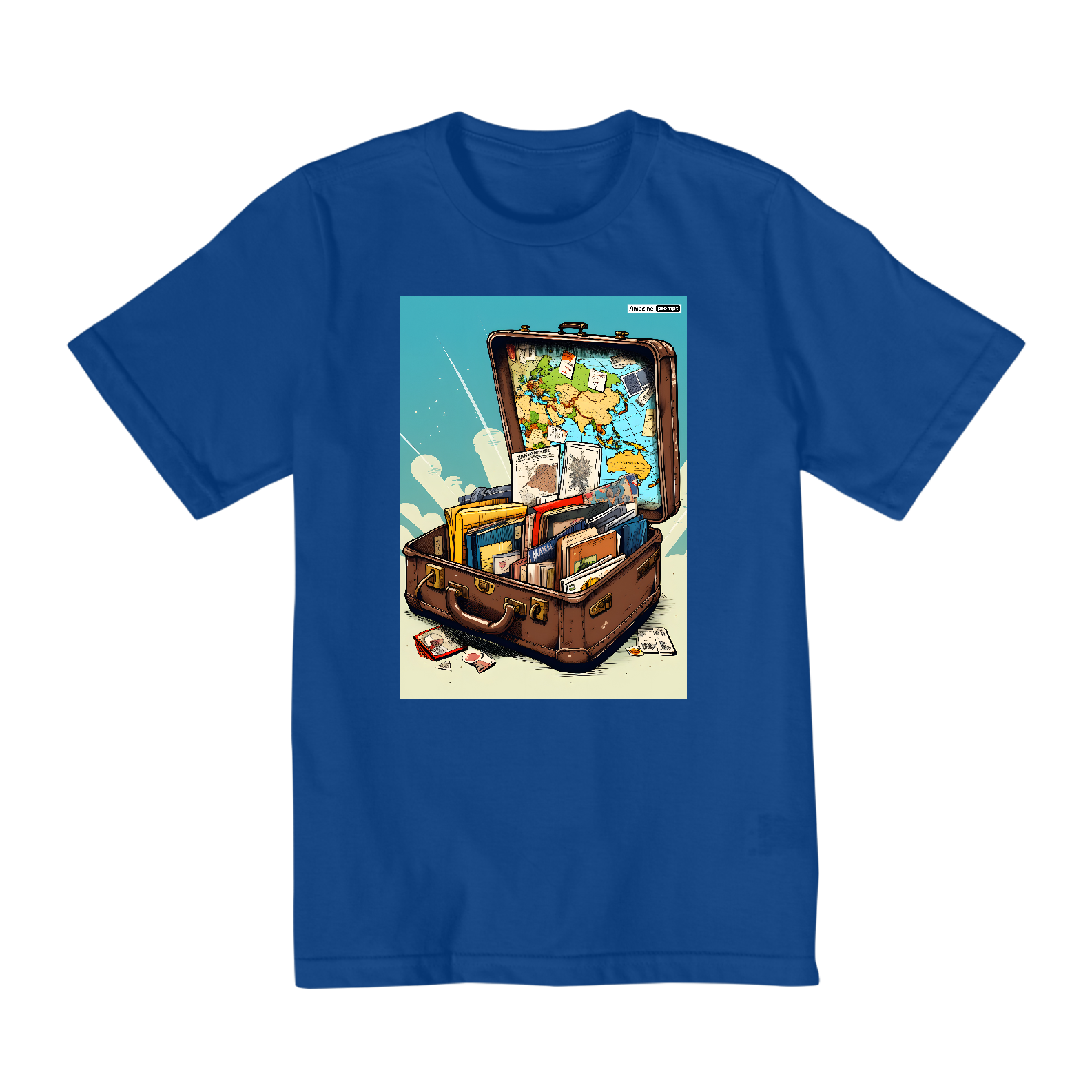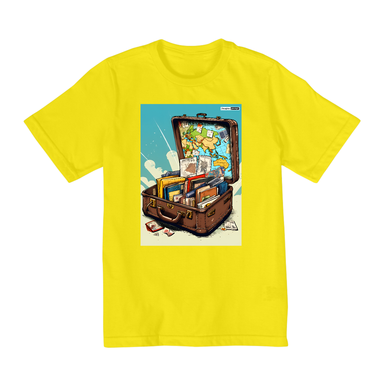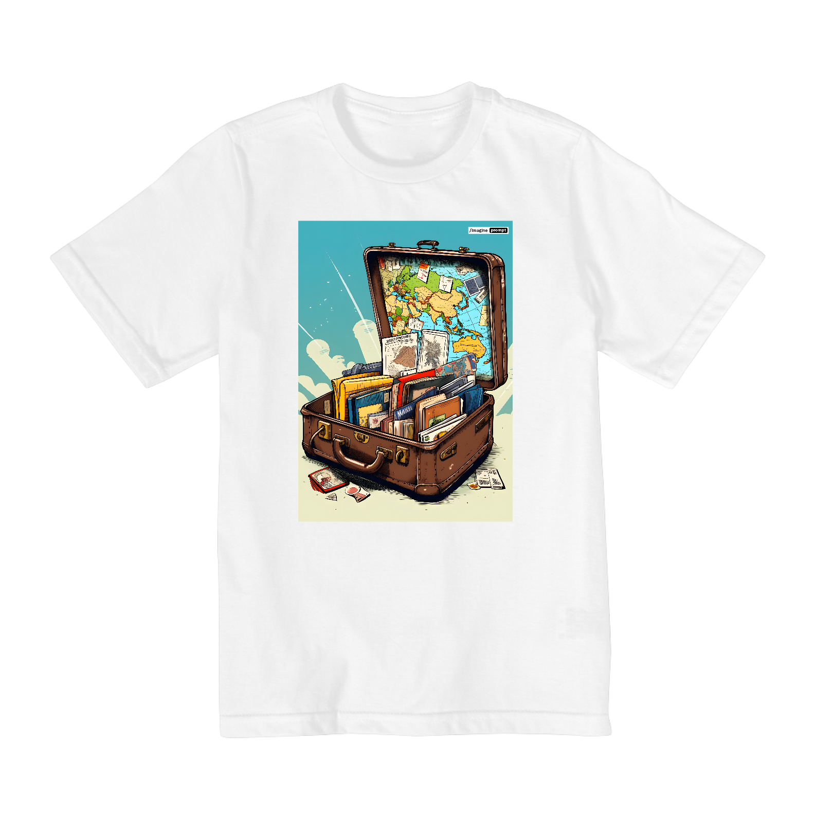 Camiseta "Arte sobre Viagens" exclusiva com arte IA. Apenas 1 unidade disponível! Ao comprar, você receberá 2 ebooks: "40 Imagens de Arte sobre Viagens + Prompts do MidJourney" e outro te ensinando tudo sobre "Criação de Imagens com IA", além de 40 papéis de parede para celular.