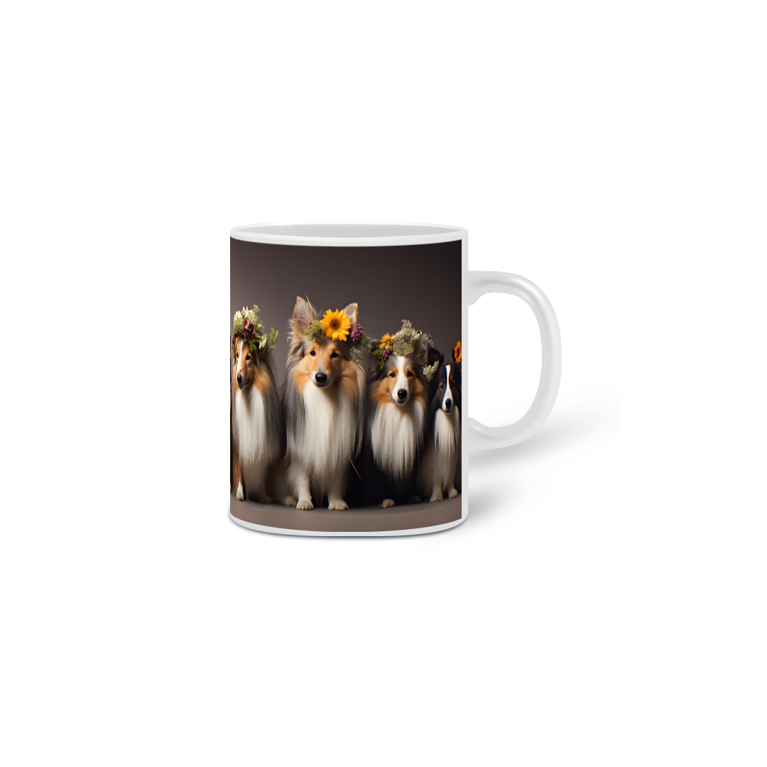 Caneca exclusiva de porcelana com arte IA. Apenas 1 unidade disponível! Ao comprar, você receberá 2 ebooks: "Tudo sobre Pastores de Shetland" e outro te ensinando tudo sobre "Criação de Imagens com IA", além de 20 papéis de parede para celular.