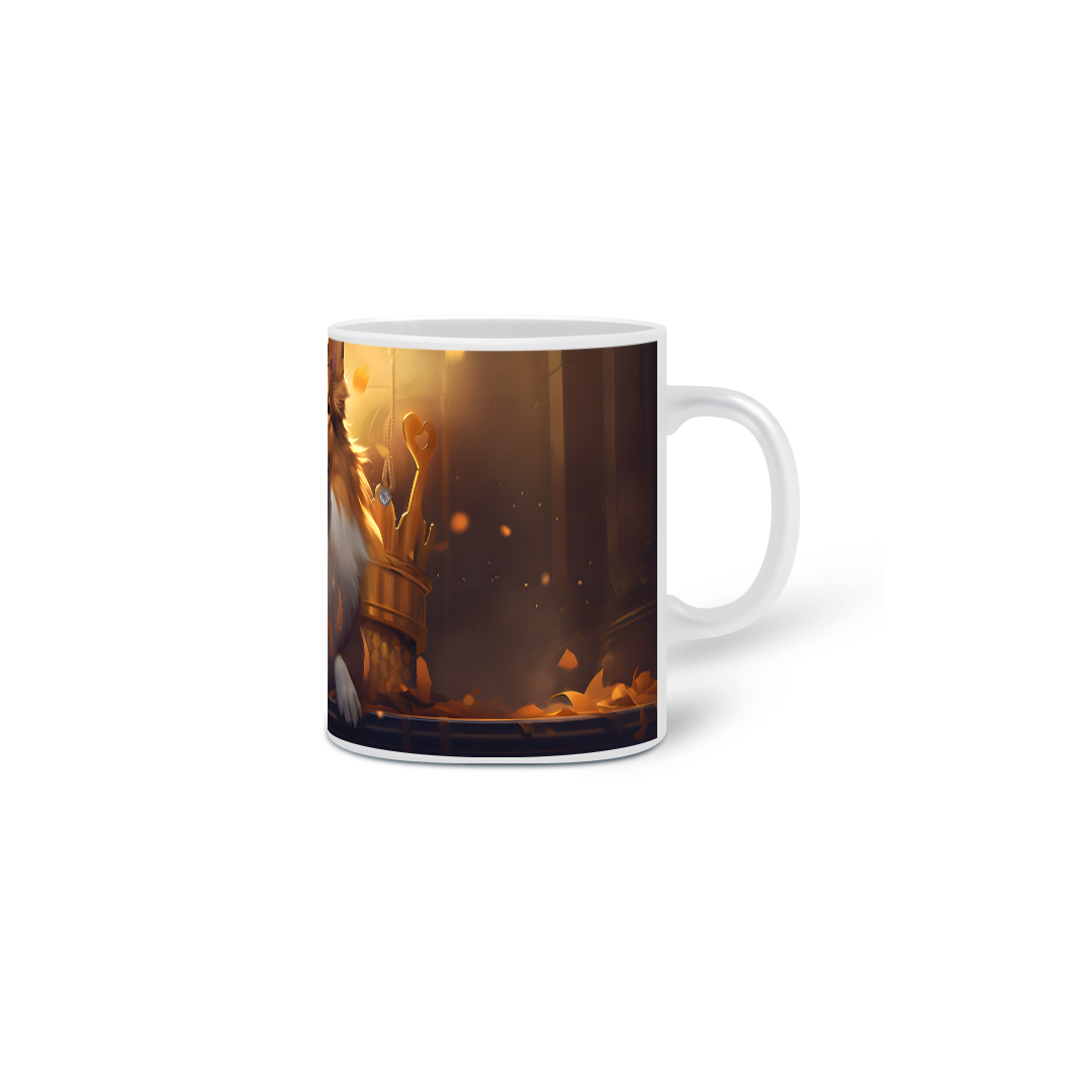 Caneca exclusiva de porcelana com arte IA. Apenas 1 unidade disponível! Ao comprar, você receberá 2 ebooks: "Tudo sobre Pastores de Shetland" e outro te ensinando tudo sobre "Criação de Imagens com IA", além de 20 papéis de parede para celular.