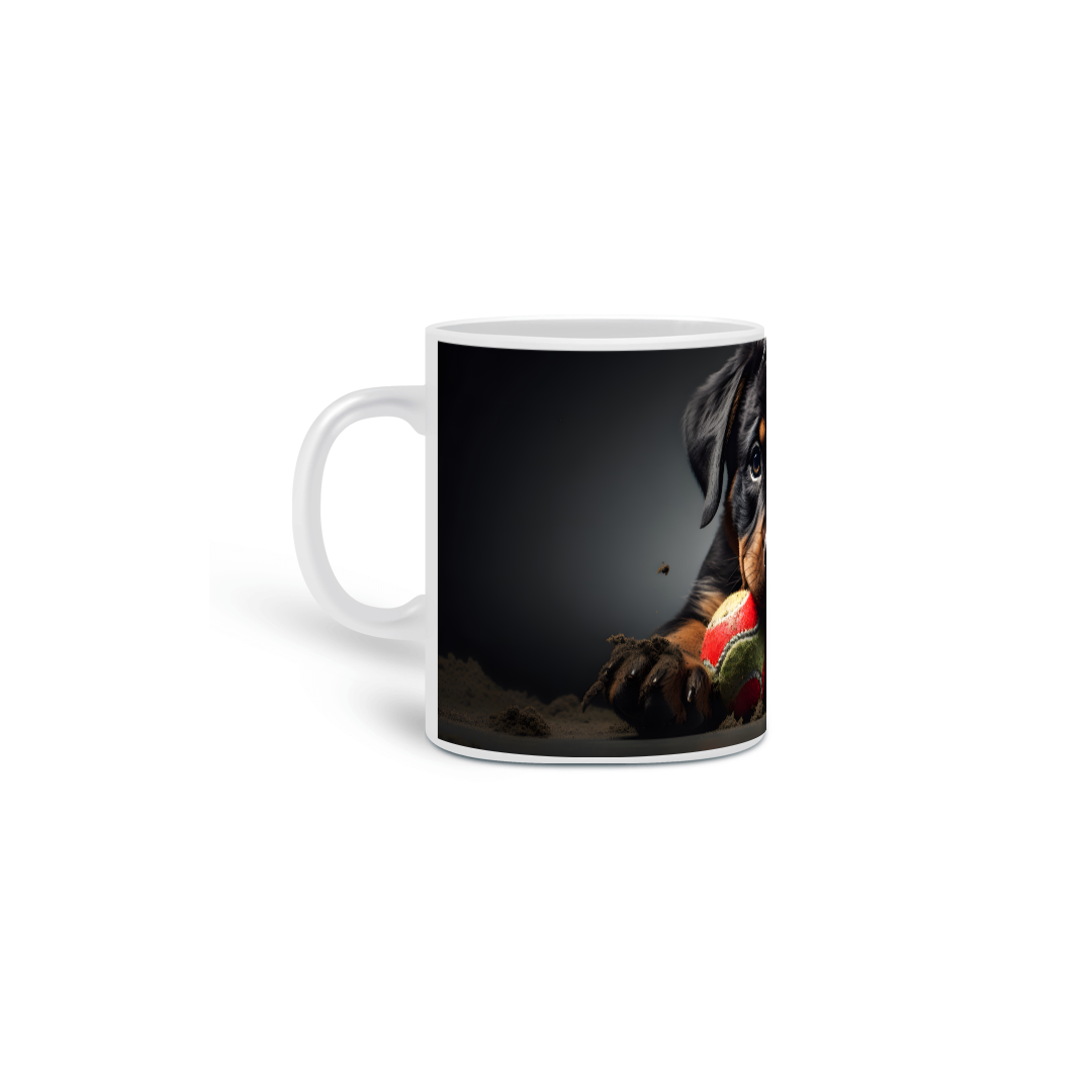 Caneca exclusiva de porcelana com arte IA. Apenas 1 unidade disponível! Ao comprar, você receberá 2 ebooks: "Tudo sobre Rottweilers" e outro te ensinando tudo sobre "Criação de Imagens com IA", além de 20 papéis de parede para celular.