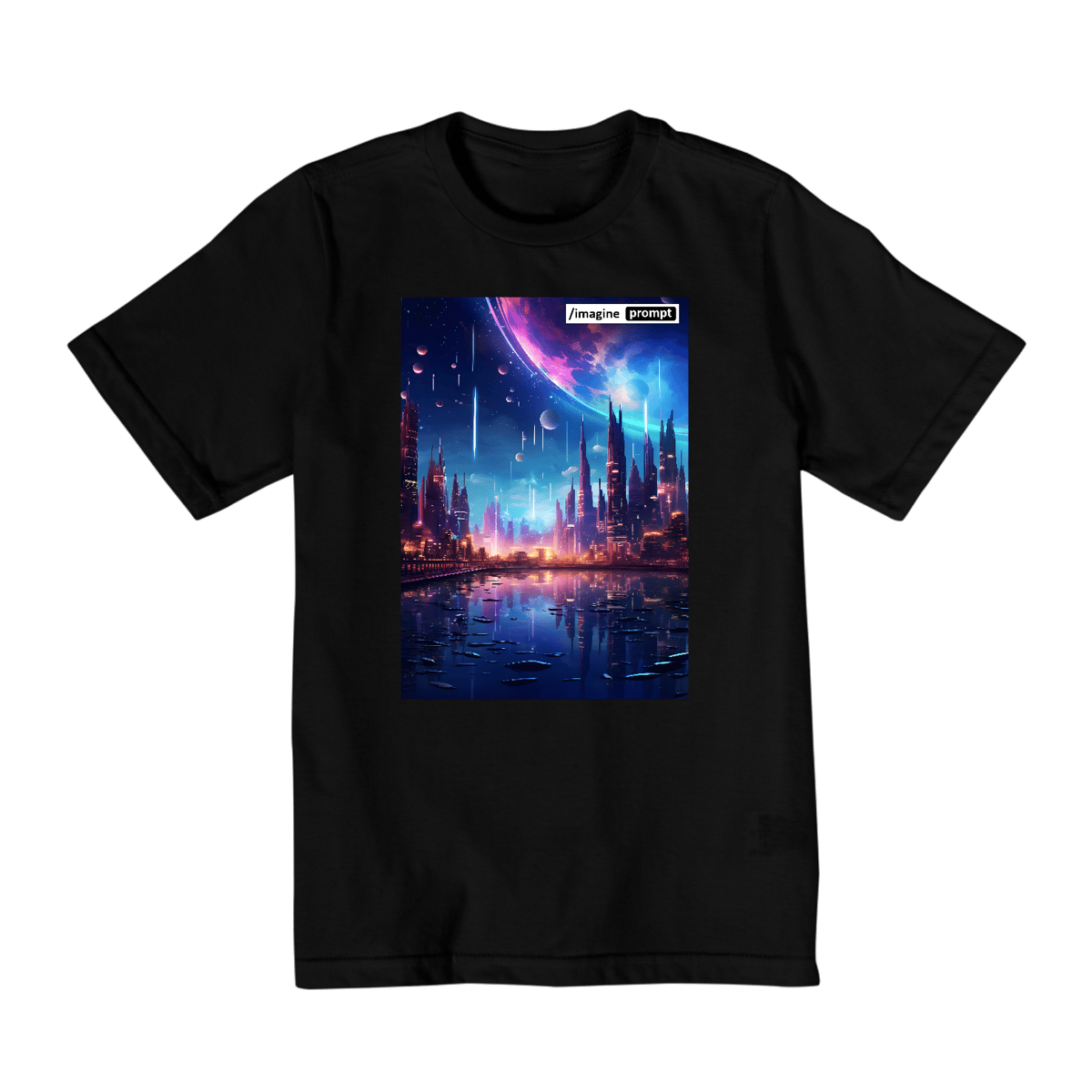 Camiseta "Ficção Científica" exclusiva com arte IA. Apenas 1 unidade disponível! Ao comprar, você receberá 2 ebooks: "40 Imagens de Artes de Ficção Científica + Prompts do MidJourney" e outro te ensinando tudo sobre "Criação de Imagens com IA", além de 40 papéis de parede para celular.