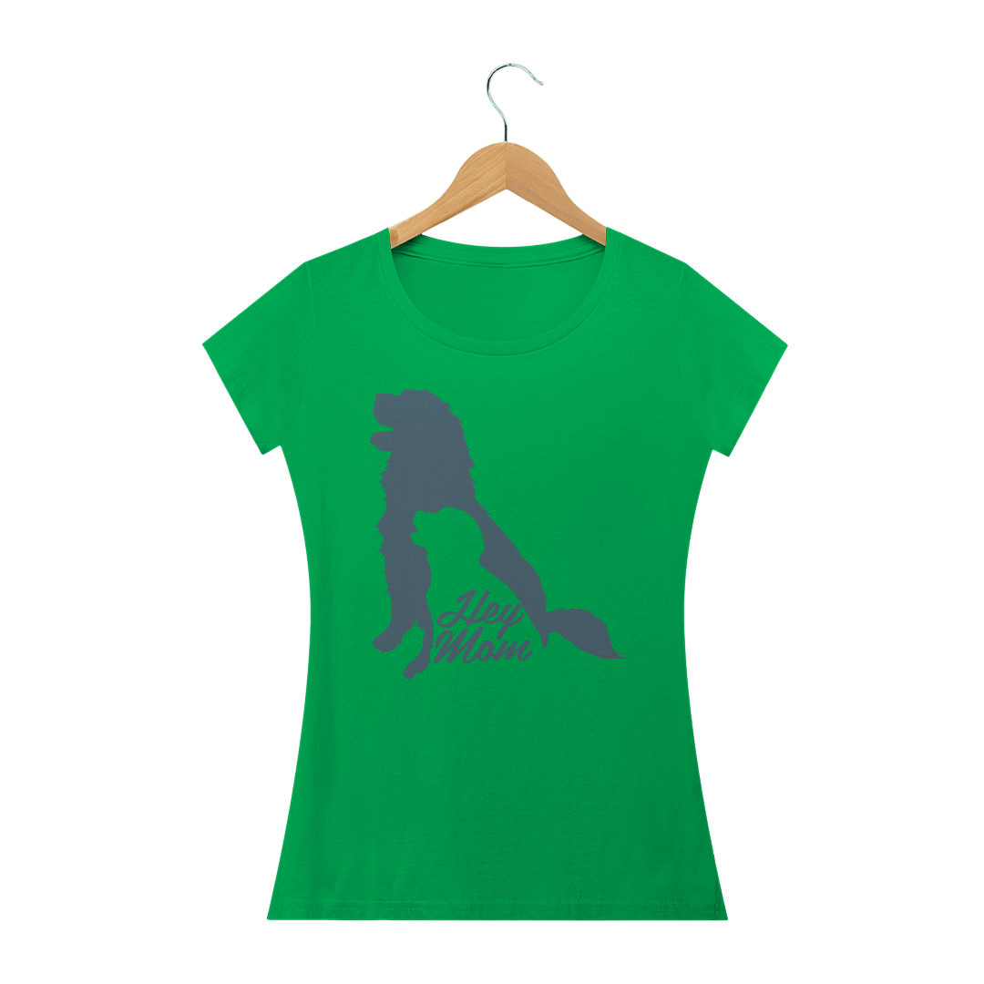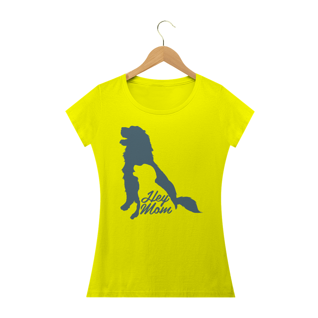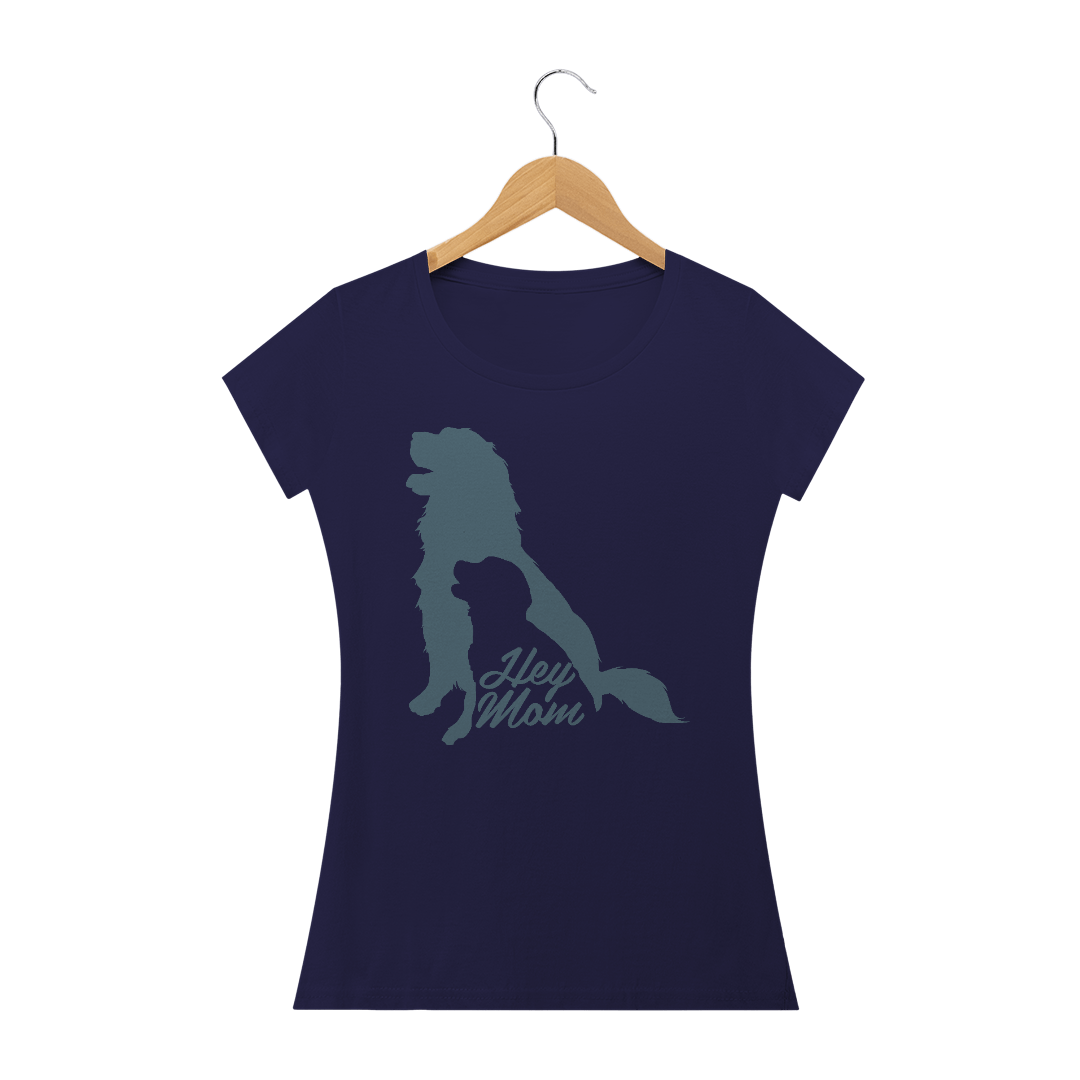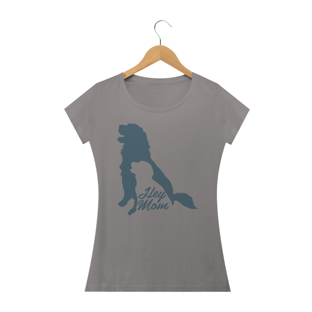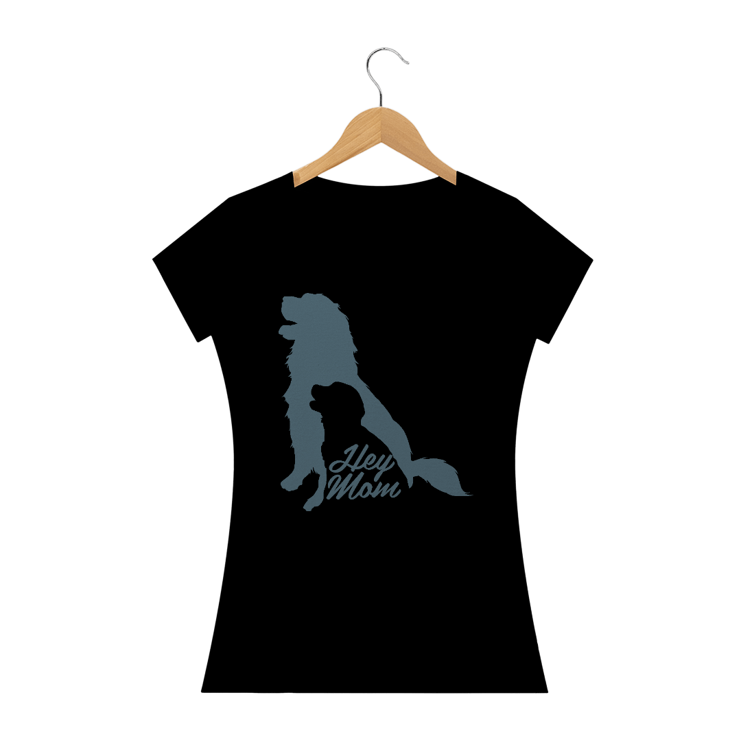 Camiseta Baby Long Quality Estampa Cachorro - Frase Hey Mom