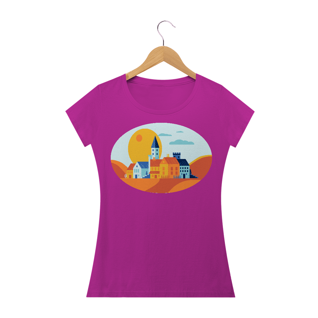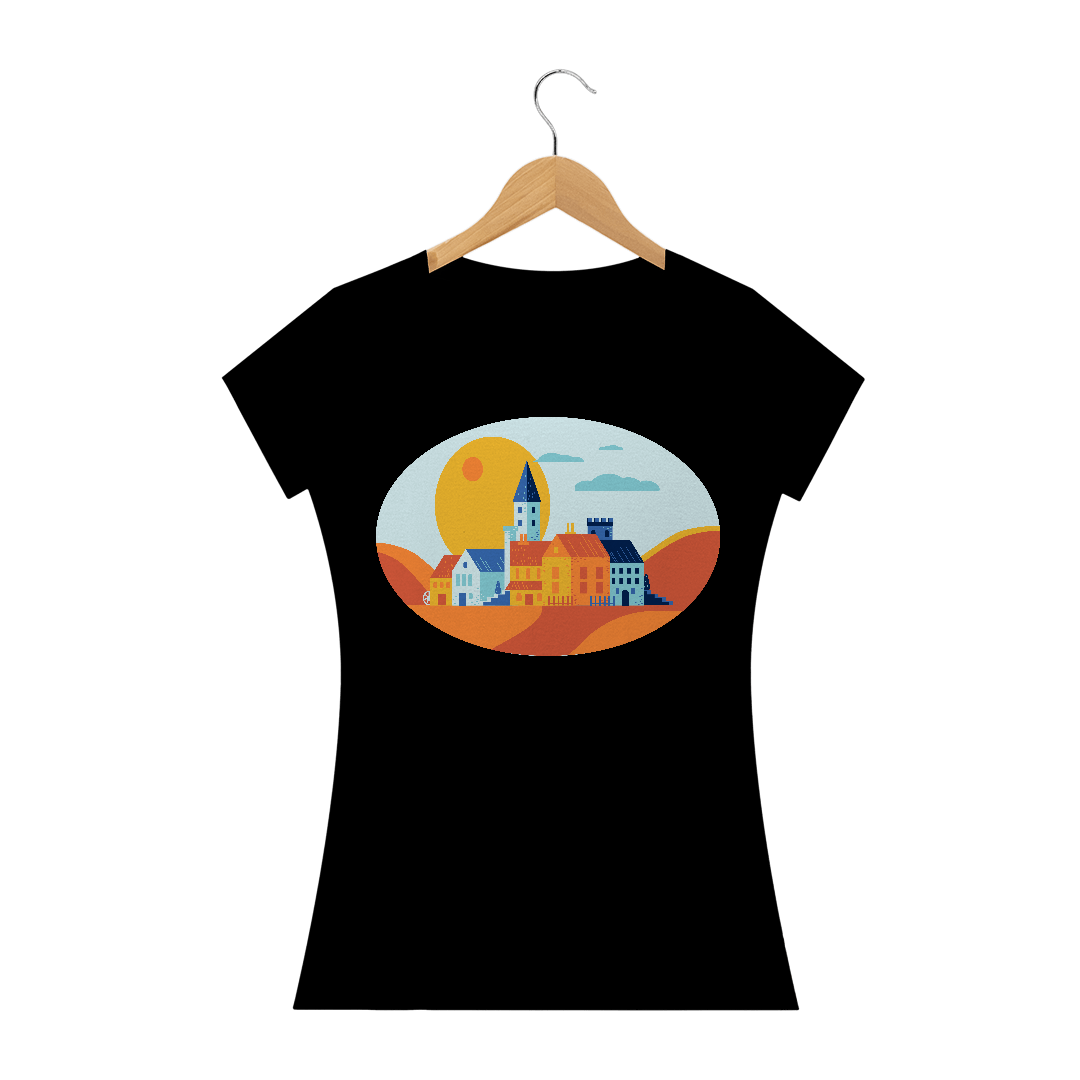 Camiseta Baby Long Quality Estampa Desenho Pequena Cidade.