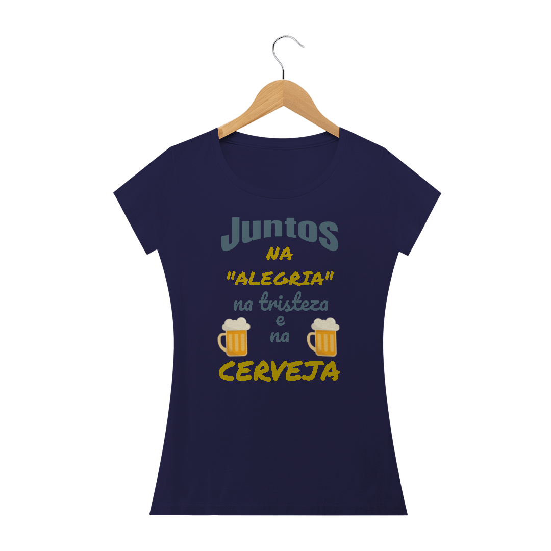 Camiseta Baby Long Quality Estampa Frase - JUNTOS NA ALEGRIA NA TRISTEZA E NA CERVEJA