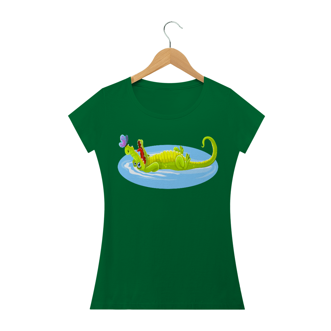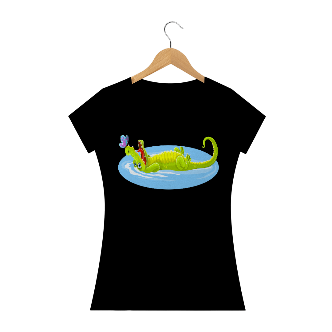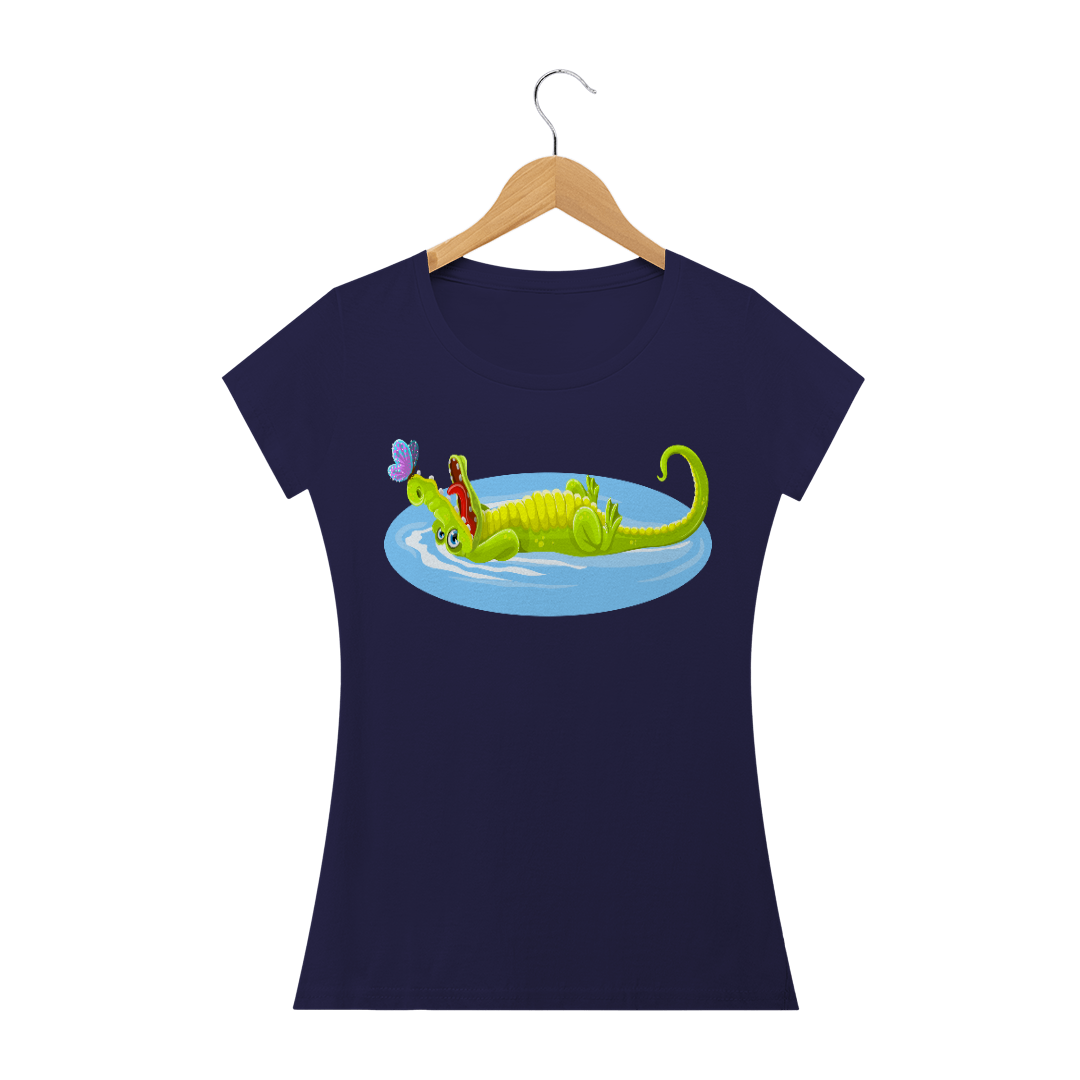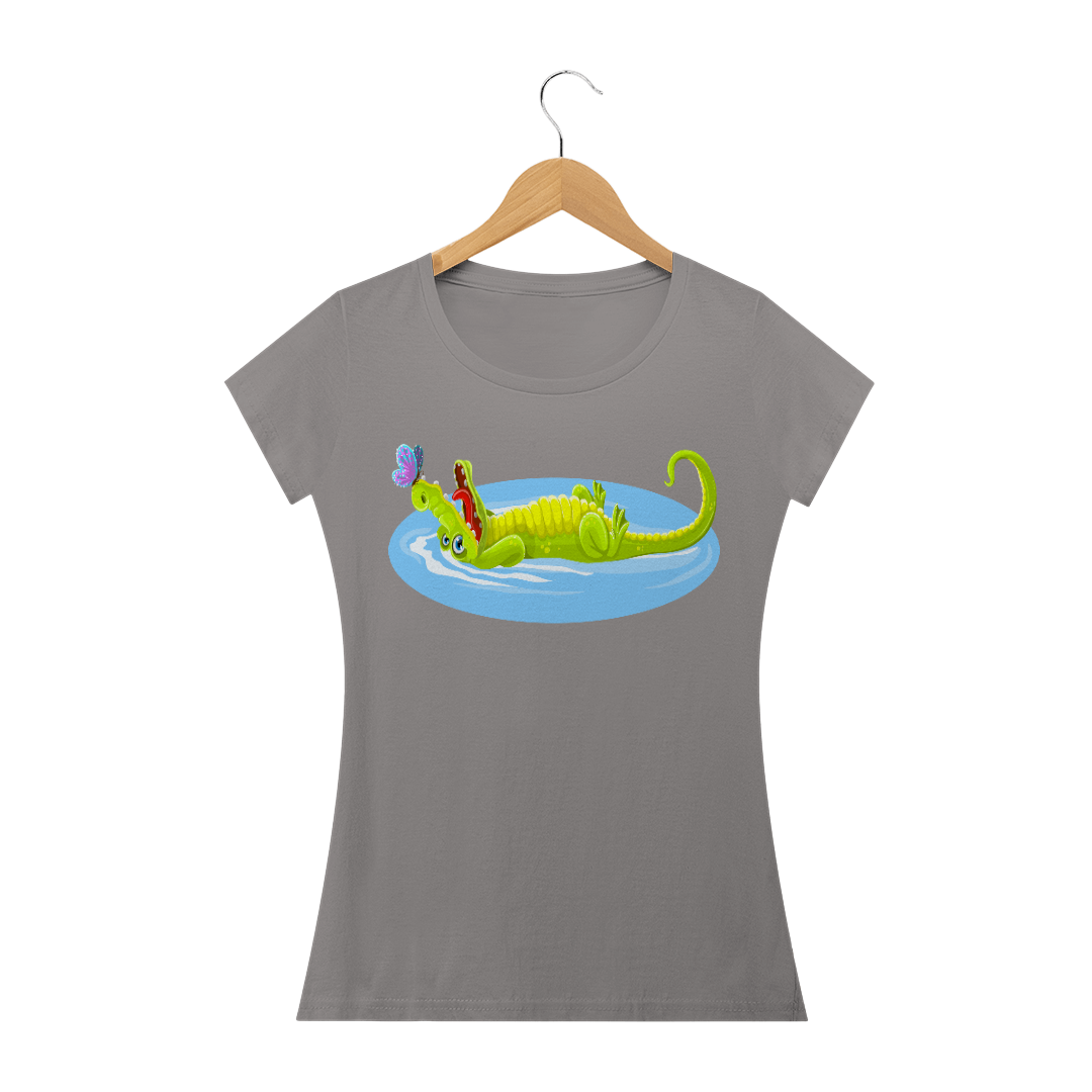 Camiseta Baby Long Quality Feminina Estampa Jacaré Relaxando na Água
