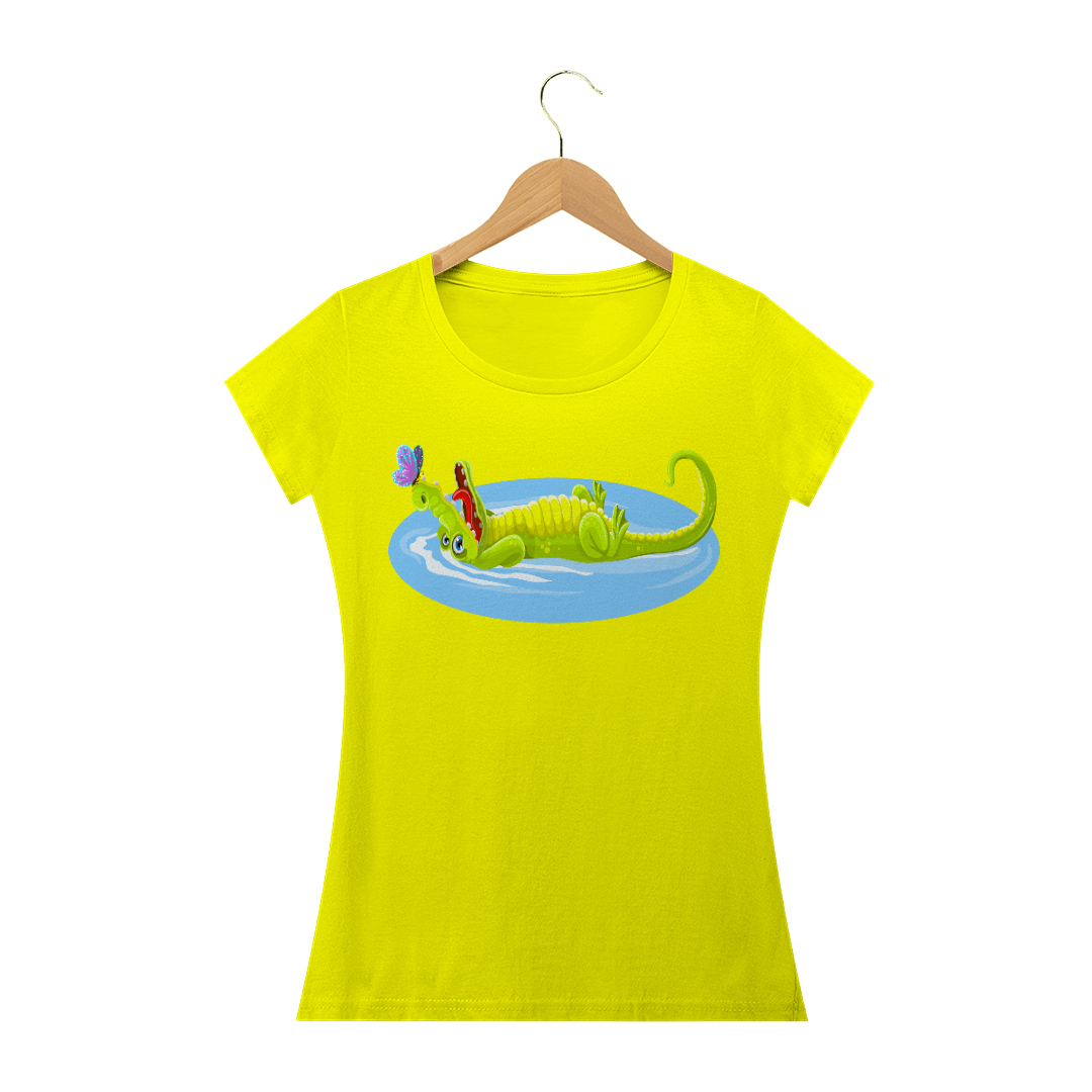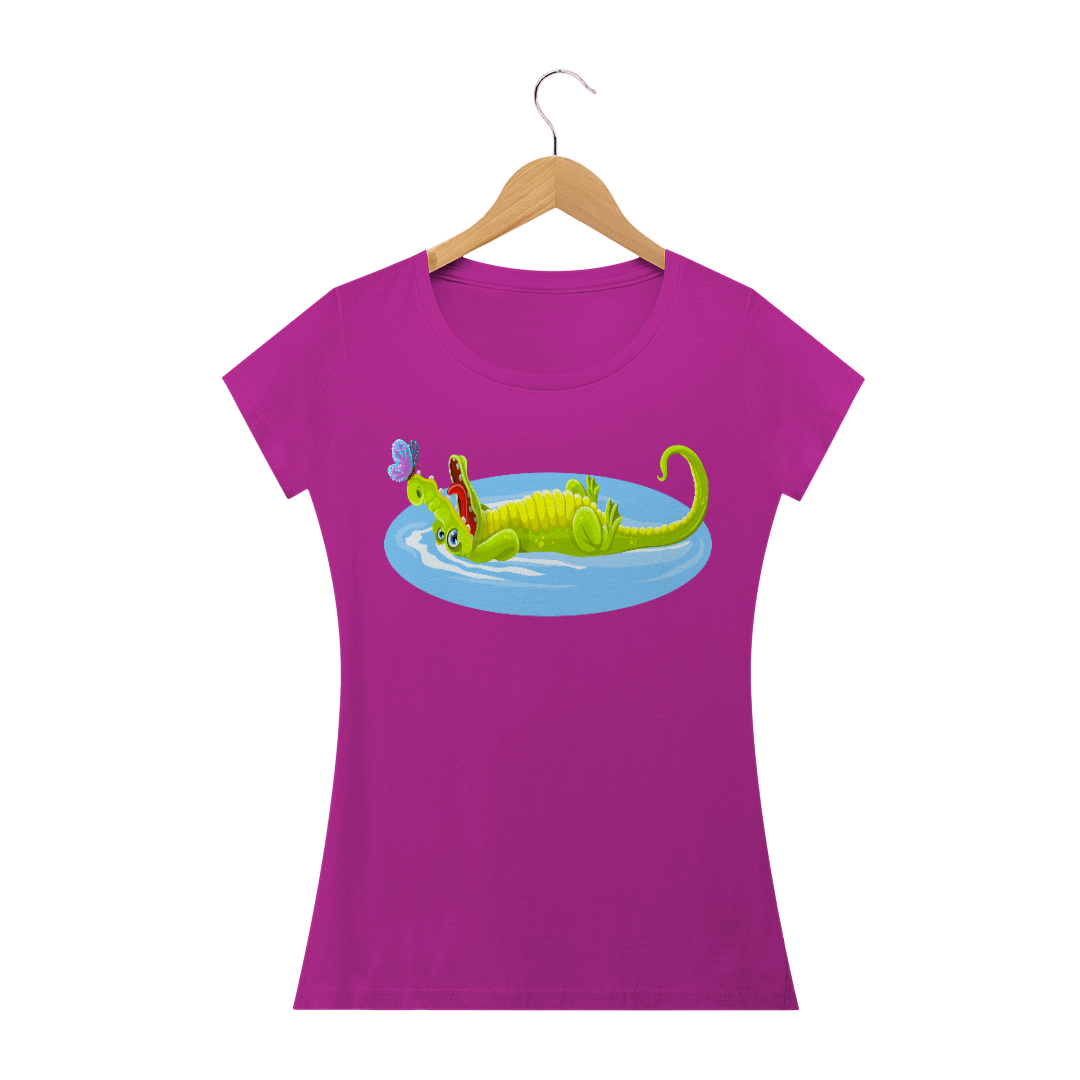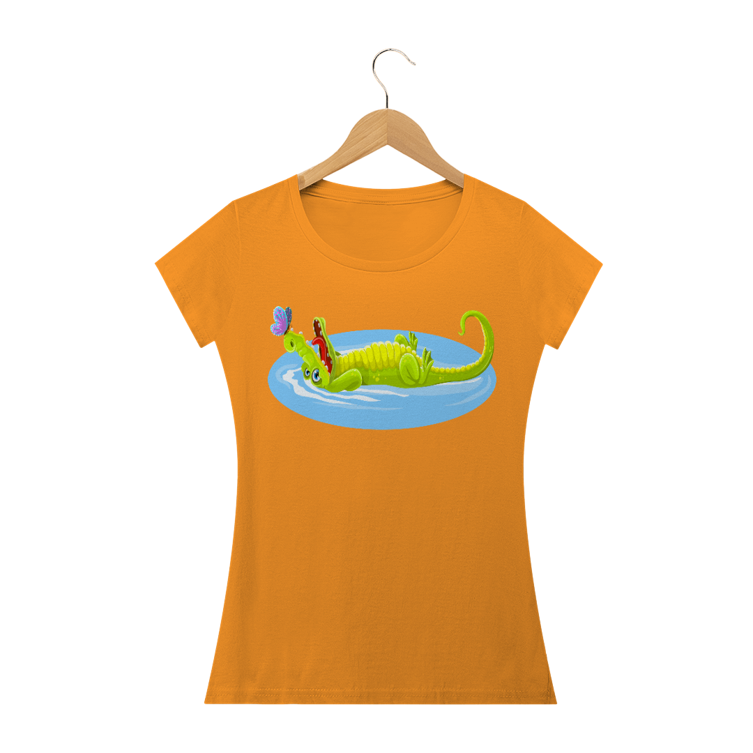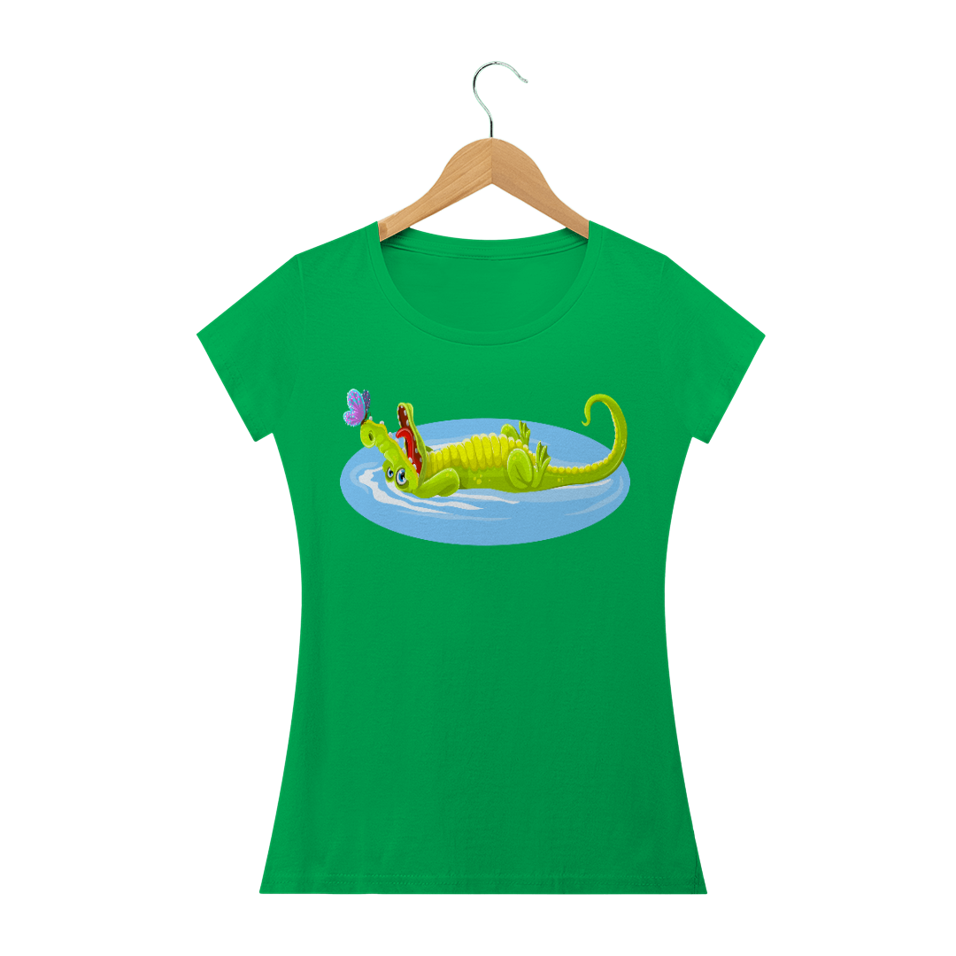 Camiseta Baby Long Quality Feminina Estampa Jacaré Relaxando na Água