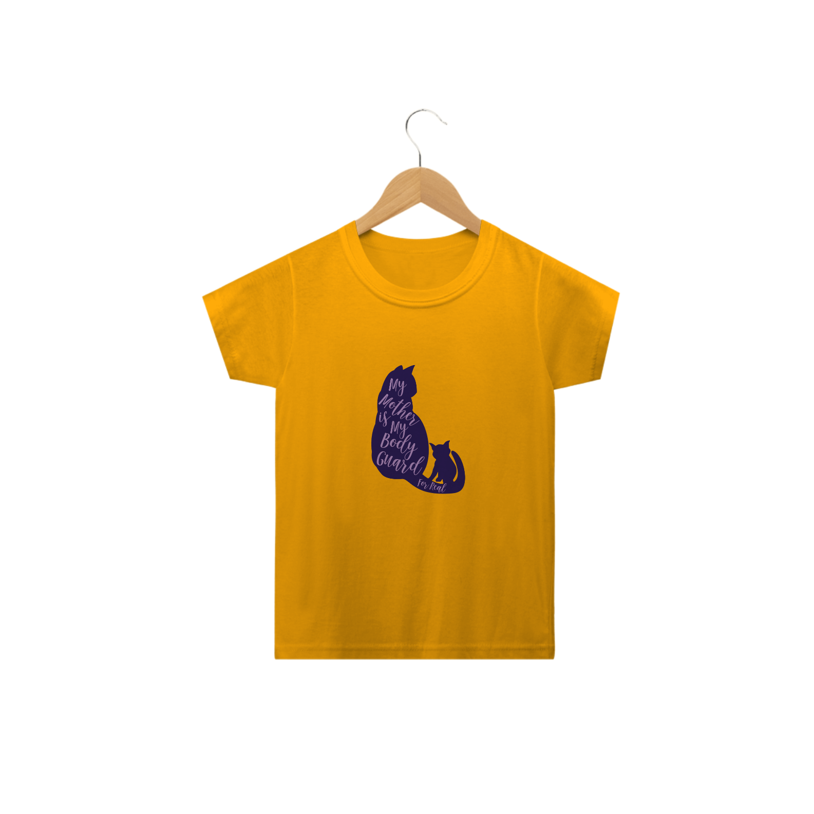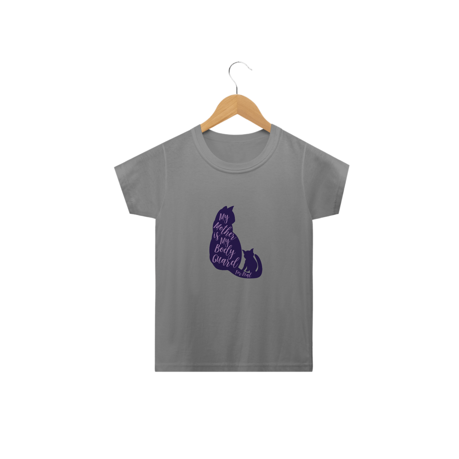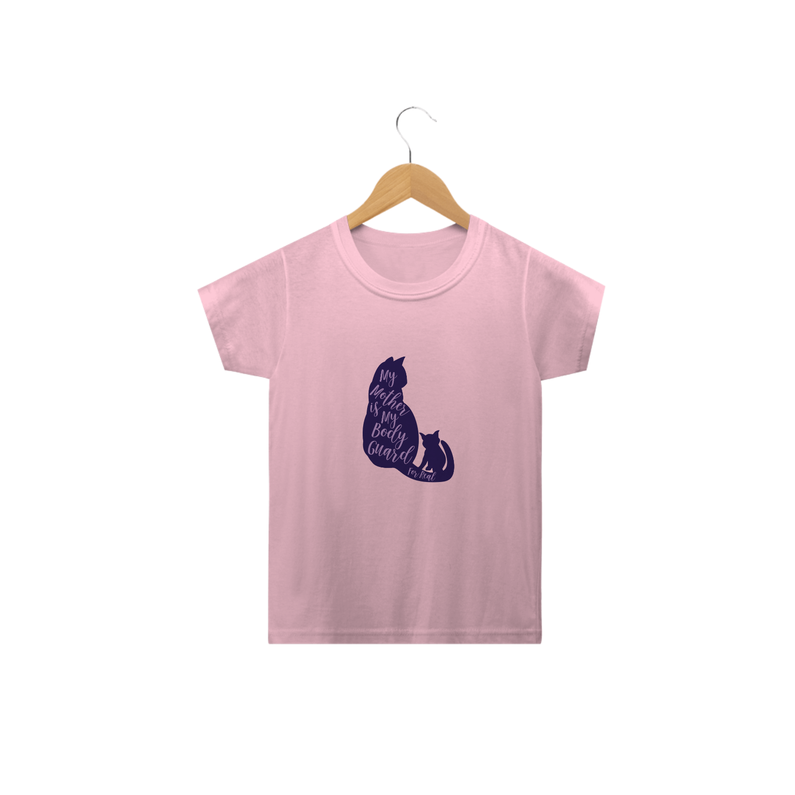 Camiseta Classic Infantil Estampa Gato Frase My Mother is My Body Guard for Real - Minha mãe é minha guarda-costas de verdade