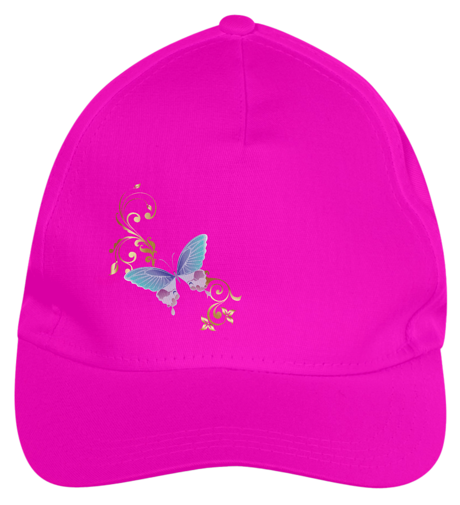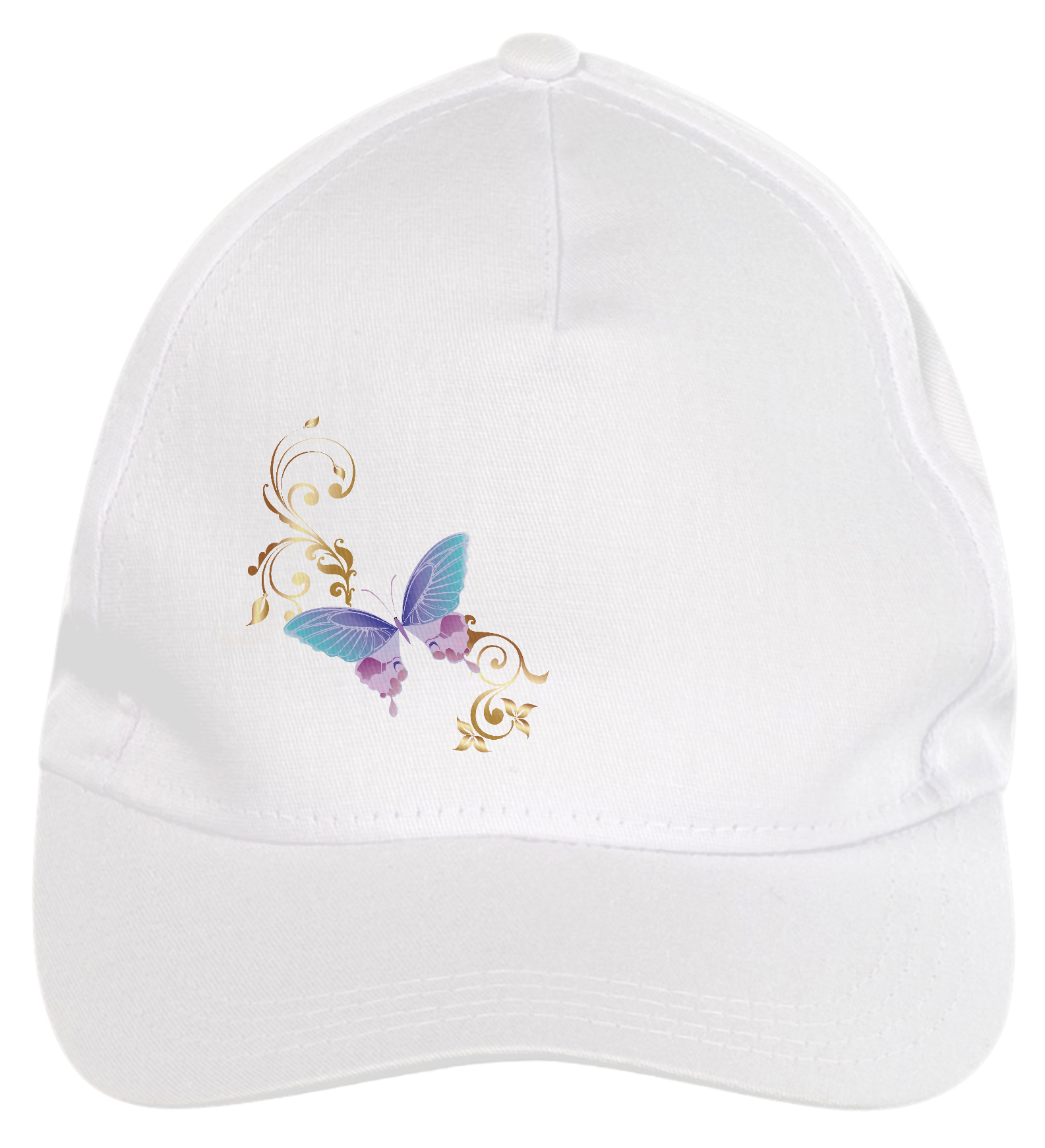 Boné americano com transfer frontal em alta qualidade, aba curva e fecho em tira totalmente regulável com pinos. O modelo veste tamanho "único".