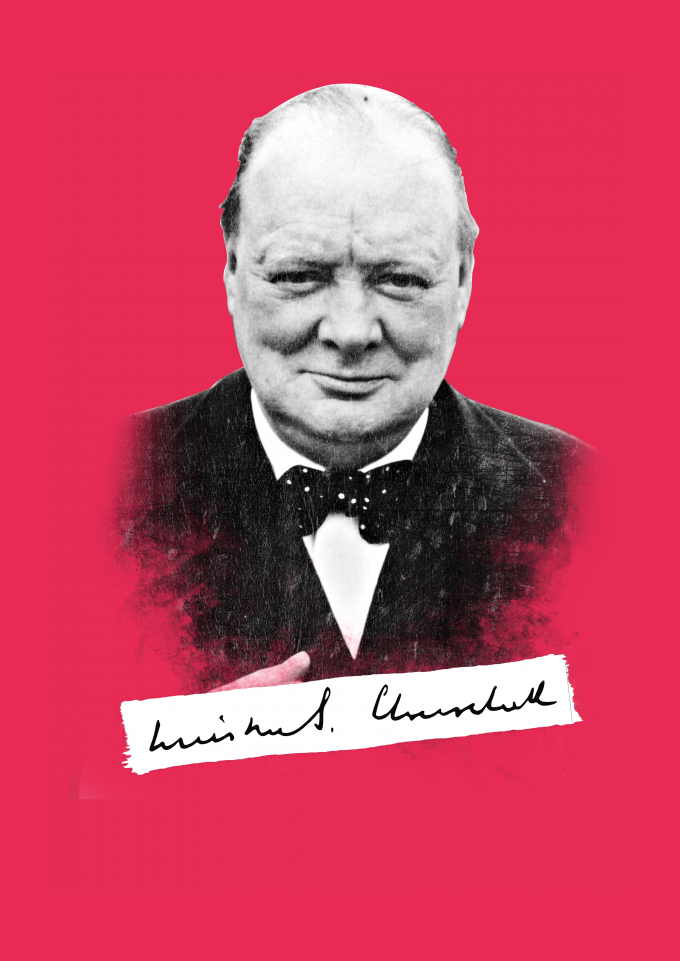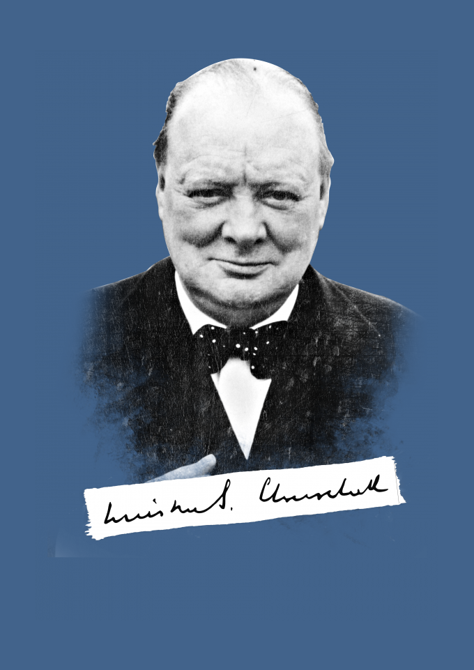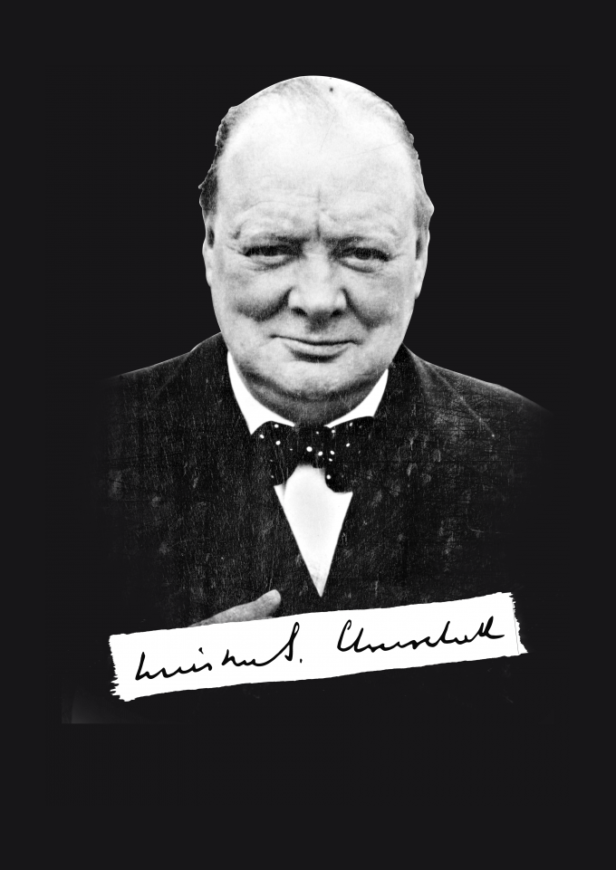 Uma camisa do grande primeiro-ministro do Reino Unido durante a Segunda Guerra Mundial chamado Winston Leonard Spencer-Churchil que foi, acima de tudo, um exemplo de superação e glória.