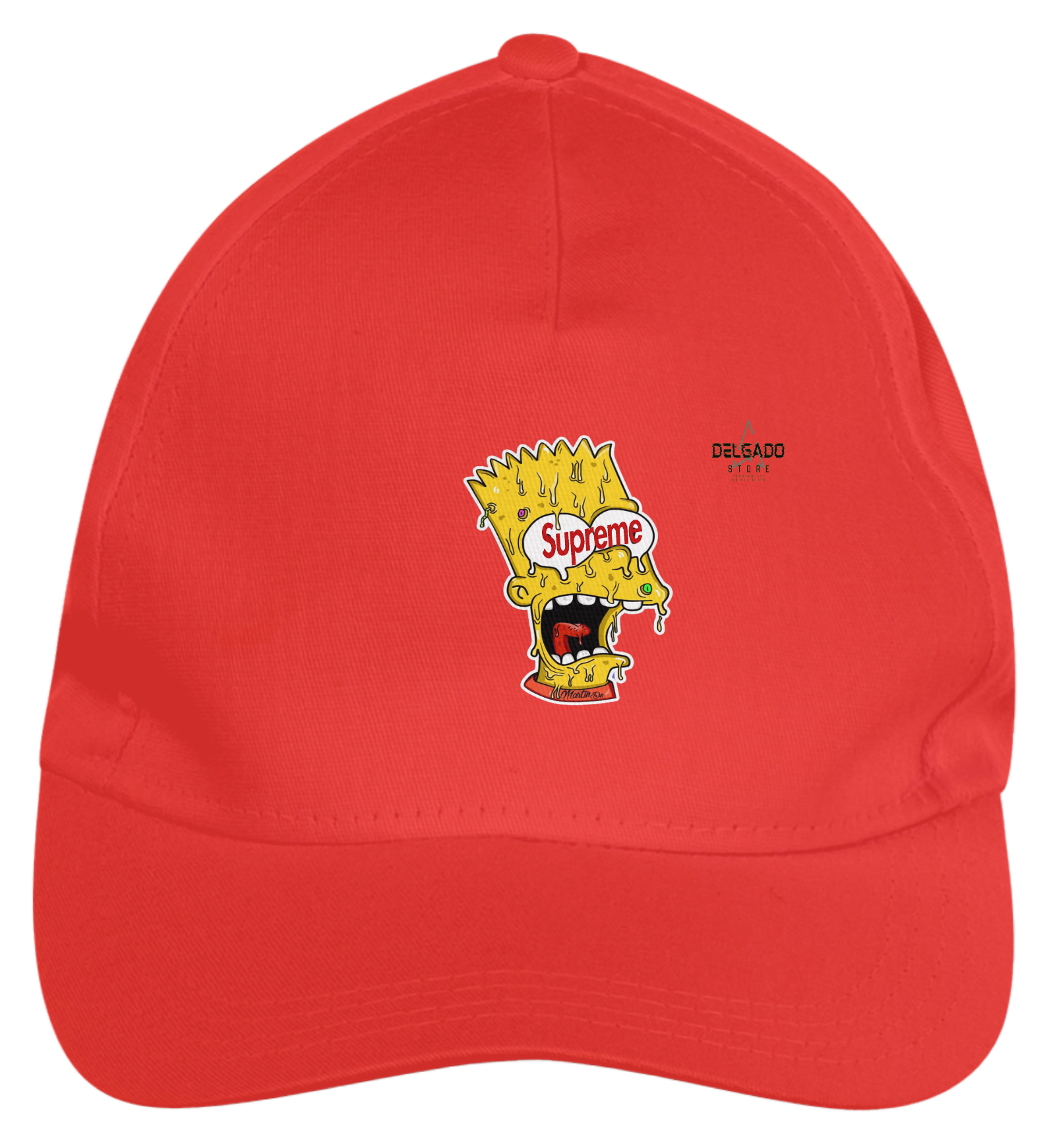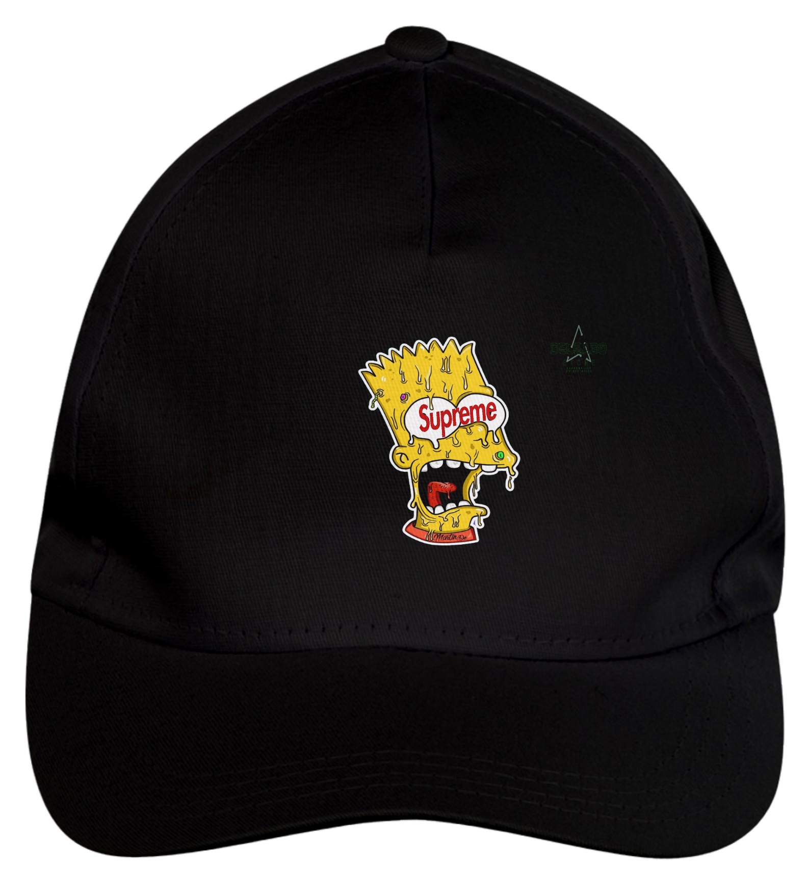 Boné americano com transfer frontal em alta qualidade, aba curva e fecho em tira totalmente regulável com pinos. O modelo veste tamanho "único".