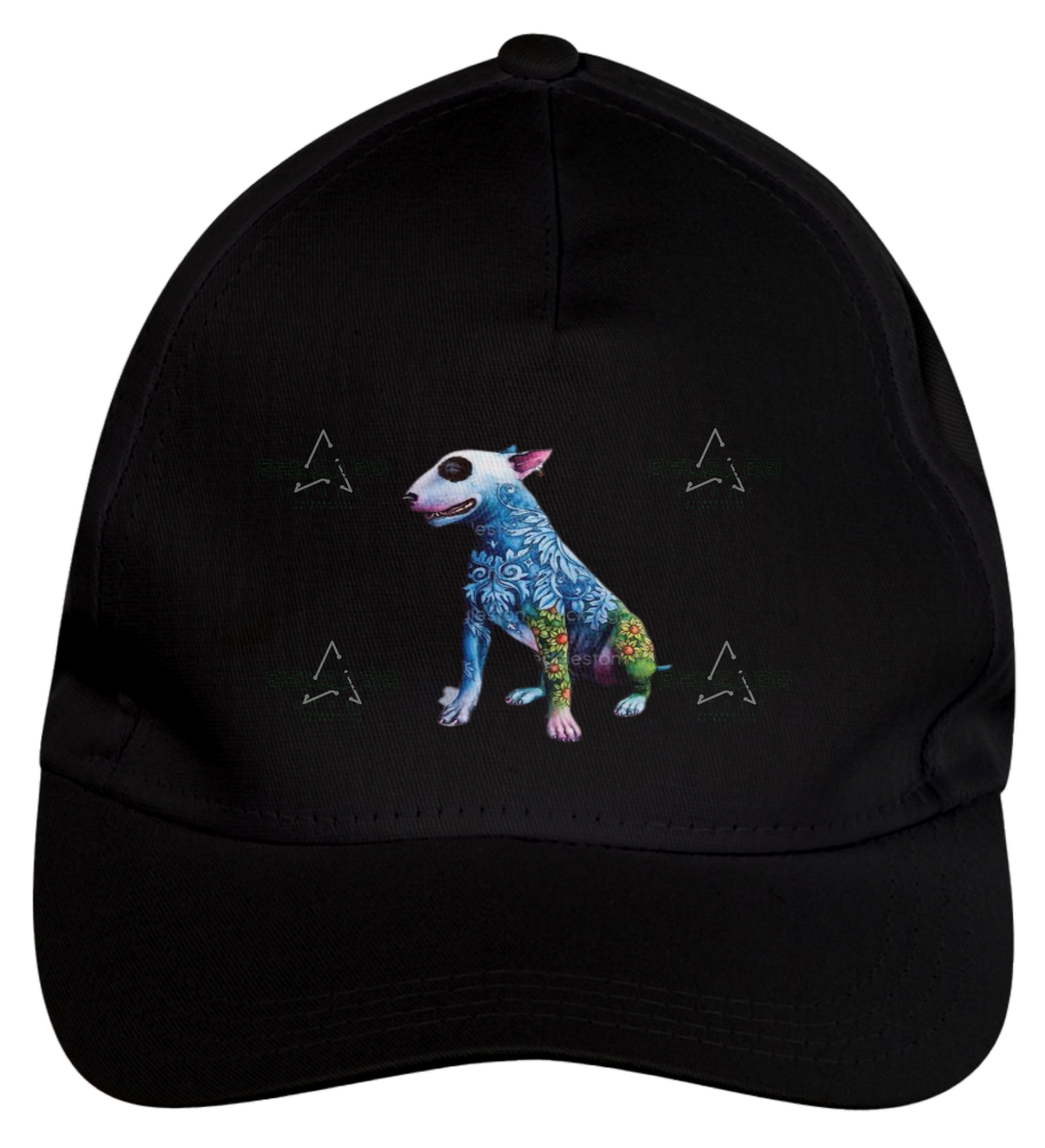 Boné americano com transfer frontal em alta qualidade, aba curva e fecho em tira totalmente regulável com pinos. O modelo veste tamanho "único".