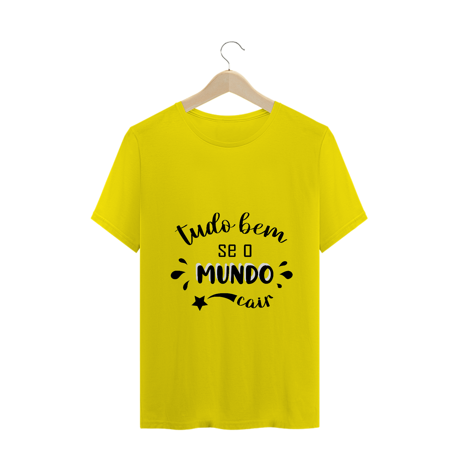 Camiseta personalizada em lettering com citação da música O ASTEROIDE: “tudo bem se o mundo cair”.
