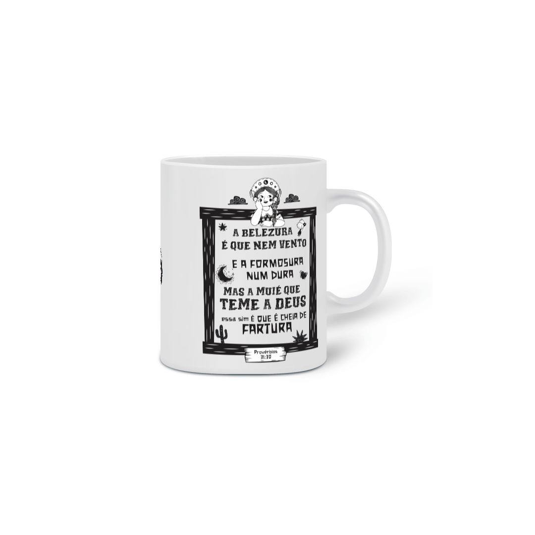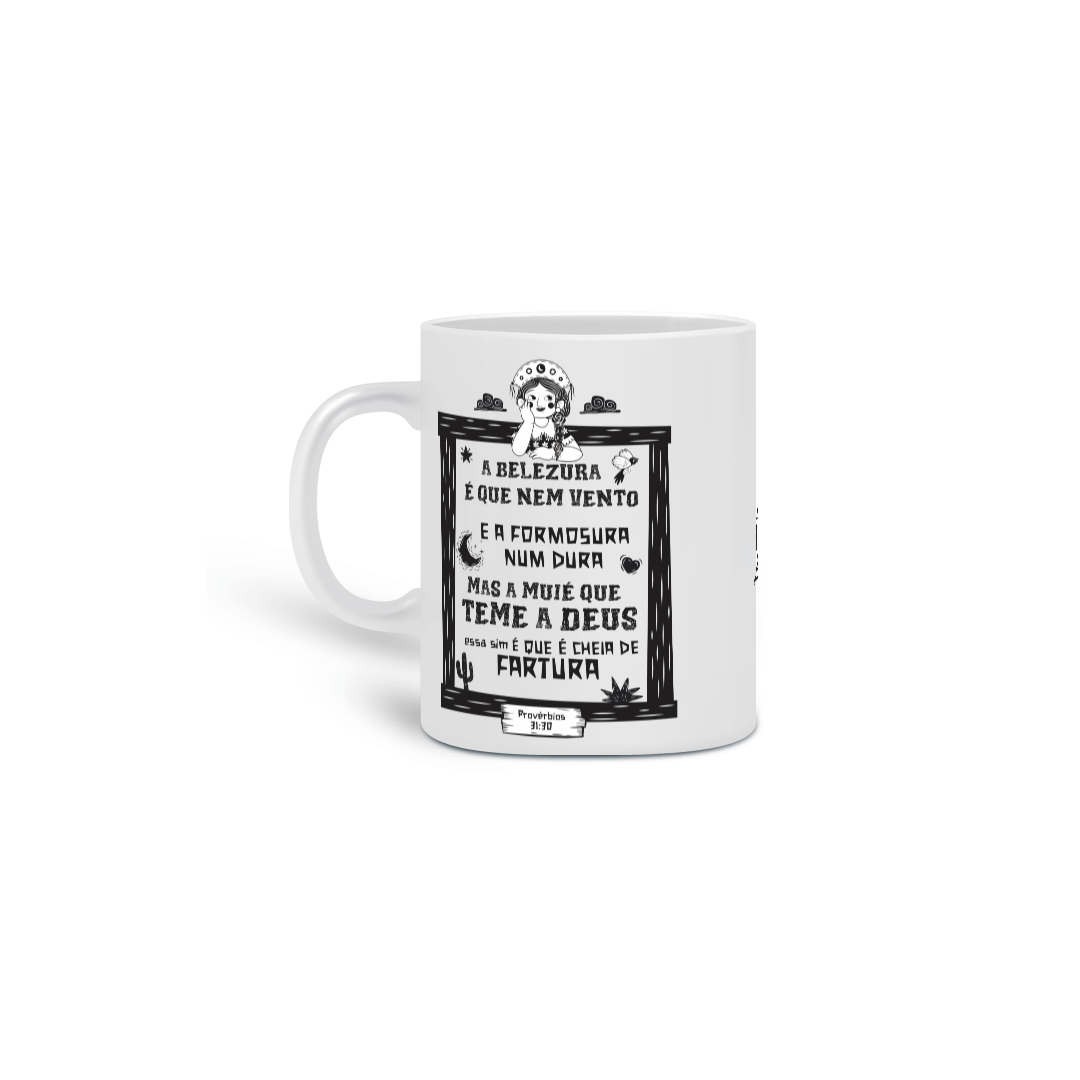 Esta estampa celebra a verdadeira beleza que vai além das aparências: a beleza que vem da fé, do caráter e da sabedoria. Inspirada em Provérbios 31:30, ela é um tributo às mulheres virtuosas, que encontram valor não no efêmero, mas no que é eterno e divino.