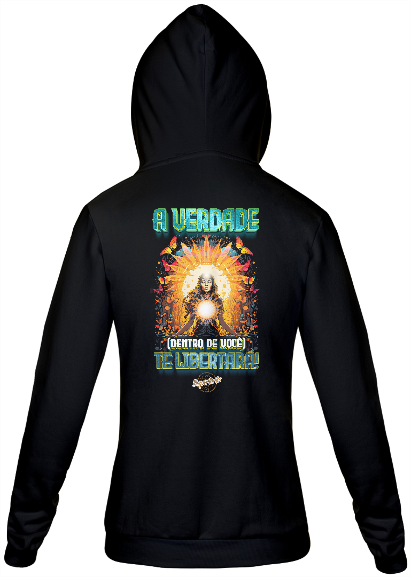 Técnica de impressão: DTF (Direct to Film) que garante alta fidelidade de cores e ótima durabilidade após a lavagem.