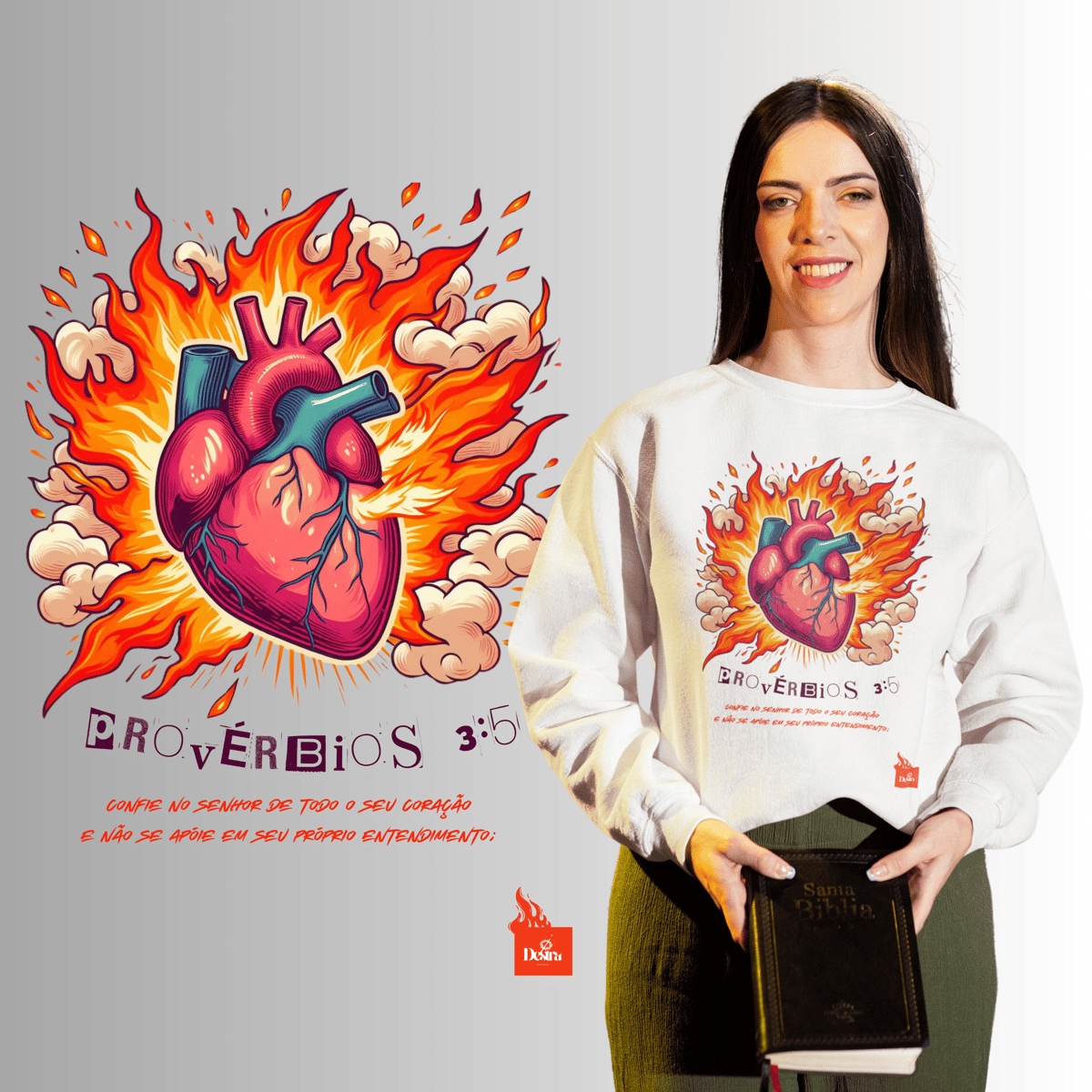 Técnica de impressão: DTF (Direct to Film) que oferece alta definição de cores e ótima durabilidade.