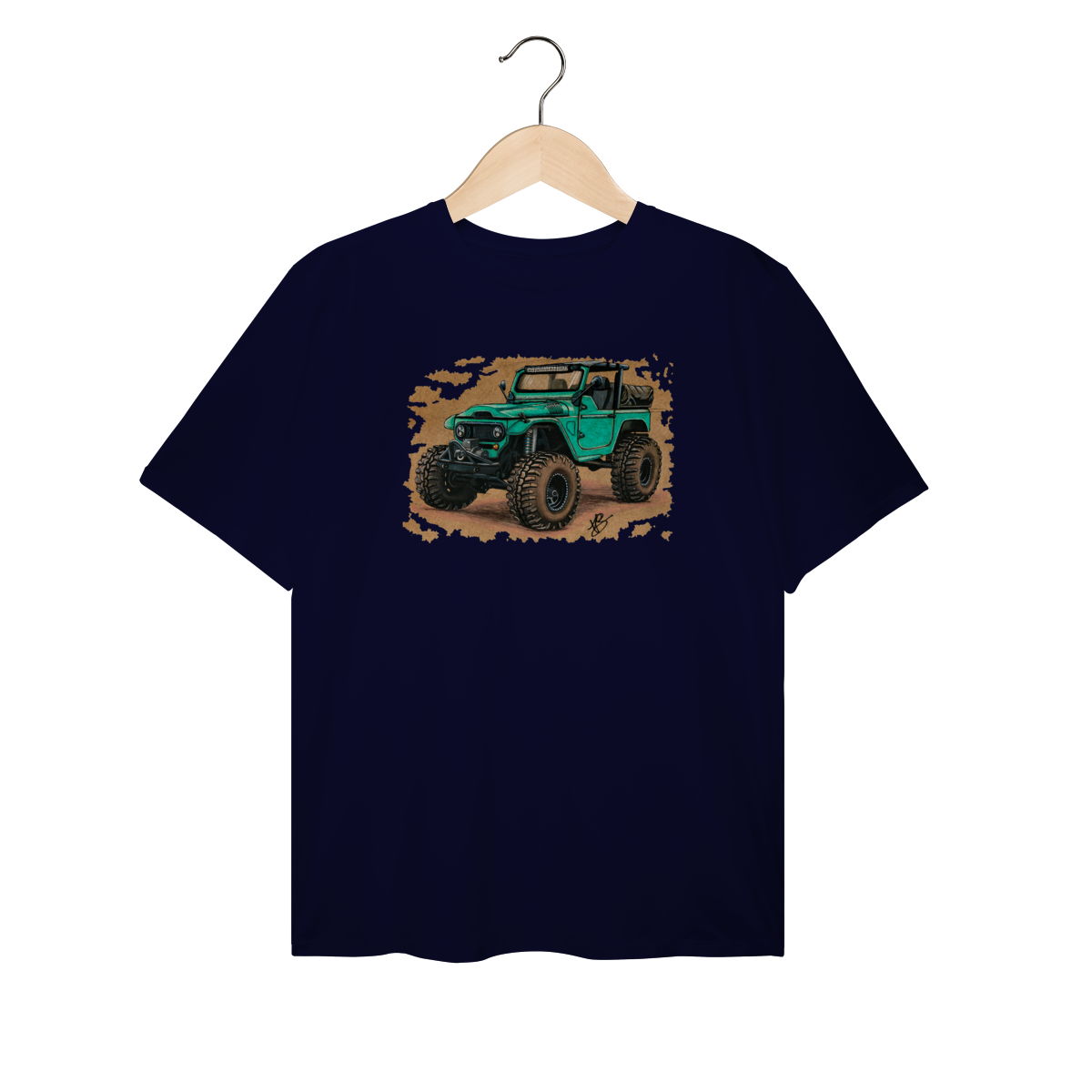 Uma clássica Toyota Land Cruiser reinventada em traço bruto, feito à mão, carregando o espírito de quem prefere o caminho menos óbvio. Não é só uma estampa, é um convite para ir além.