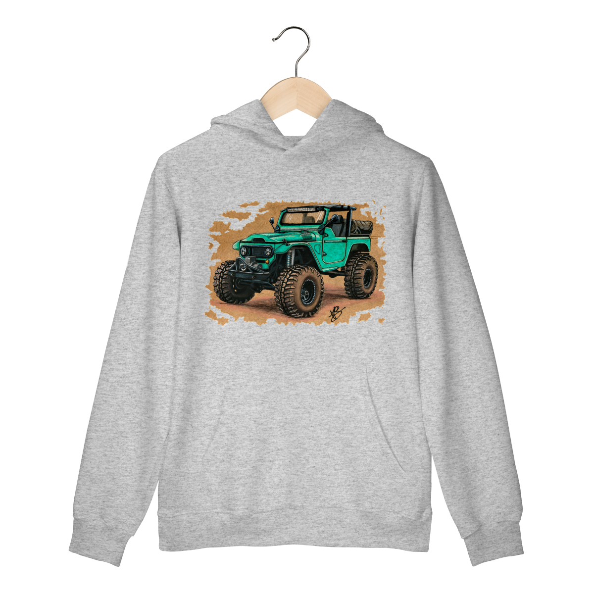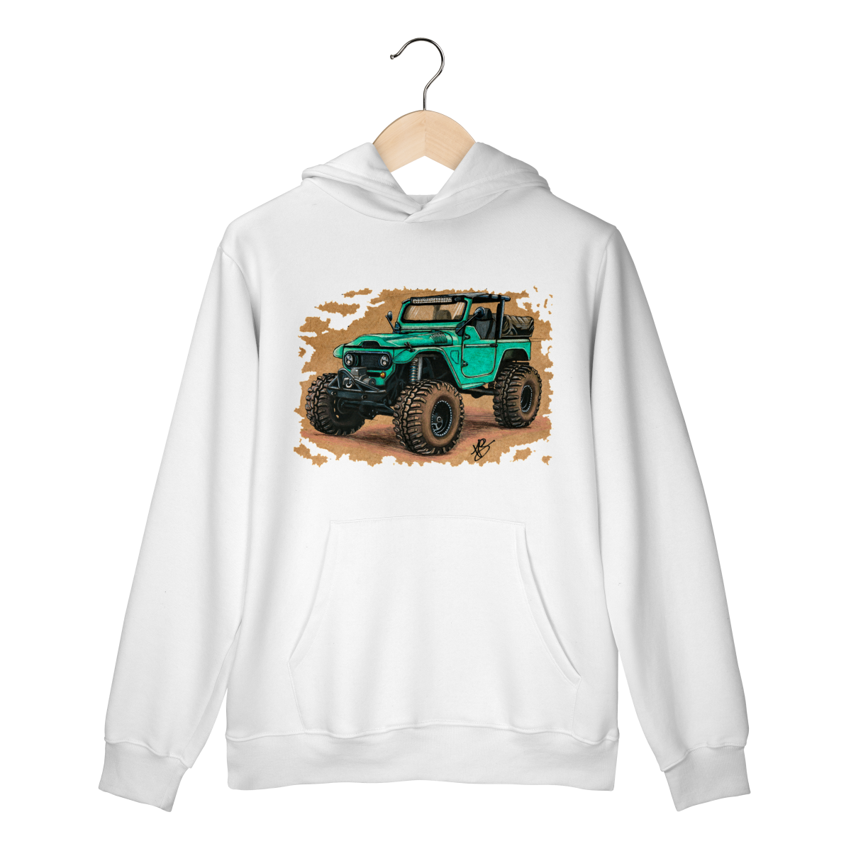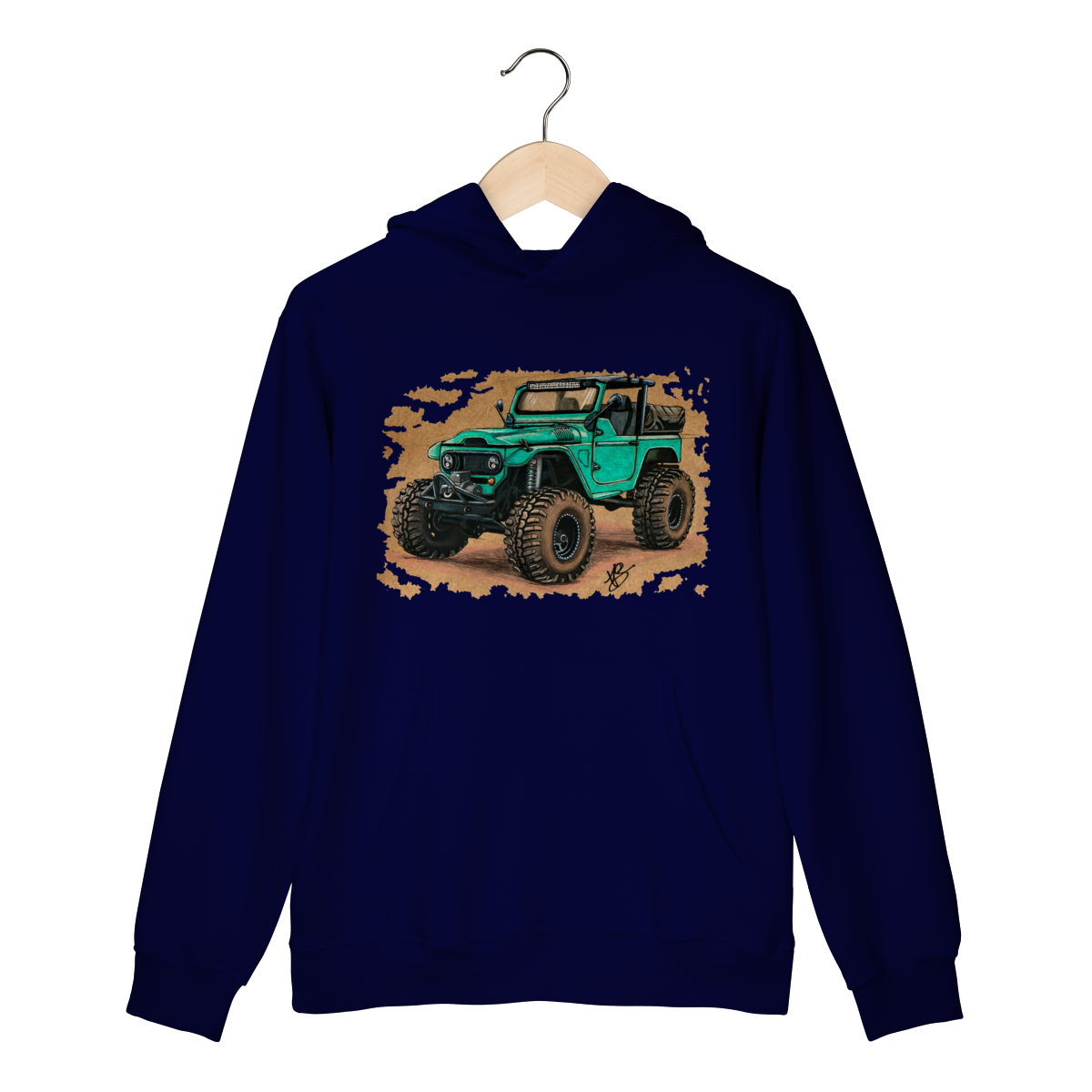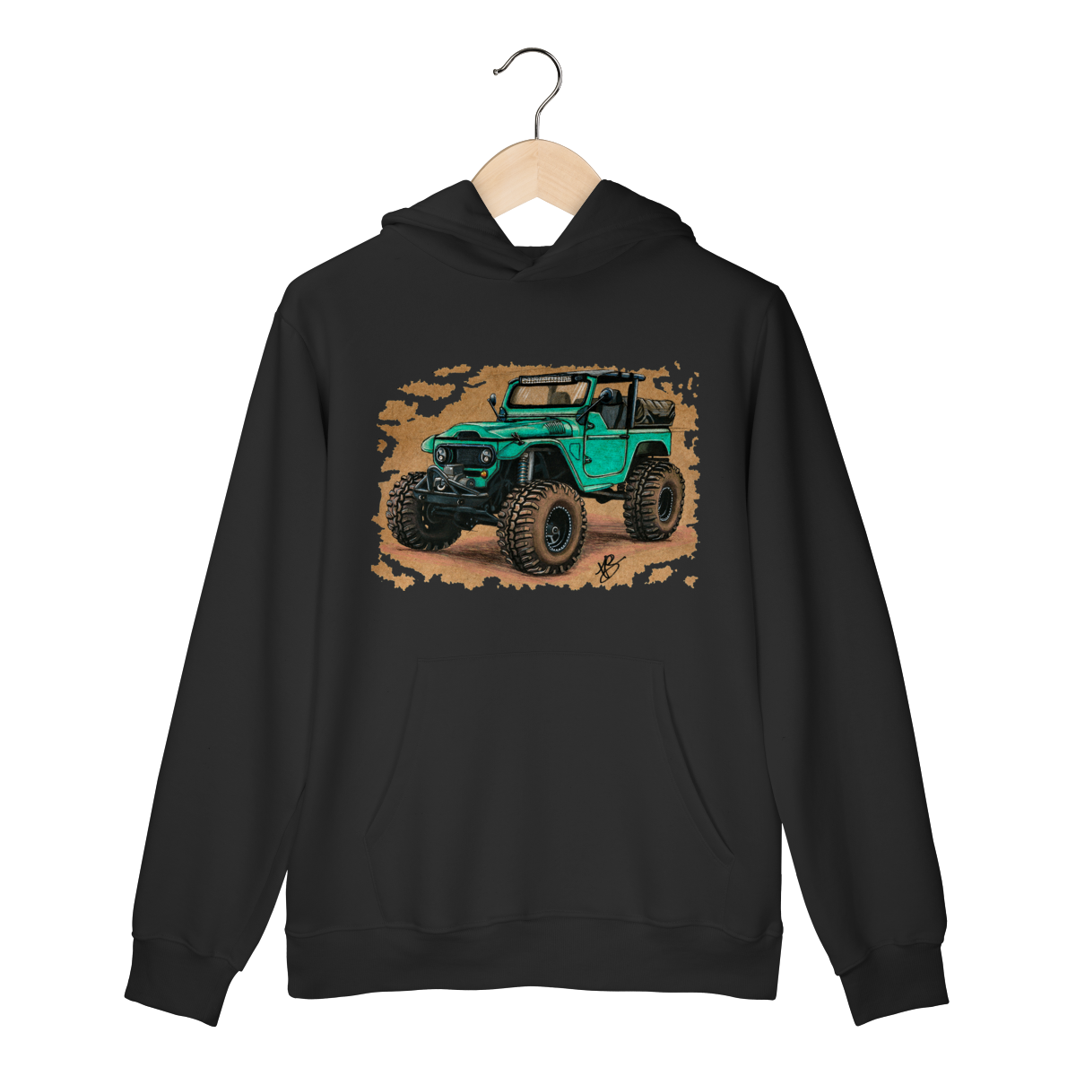 Uma clássica Toyota Land Cruiser reinventada em traço bruto, feito à mão, carregando o espírito de quem prefere o caminho menos óbvio. Não é só uma estampa, é um convite para ir além.