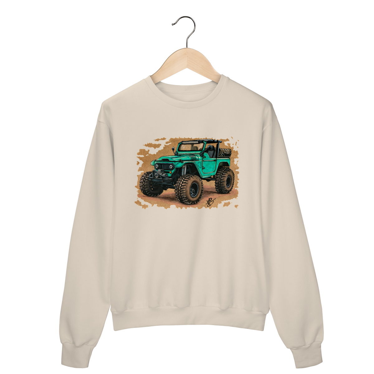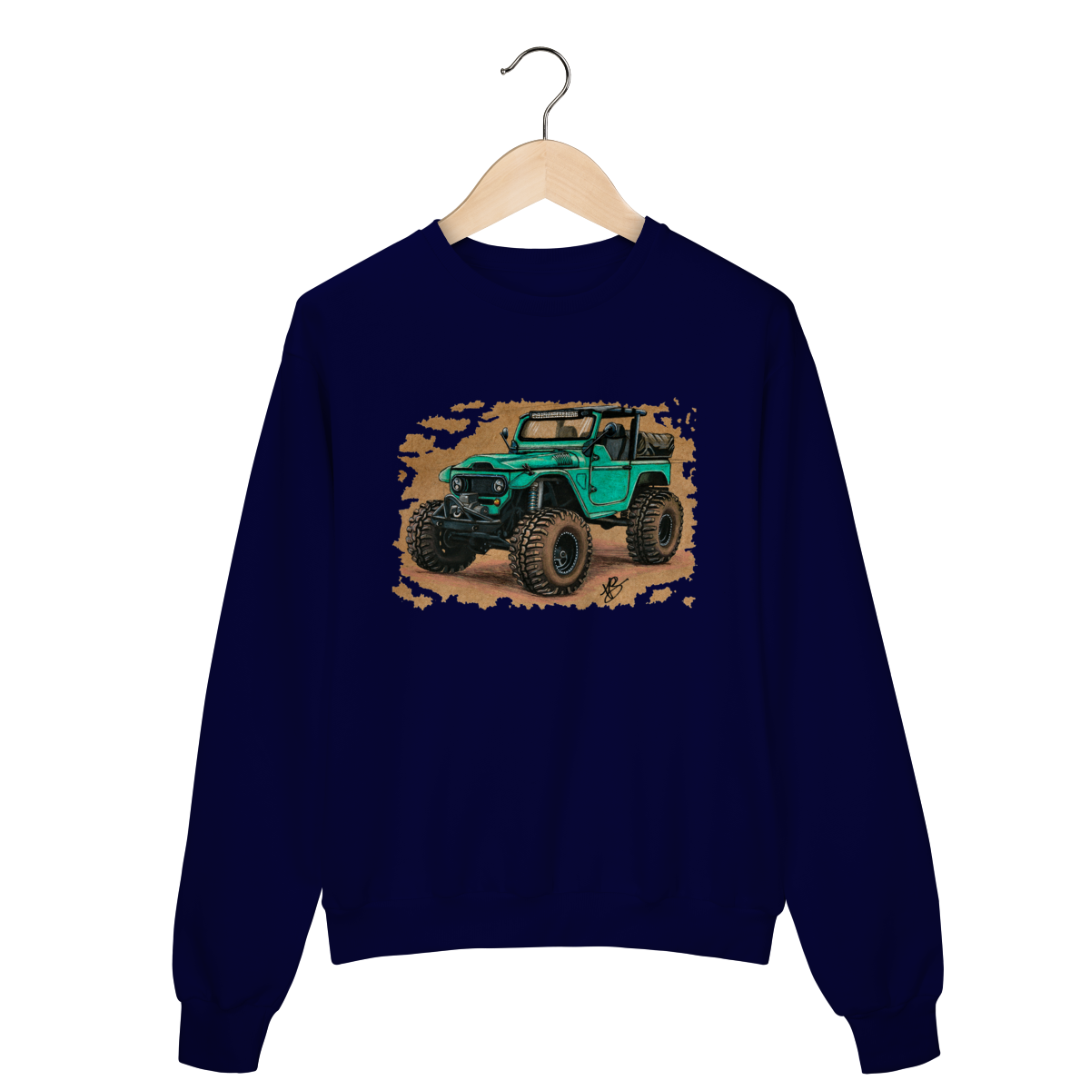 Uma clássica Toyota Land Cruiser reinventada em traço bruto, feito à mão, carregando o espírito de quem prefere o caminho menos óbvio. Não é só uma estampa, é um convite para ir além.
