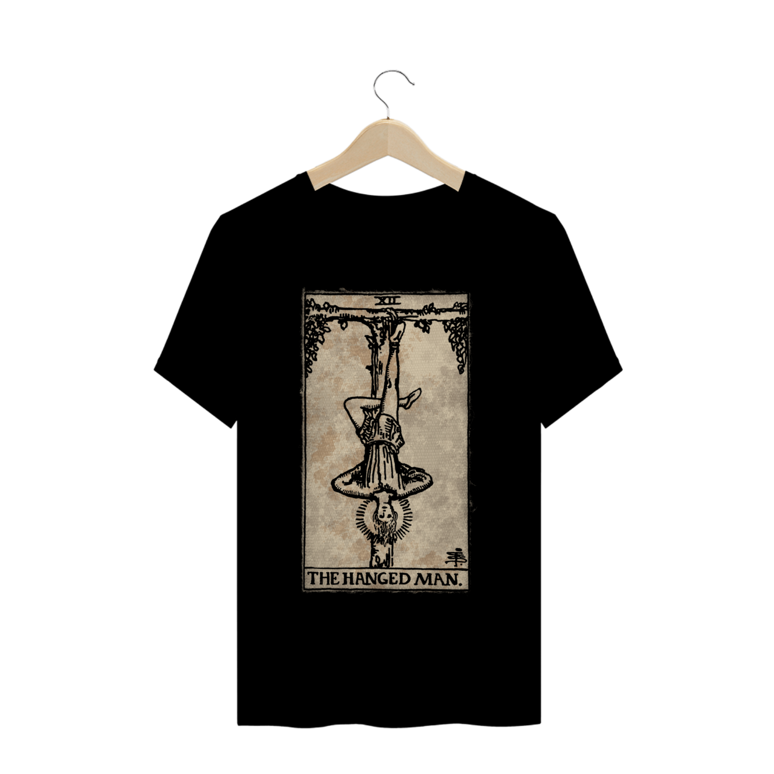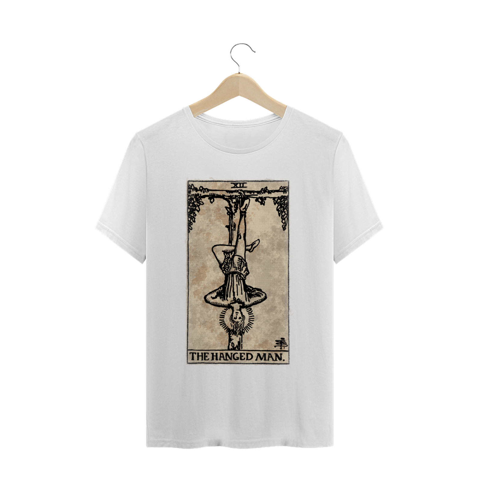 Um homem suspenso em um tronco de madeira. Há uma ambiguidade resultante do fato da carta poder ser vista invertida. O homem ou o mundo está de ponta cabeça? Há um halo sobre a cabeça do suposto mártir, que aponta para a crucificação crística. A árvore do sacrifício é de madeira viva, com folhas, e o rosto manifesta entendimento, não sofrimento.