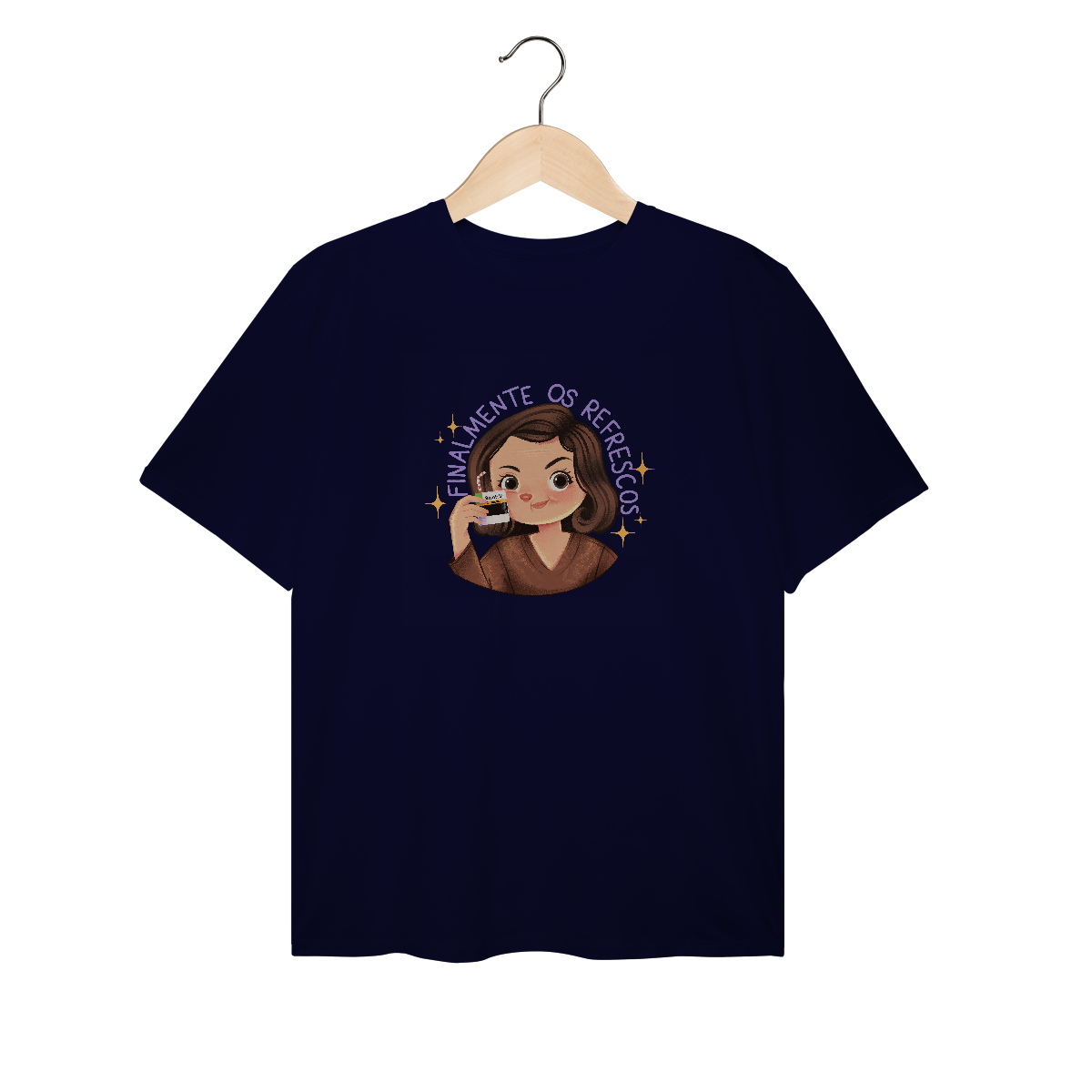 Se a vida adulta fosse fácil, não precisaríamos de refrescos. A camiseta Finalmente os Refrescos… da Vida Adulta brinca com o icônico meme de Alma Gêmea, onde Débora (Ana Lúcia Torre) celebra o momento com um suquinho salvador. Só que nesta versão, o refresco vem em dose tarja preta — bem ao gosto de quem enfrenta boletos, prazos e reuniões que poderiam ter sido um e-mail. Ideal para fãs de novelas, cultura pop e humor ácido, esta peça é um lembrete estiloso: viva com drama, mas nunca sem seus "refrescos".