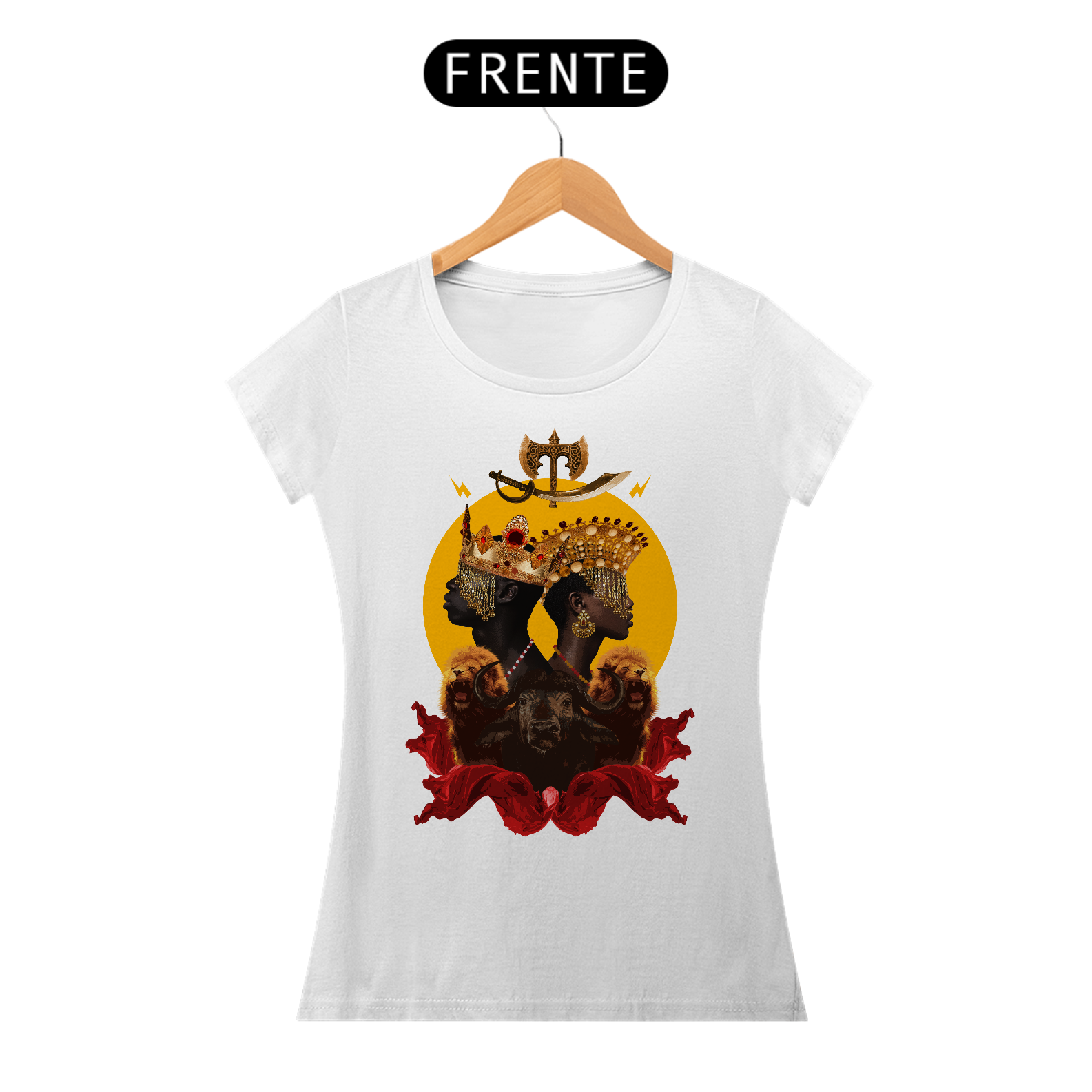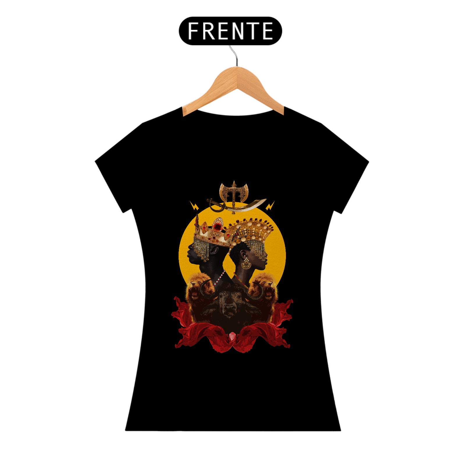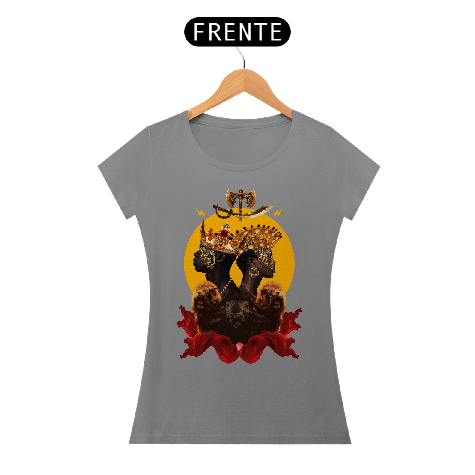 CAMISETA FEMININA YANSÃ E XANGÔ - BY ZIGGY ARTES 100% ALGODÃO FIO 30.1 MALHA FRIA GOLA RIBANA COSTURA REFORÇADA 3X SEM JUROS