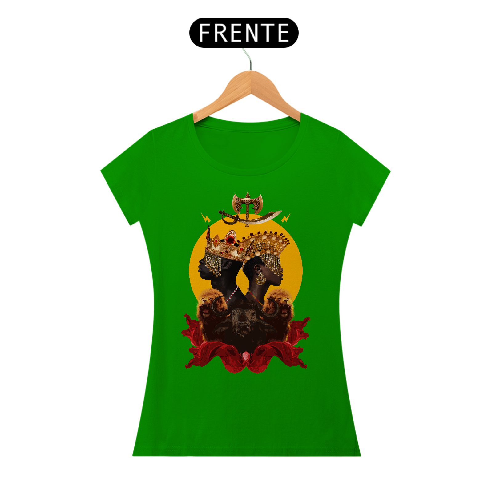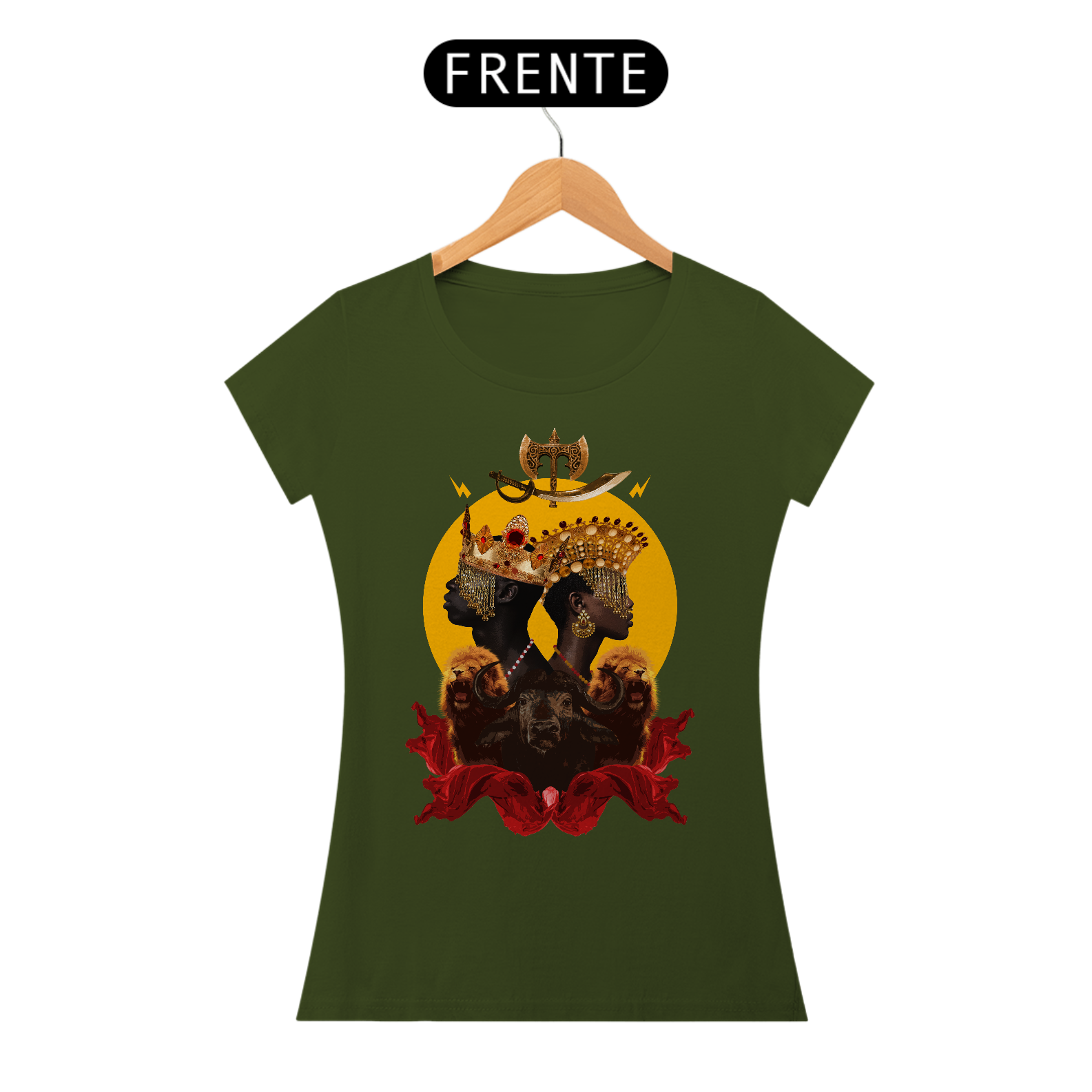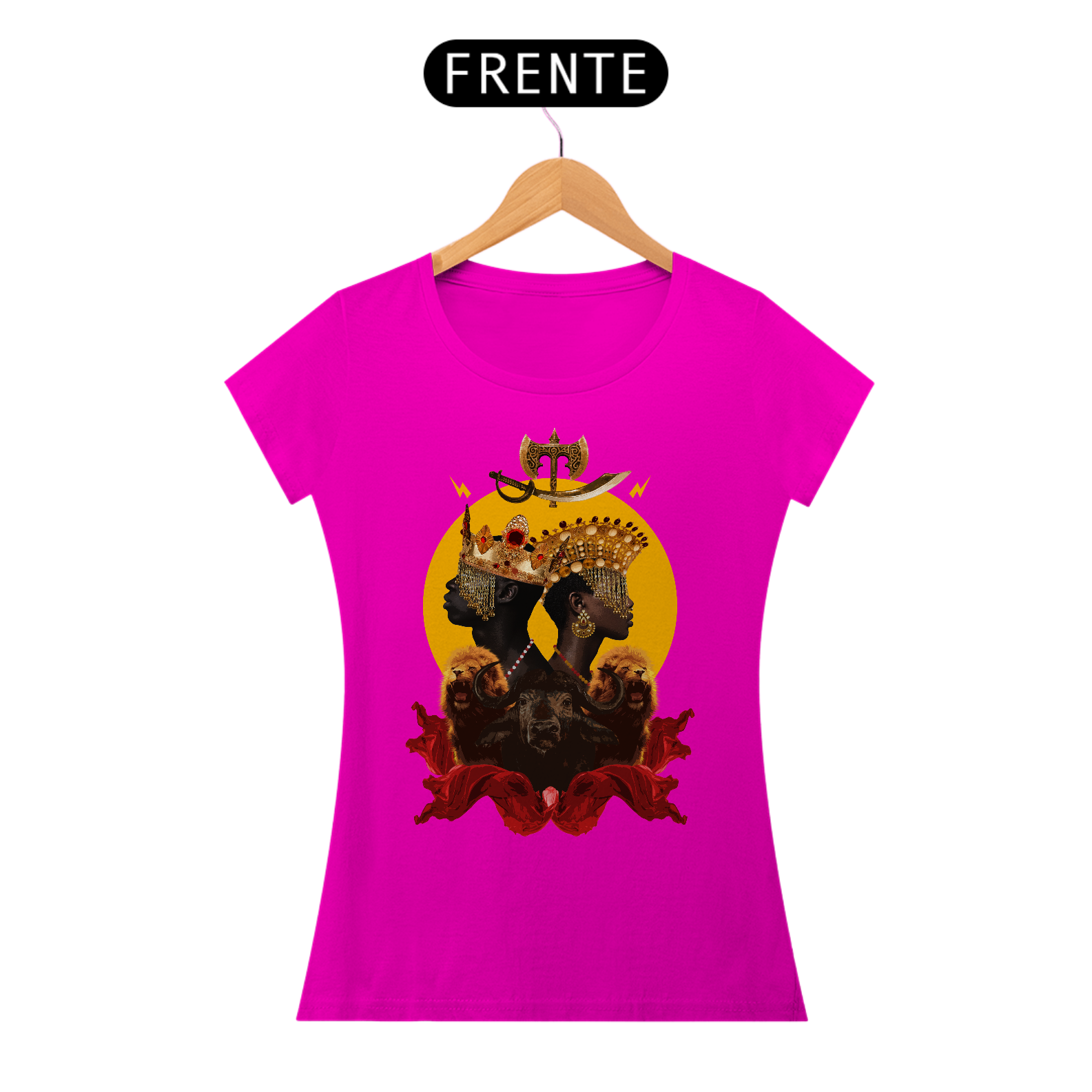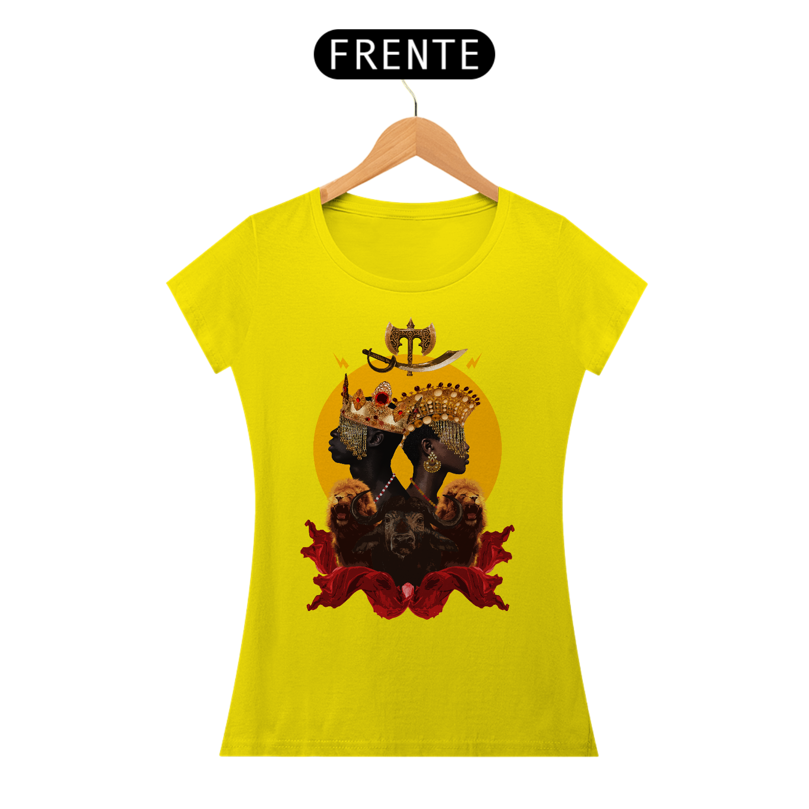 CAMISETA FEMININA YANSÃ E XANGÔ - BY ZIGGY ARTES 100% ALGODÃO FIO 30.1 MALHA FRIA GOLA RIBANA COSTURA REFORÇADA 3X SEM JUROS