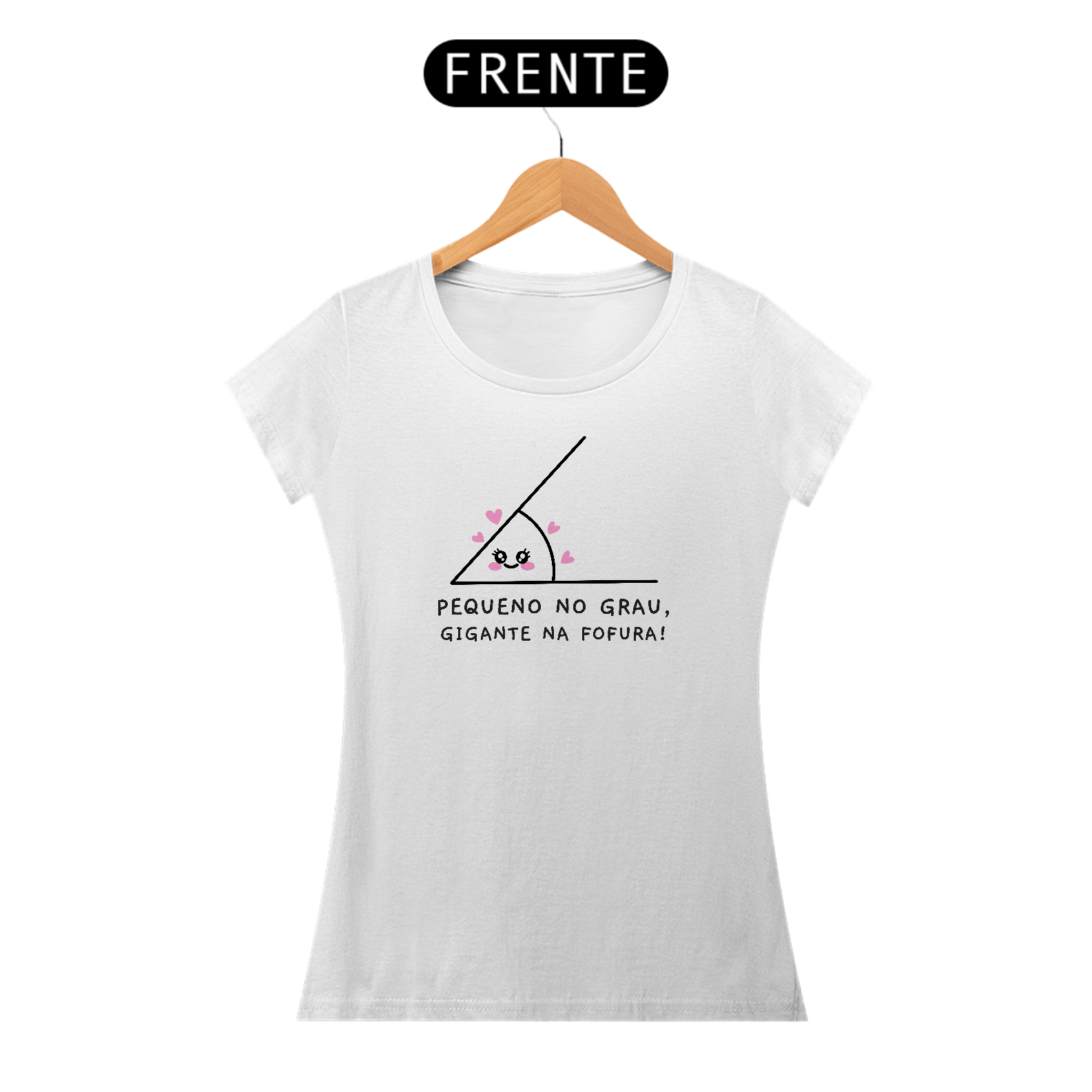 Camiseta feminina 100% algodão, perfeita para quem ama conforto e estilo com um toque de fofura! A estampa exclusiva traz um design minimalista e delicado, com um rostinho adorável cercado por corações cor-de-rosa e a frase divertida: "Pequeno no grau, gigante na fofura!".