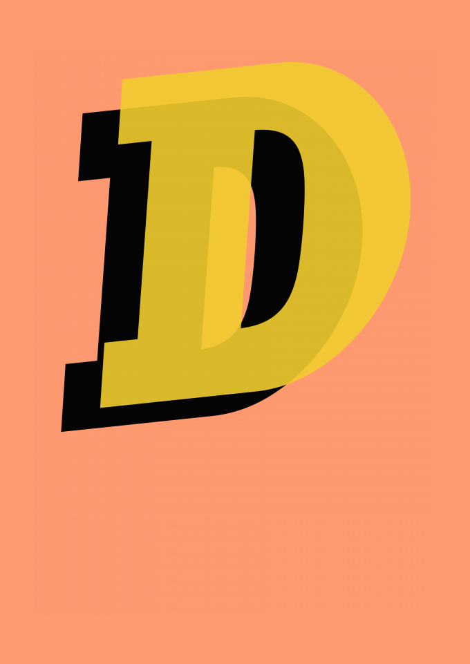Estampa minimalista e tipográfica. D de dado, de Deus, de Design para Designers e Decoradores, Diegos, Diogos, Danis e Divas, D DE todo mundo.