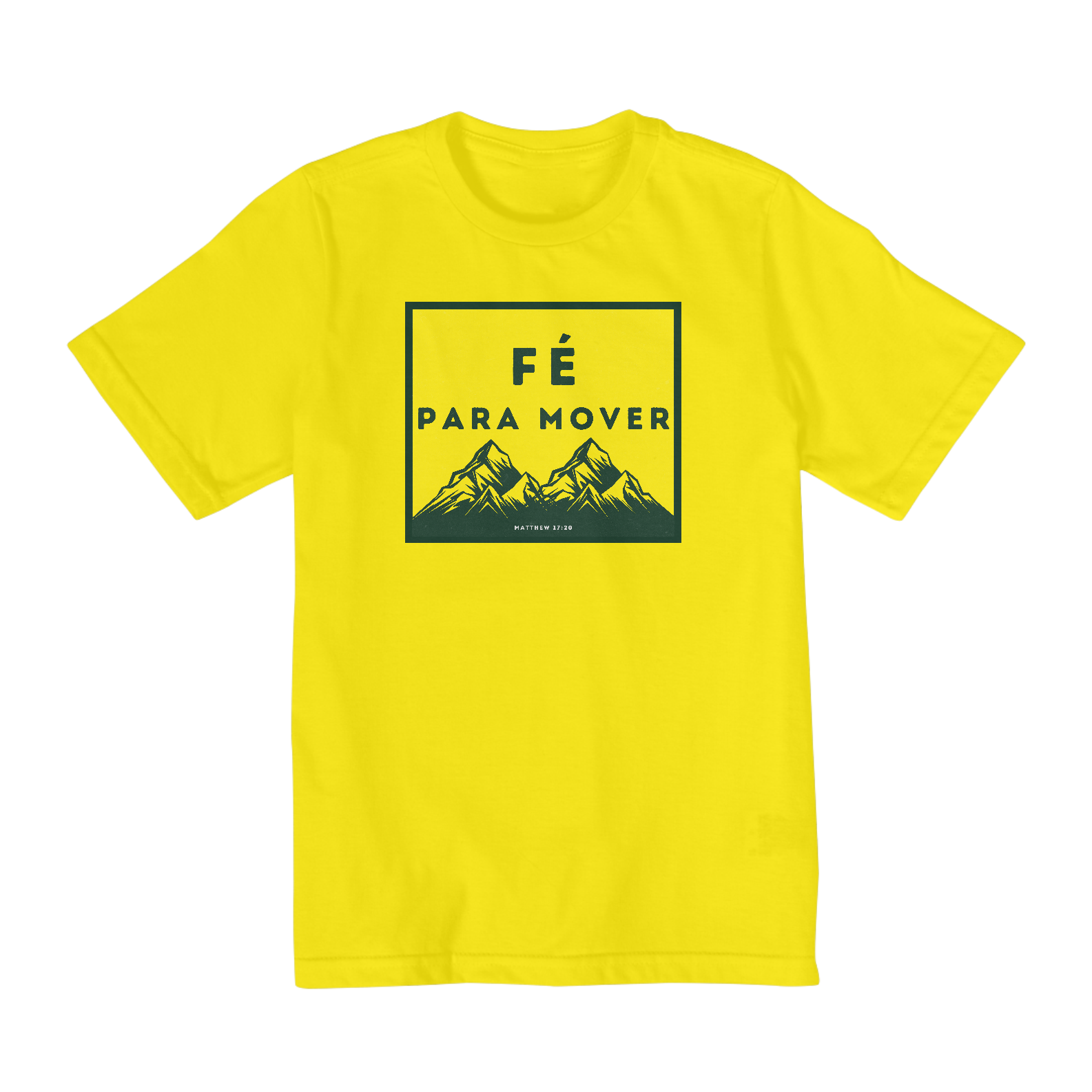 Camiseta Infantil Fé para Mover Montanhas (10 a 14 anos) – Inspirada em Mateus 17:20