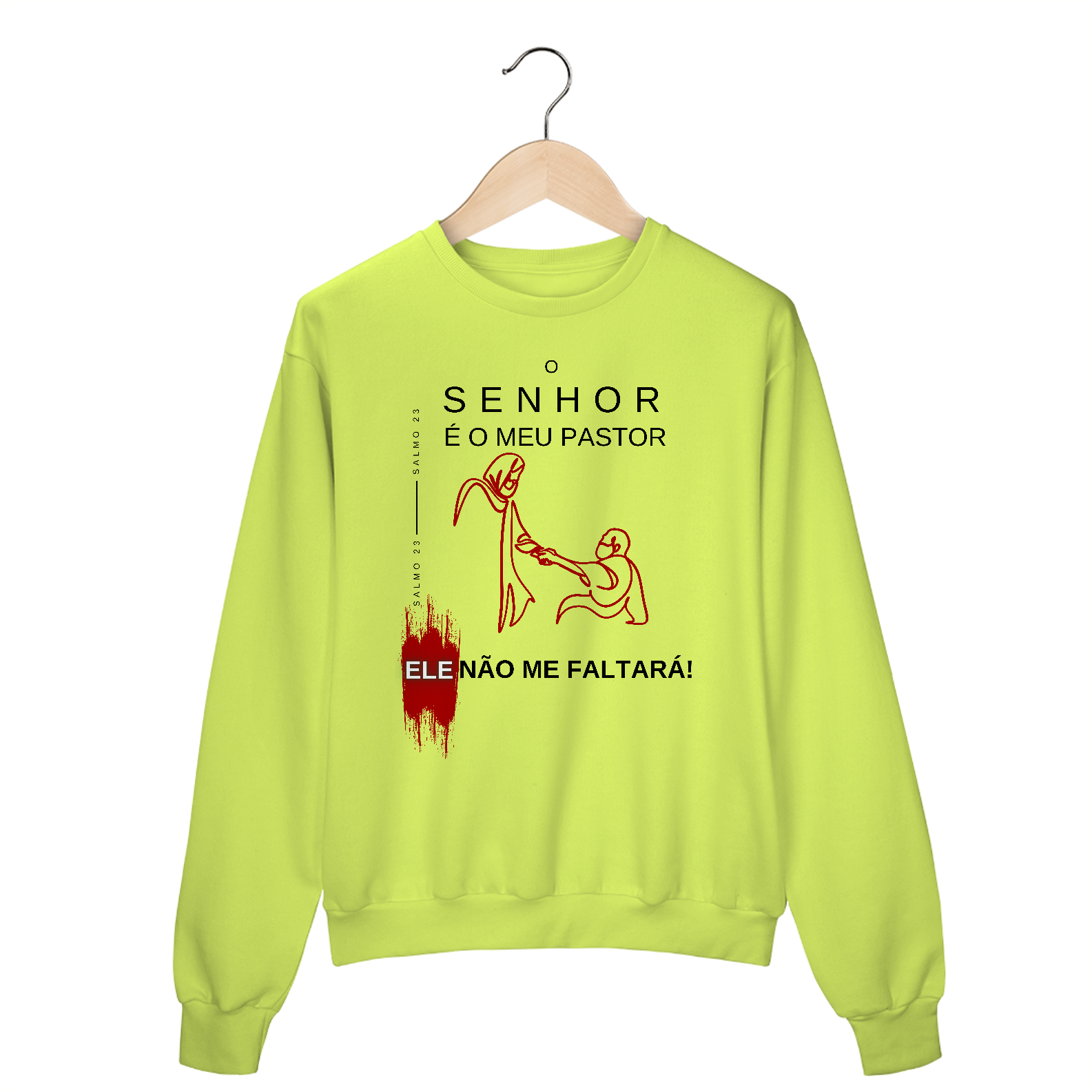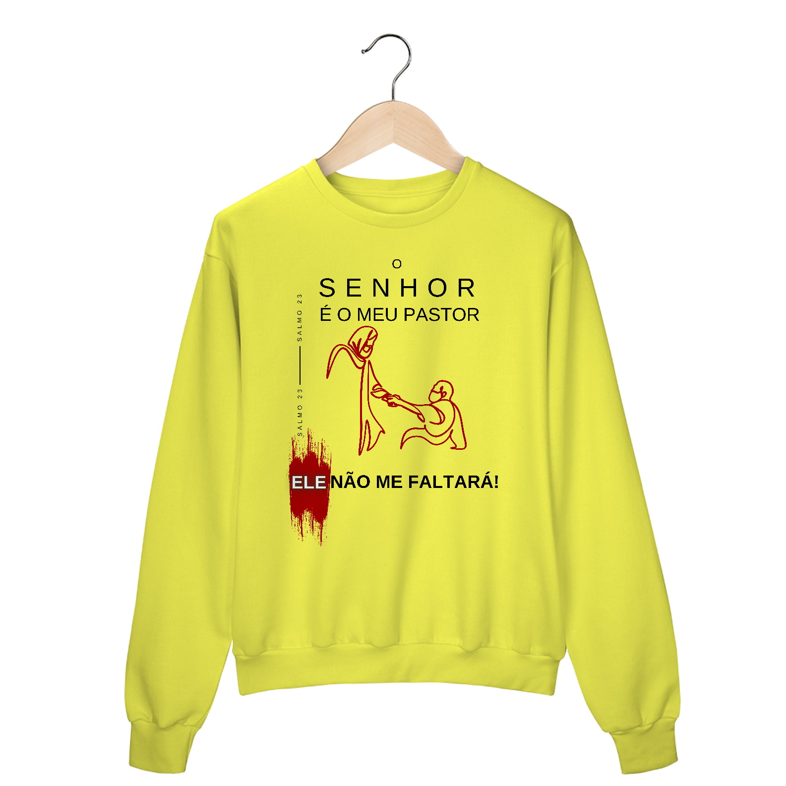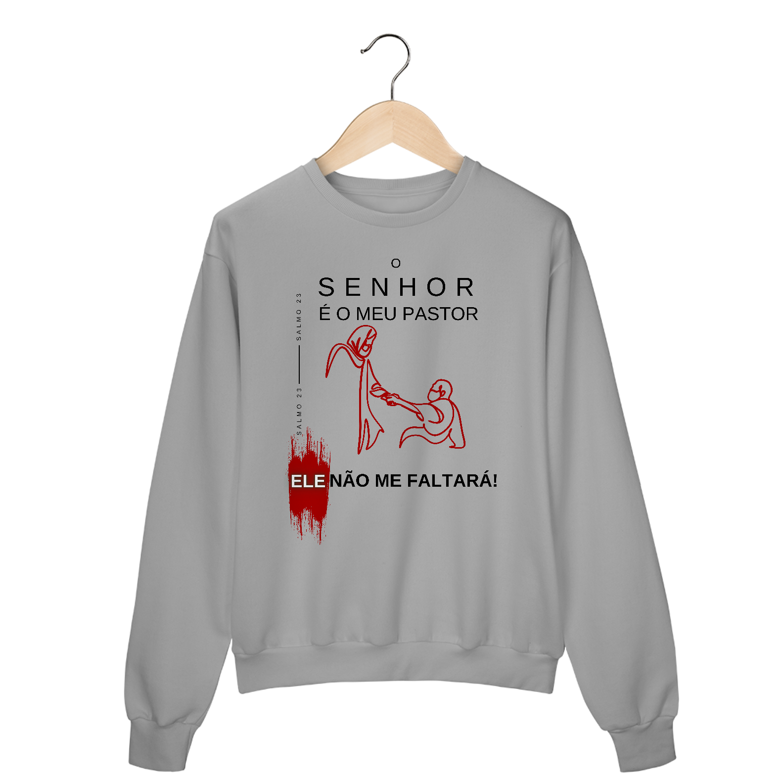 O Moletom Blusão O Senhor é Meu Pastor – Ele Não Me Faltará traz consigo a força do Salmo 23:1, lembrando que com o cuidado do Senhor, nada nos faltará. Confortável e aconchegante, este moletom é perfeito para os dias frios, mantendo você aquecido física e espiritualmente.