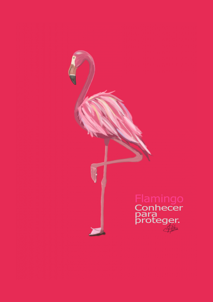 Esta ilustração faz parte do meu projeto conhecendo nossa fauna e flora... convido a você a fazer parte, no momento que você adquire e veste a camiseta, você já estará ajudando de duas formas, uma é divulgando a imagem do Flamingo, a outra foi na hora da aquisição, parte deste valor ajuda nos demais projetos e educação ambiental nas outras mídias como vídeos, Ebook ... Muito obrigado !!! abraços