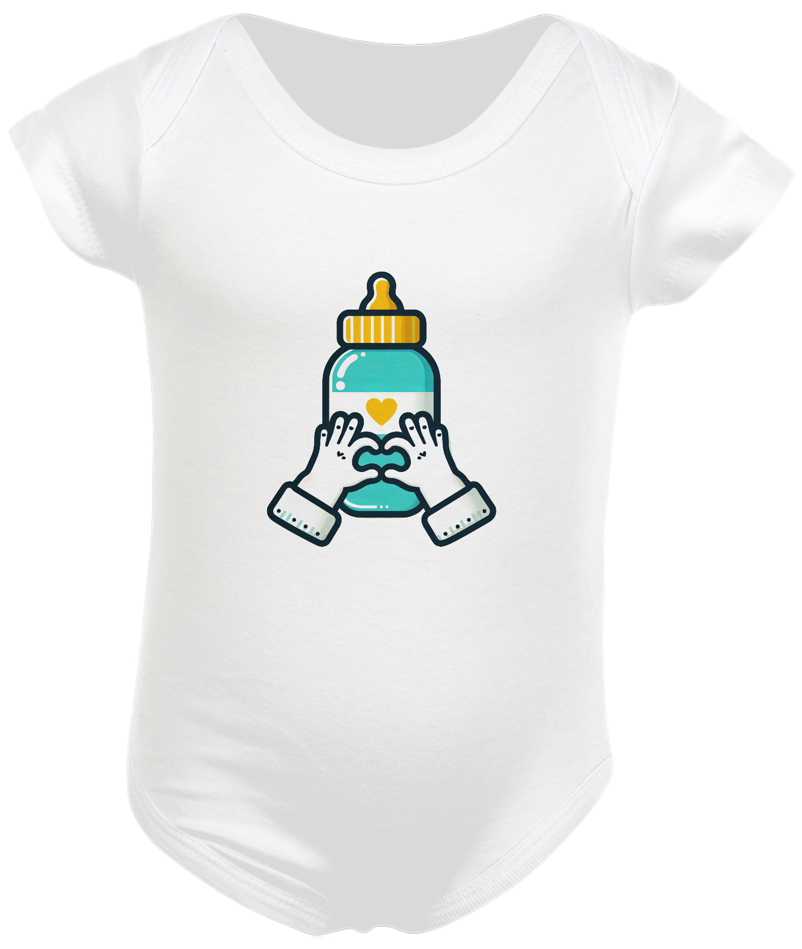 Composição: 100% algodão, meia malha penteada, costura reforçada, viés na gola, mangas curtas.