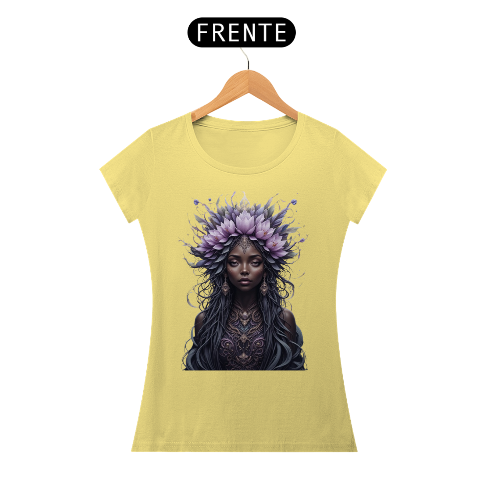 Vista a sabedoria ancestral e a serenidade de Nanã com a nossa Babylook exclusiva! Com um acabamento estonado em 4 cores, esta peça celebra a mais velha Iabá, a senhora das águas profundas e da transformação. O design traz a beleza mística da flor de lótus em tons de lilás e roxo, refletindo a profundidade e a paciência de Nanã.
