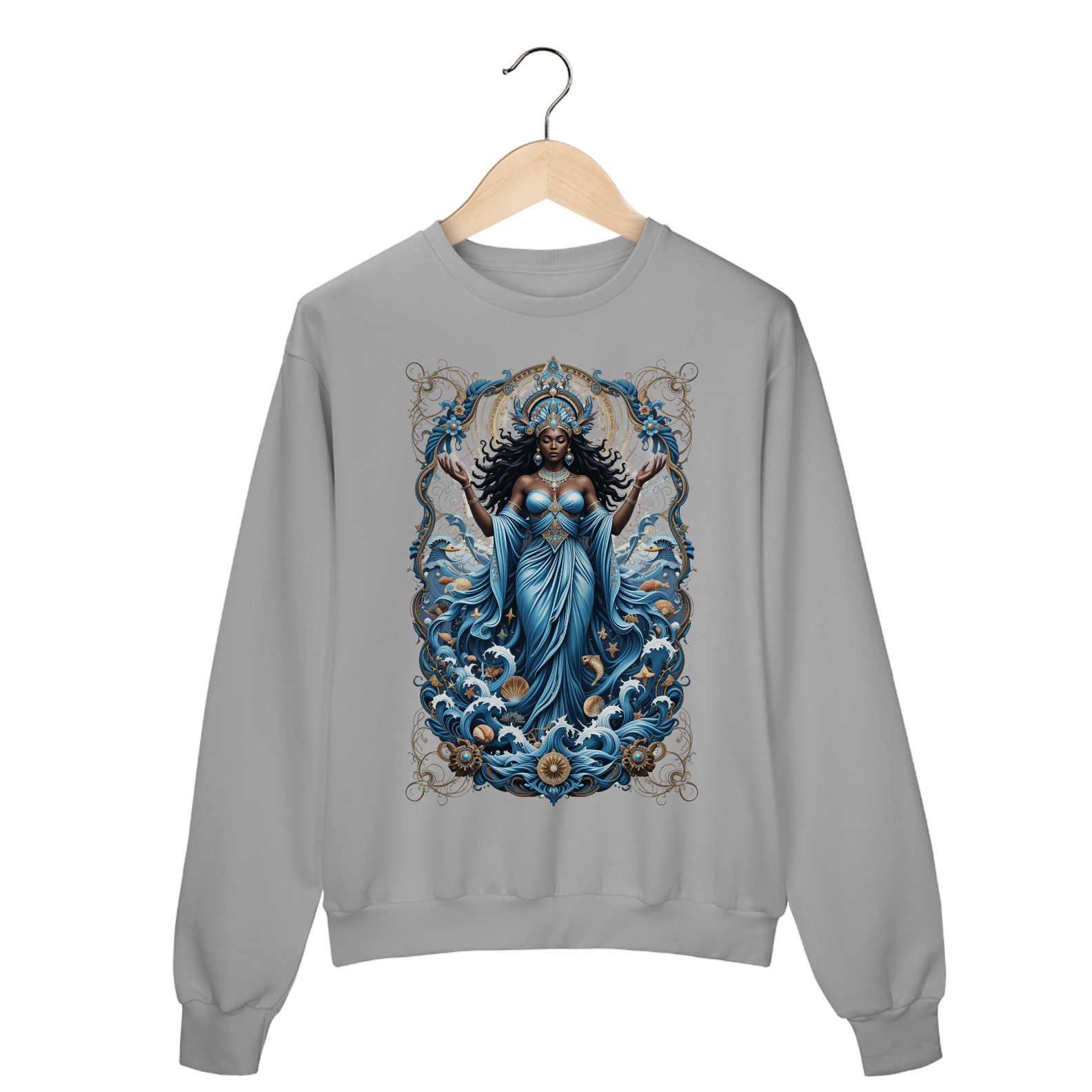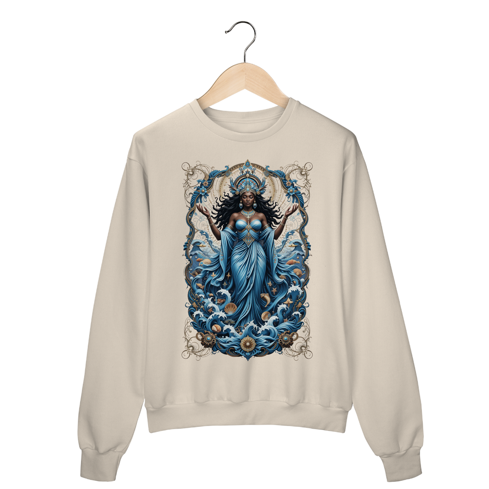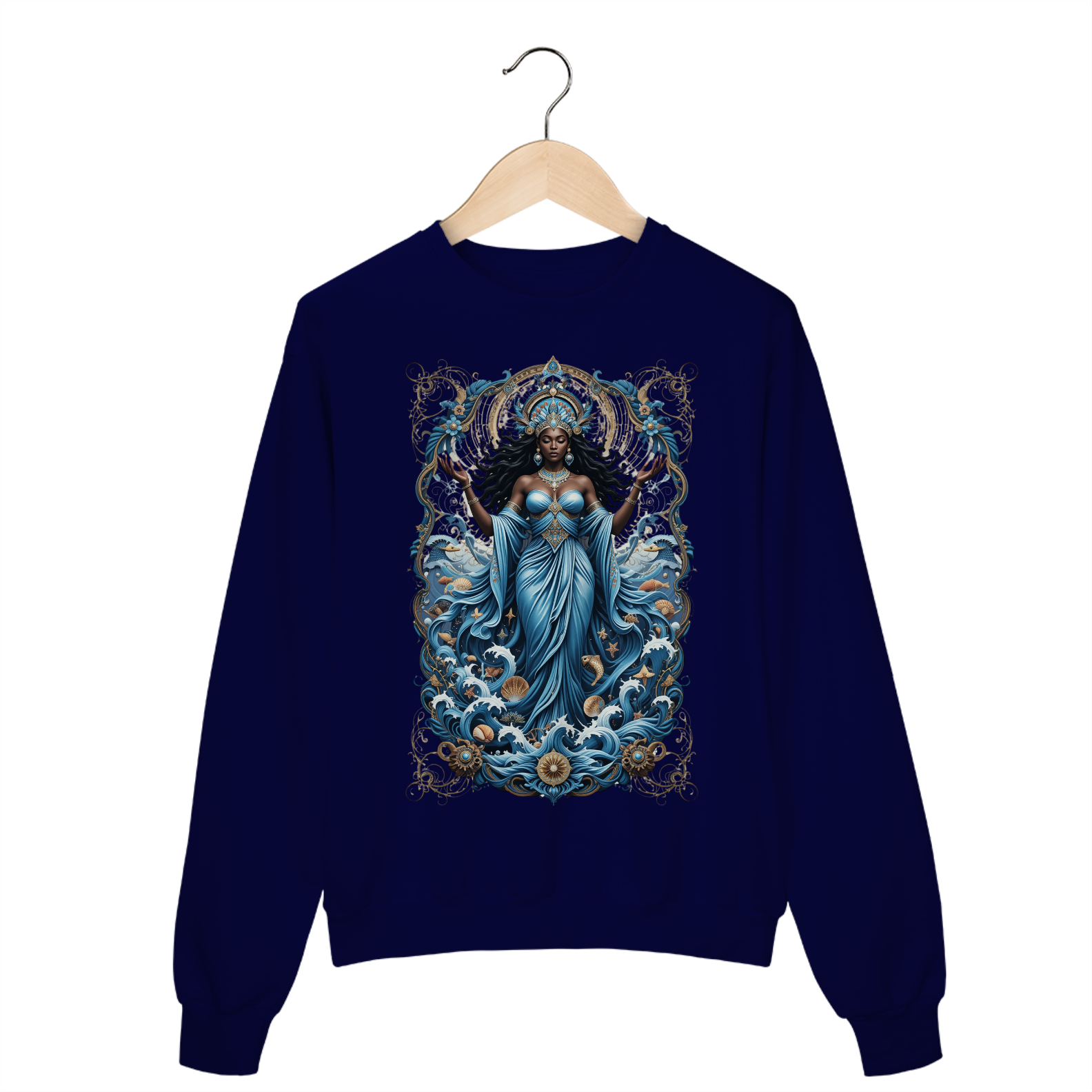 A “Iemanjá Oceano” é mais que uma estampa — é um mergulho na espiritualidade das águas que curam, acolhem e transformam.