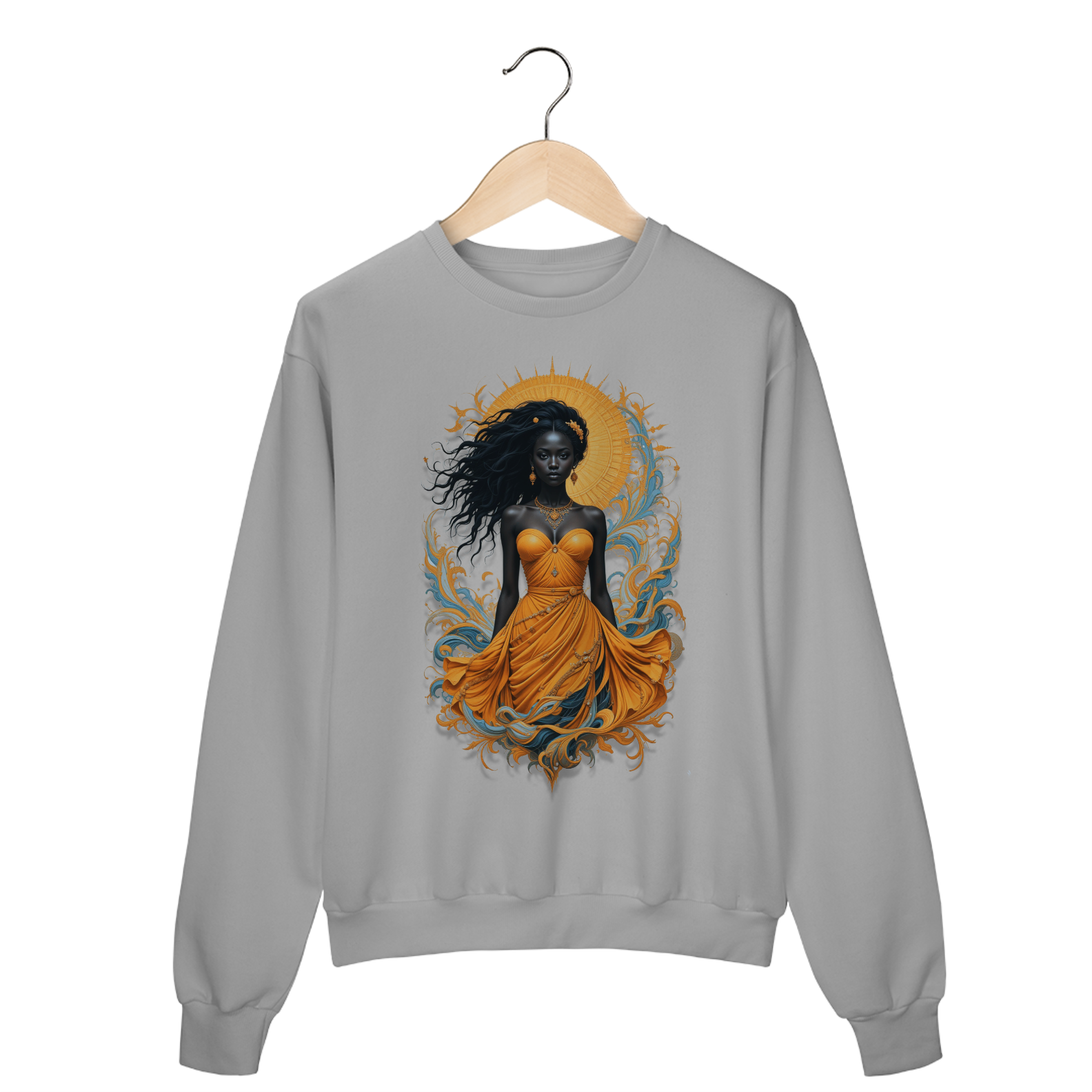 Essa peça carrega a energia da Iabá do ouro, do espelho e das águas calmas — senhora da fertilidade, do amor verdadeiro e da riqueza que nasce do merecimento. Vestir Oxum é envolver-se com a força da doçura, com a leveza que acolhe e com o silêncio que fala fundo. É lembrar que suavidade também é poder.