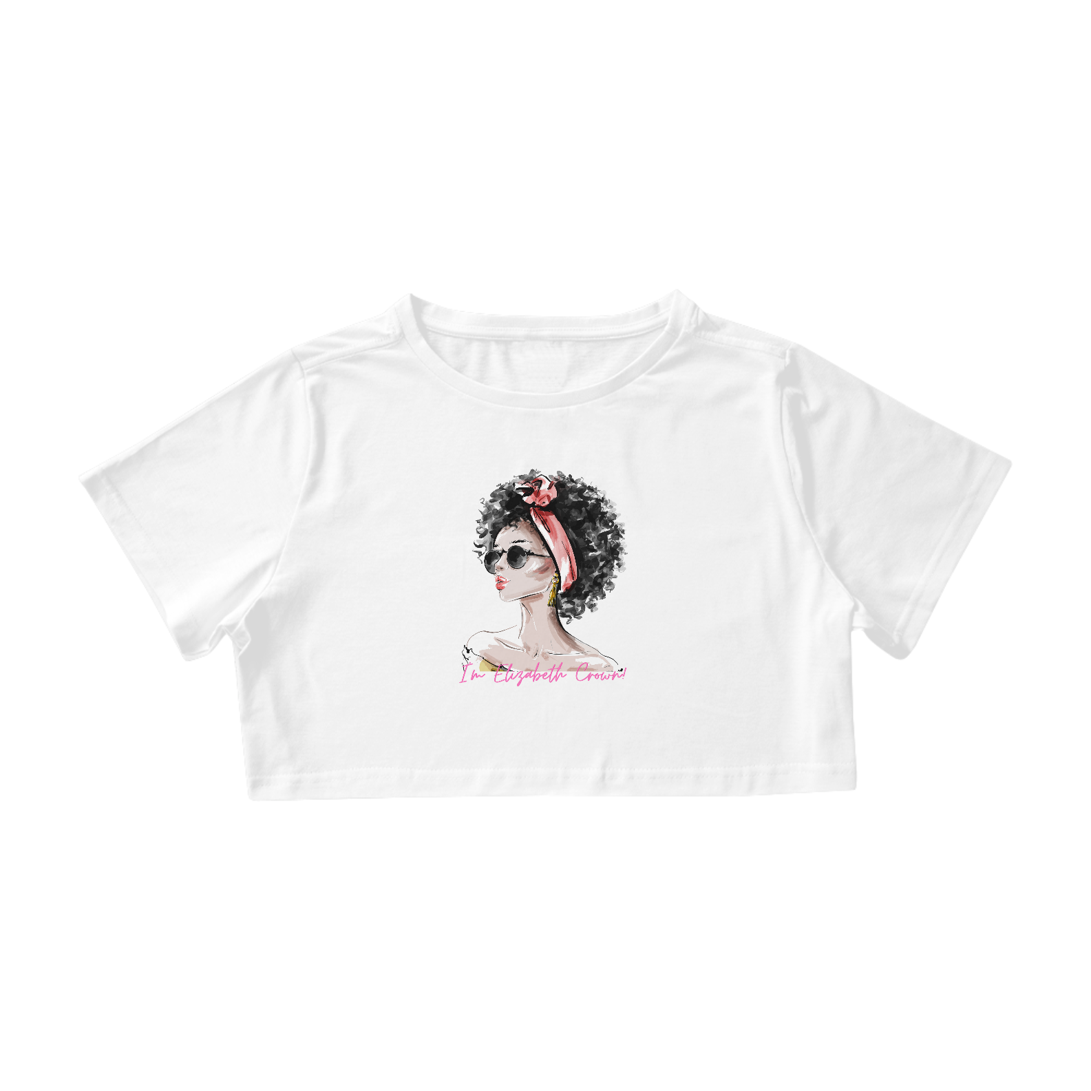 A camisetas cropped Elizabeth Crown são fabricadas em malha penteada fio 30.1, 100% algodão. Costura reforçada com acabamento em viés ombro a ombro, gola em ribana. Modelagem com o comprimento mais curto.